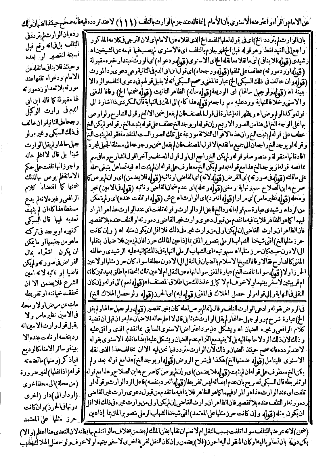 وَيُشْتَرَطُ الْإِشْهَادُ عَلَى مَا فَعَلَهُ مِنْ ذَلِكَ صَوْنًا لَهَا عَنْ الْإِنْكَارِ وَأَنْ يُشِيرَ لِعَيْنِهَا، أَوْ يَصِفَهَا بِمُمَيِّزِهَا وَحِينَئِذٍ فَإِنْ لَمْ يُوجَدْ فِي تَرِكَتِهِ مَا أَشَارَ إلَيْهِ، أَوْ وَصَفَهُ فَلَا ضَمَانَ كَمَا رَجَّحَهُ جَمْعٌ مُتَقَدِّمُونَ وَهُوَ مُتَّجَهٌ وَإِنْ أَطَالَ الْبُلْقِينِيُّ فِي الِانْتِصَارِ لِخِلَافِهِ قَالَ وَلَا ضَمَانَ فِيمَا إذَا عَلِمَ تَلَفَهَا بَعْدَ الْوَصِيَّةِ بِلَا تَفْرِيطٍ فِي حَيَاتِهِ، أَوْ بَعْدَ مَوْتِهِ وَقَبْلَ تَمَكُّنِ الْوَارِثِ مِنْ الرَّدِّ وَرَجَّحَ الْمُتَوَلِّي وَغَيْرُهُ ضَمَانَ وَارِثٍ قَصَّرَ بِعَدَمِ إعْلَامِ مَالِكٍ جَهِلَ الْإِيصَاءَ، أَوْ بِعَدَمِ الرَّدِّ بَعْدَ طَلَبِهِ وَتَمَكُّنِهِ مِنْهُ وَإِنْ وَجَدَ مَا هُوَ بِتِلْكَ الصِّفَةِ مِنْ غَيْرِ تَعَدُّدٍ لَمْ يَقْبَلْ الْوَارِثُ أَنَّهَا غَيْرُ الْوَدِيعَةِ لِمُخَالَفَتِهِ لِمَا أَقَرَّ بِهِ مُوَرِّثُهُ أَنَّ مَا بِهَذِهِ الصِّفَةِ
