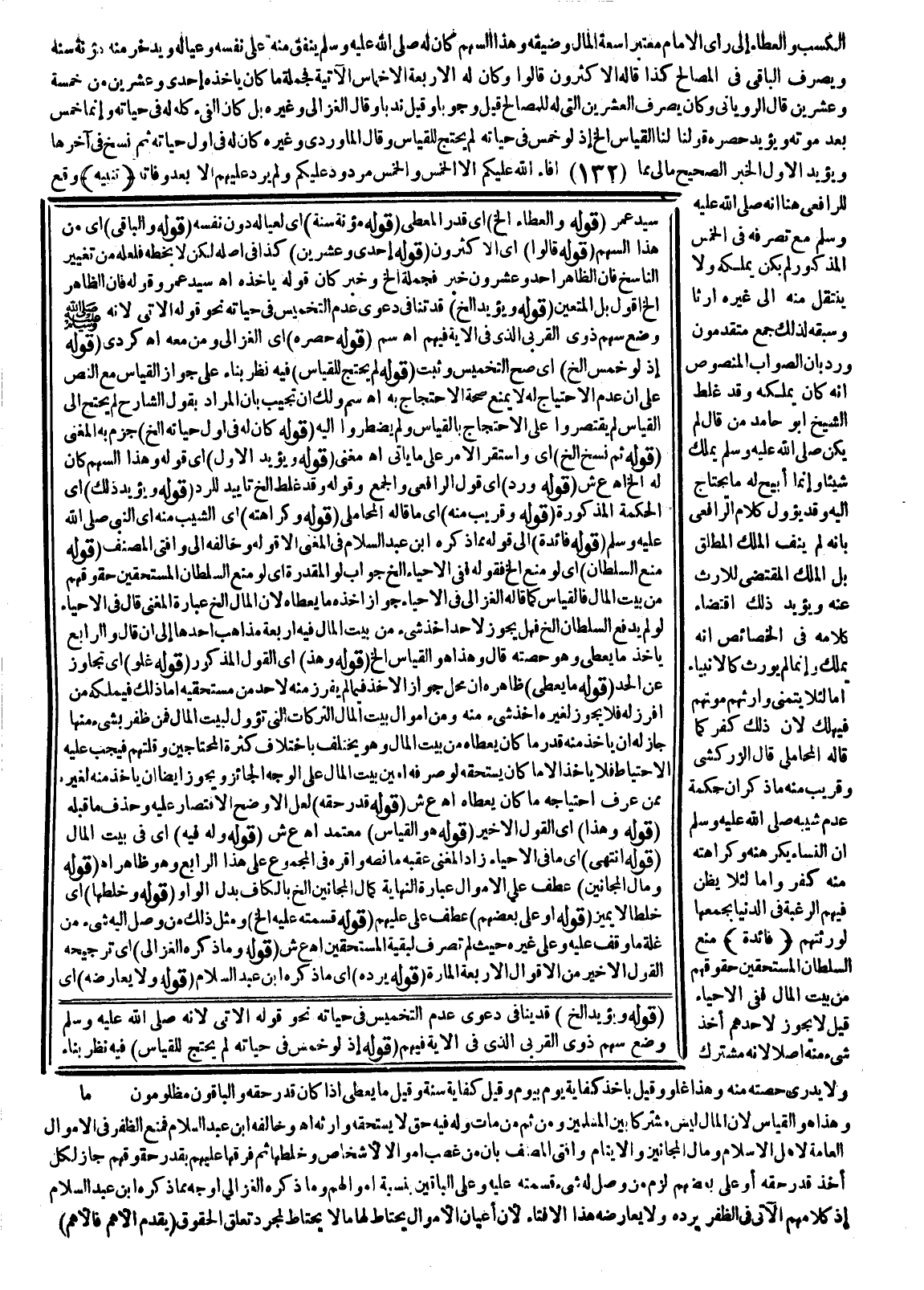 يَتْرُكْ وَارِثًا أَصْلًا، أَوْ تَرَكَ وَارِثًا غَيْرَ جَائِزٍ فَجَمِيعُ مَالِهِ فِي الْأَوَّلِ وَمَا فَضَلَ عَنْ وَارِثِهِ فِي الثَّانِي لِبَيْتِ الْمَالِ كَمَا بَيَّنَهُ السُّبْكِيُّ وَأَلَّفَ فِيهِ رَدًّا عَلَى كَثِيرِينَ أَخْطَئُوا فِي ذَلِكَ فَإِنْ خَلَّفَ مُسْتَغْرِقِينَ لِمِيرَاثِهِ بِمُقْتَضَى شَرْعِنَا وَلَمْ يَتَرَافَعُوا إلَيْنَا لَمْ نَتَعَرَّضْ لَهُمْ فِي قِسْمَتِهِ وَاعْتُرِضَ الْحَدُّ بِشُمُولِهِ لِمَا أَهْدَاهُ كَافِرٌ فِي غَيْرِ حَرْبٍ فَإِنَّهُ لَيْسَ بِفَيْءٍ كَمَا أَنَّهُ لَيْسَ بِغَنِيمَةٍ مَعَ صِدْقِ تَعْرِيفِ الْفَيْءِ عَلَيْهِ وَلِمَا أُخِذَ بِسَرِقَةٍ مِنْ دَارِ الْحَرْبِ مَعَ أَنَّهُ غَنِيمَةٌ مُخَمَّسَةٌ وَكَذَا مَا أَهْدَاهُ وَالْحَرْبُ قَائِمَةٌ مَعَ أَنَّهُ كَذَلِكَ وَبِأَنَّ مَا فِي حَيِّزِ لَا لَا بُدَّ مِنْ انْتِفَاءِ جَمِيعِهِ وَالْعِبَارَةُ تَحْتَمِلُ انْتِفَاءَ مَجْمُوعِهِ فَكَانَ يَنْبَغِي إعَادَةُ لَا وَيُجَابُ بِأَنَّ قَرِينَةَ نَفْيِ الْقِتَالِ وَالْإِيجَافِ تَدُلُّ عَلَى أَنَّ الْكَلَامَ فِي حُصُولٍ بِغَيْرِ عَقْدٍ وَنَحْوِهِ مِمَّا لَا مِنَّةَ فِيهِ لِلْمَأْخُوذِ مِنْهُ وَهَذَا حَاصِلٌ بِذَلِكَ فَمِنْ ثَمَّ اتَّجَهَ حُكْمُهُمْ عَلَيْهِ بِأَنَّهُ لَيْسَ بِفَيْءٍ وَلَا غَنِيمَةٍ وَاتَّجَهَ أَنَّهُ لَا يَرِدُ عَلَى حَدِّ الْفَيْءِ وَبِأَنَّ السَّارِقَ لَمَّا خَاطَرَ كَانَ فِي مَعْنَى الْقَاتِلِ عَلَى أَنَّهُ سَيَذْكُرُ حُكْمَهُ فِي السِّيَرِ كَالْمُلْتَقَطِ الْأَظْهَرُ إيرَادًا مِنْ السَّارِقِ لَوْلَا ذِكْرُهُ ثَمَّ مَا يُفِيدُ أَنَّهُ غَنِيمَةٌ؛ لِأَنَّ فِيهِ مُخَاطَرَةً أَيْضًا إذْ قَدْ يَتَّهِمُونَهُ بِأَنَّهُ سَرَقَهَا عَلَى أَنَّ الْأَذْرَعِيَّ بَحَثَ أَنَّ أَخْذَ مَالِهِمْ بِدَارِنَا بِلَا أَمَانٍ كَهُوَ فِي دَارِهِمْ وَيُوَجَّهُ بِأَنَّ فِيهِ مُخَاطَرَةً أَيْضًا بِخِلَافِ أَخْذِ الضَّالَّةِ السَّابِقِ وَبِأَنَّ الْحَرْبَ لَمَّا كَانَتْ قَائِمَةً كَانَتْ فِي مَعْنَى الْقِتَالِ وَبِأَنَّ الْأَصْلَ فِيمَا فِي حَيِّزِ النَّفْيِ انْتِفَاءُ جَمِيعِهِ لَا مَجْمُوعُهُ كَمَا أَشَارُوا إلَيْهِ فِي تَفْسِيرِ وَلَا الضَّالِّينَ وَسَيَأْتِي قُبَيْلَ التَّفْوِيضِ مَا لَهُ تَعَلُّقٌ بِذَلِكَ فَانْدَفَعَ جَوَابُ السُّبْكِيّ بِأَنَّ الْوَاوَ قَبْلَ رِكَابٍ بِمَعْنَى، أَوْ وَقَبْلَ إيجَافٍ تَحْتَمِلُ ذَلِكَ وَبَقَاءَهَا عَلَى حَقِيقَتِهَا مِنْ الْجَمْعِ عَلَى أَنَّهُ مَرْدُودٌ بِأَنَّ كَوْنَهَا بِمَعْنَى أَوْ إنَّمَا هُوَ فِي جَانِبِ الْإِثْبَاتِ فِي حَدِّ الْغَنِيمَةِ لَا النَّفْيِ فِي حَدِّ الْفَيْءِ بَلْ هِيَ عَلَى بَابِهَا إذْ الْمُرَادُ انْتِفَاءُ كُلٍّ عَلَى انْفِرَادِهِ (فَخُمُسُ) جَمِيعِ الْفَيْءِ خَمْسَةُ أَسْهُمٍ مُتَسَاوِيَةٍ وَقَالَ الْأَئِمَّةُ الثَّلَاثَةُ: يُصْرَفُ جَمِيعُهُ لِمَصَالِحِ الْمُسْلِمِينَ