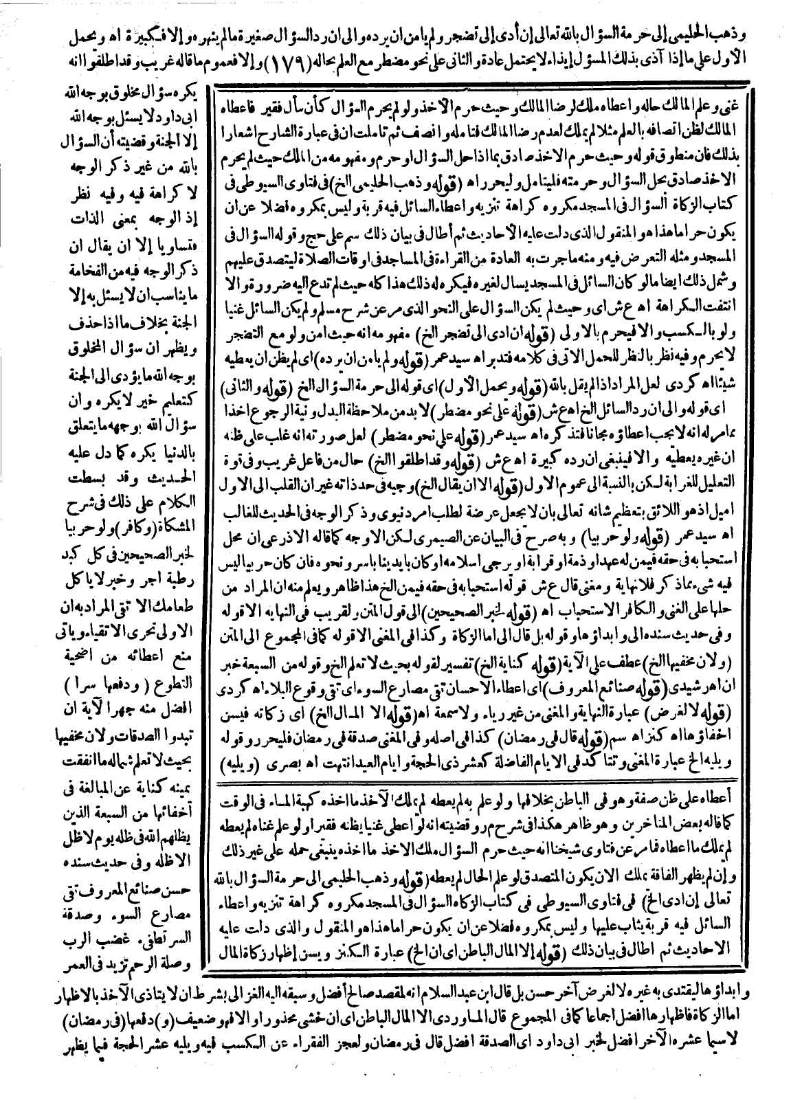 وَنَازَعَ الْأَذْرَعِيُّ فِي التَّحْدِيدِ بِالسَّنَةِ وَبَحَثَ جَوَازَ طَلَبِ مَا يَحْتَاجُ إلَيْهِ إلَى وَقْتٍ يَعْلَمُ عَادَةً تَيَسُّرَ السُّؤَالِ وَالْإِعْطَاءِ فِيهِ لَا يَحْرُمُ عَلَى مَنْ عَلِمَ غِنَى سَائِلٍ، أَوْ مُظْهِرٍ لِلْفَاقَةِ الدَّفْعُ إلَيْهِ فِيمَا يَظْهَرُ خِلَافًا لِلْأَذْرَعِيِّ؛ لِأَنَّ الْحُرْمَةَ إنَّمَا هِيَ لِتَغْرِيرِهِ بِإِظْهَارِ الْفَاقَةِ مَنْ لَا يُعْطِيهِ لَوْ عَلِمَ غِنَاهُ فَمَنْ عَلِمَهُ، وَأَعْطَاهُ لَمْ يَحْصُلْ لَهُ تَغْرِيرٌ، ثُمَّ رَأَيْت بَعْضَهُمْ