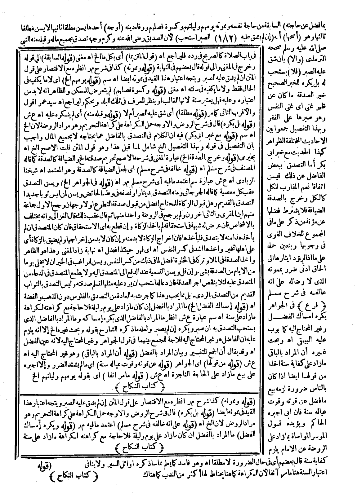 (وَمَنْ عَلَيْهِ دَيْنٌ) لِلَّهِ، أَوْ لِآدَمِيٍّ (أَوْ لَهُ مَنْ تَلْزَمُهُ نَفَقَتُهُ يُسْتَحَبُّ) لَهُ (أَنْ لَا يَتَصَدَّقَ حَتَّى يُؤَدِّيَ مَا عَلَيْهِ) تَقْدِيمًا لِلْأَهَمِّ، وَعِبَارَةُ أَصْلِهِ كَالرَّوْضَةِ وَغَيْرِهَا لَا يُسْتَحَبُّ لَهُ أَنْ يَتَصَدَّقَ وَالْأُولَى أَوْلَى؛ لِأَنَّ أَهَمِّيَّةَ الدَّيْنِ إنْ لَمْ تَقْتَضِ الْحُرْمَةَ عَلَى هَذَا الْقَوْلِ فَلَا أَقَلَّ مِنْ أَنْ تَقْتَضِيَ طَلَبَ عَدَمِ الصَّدَقَةِ