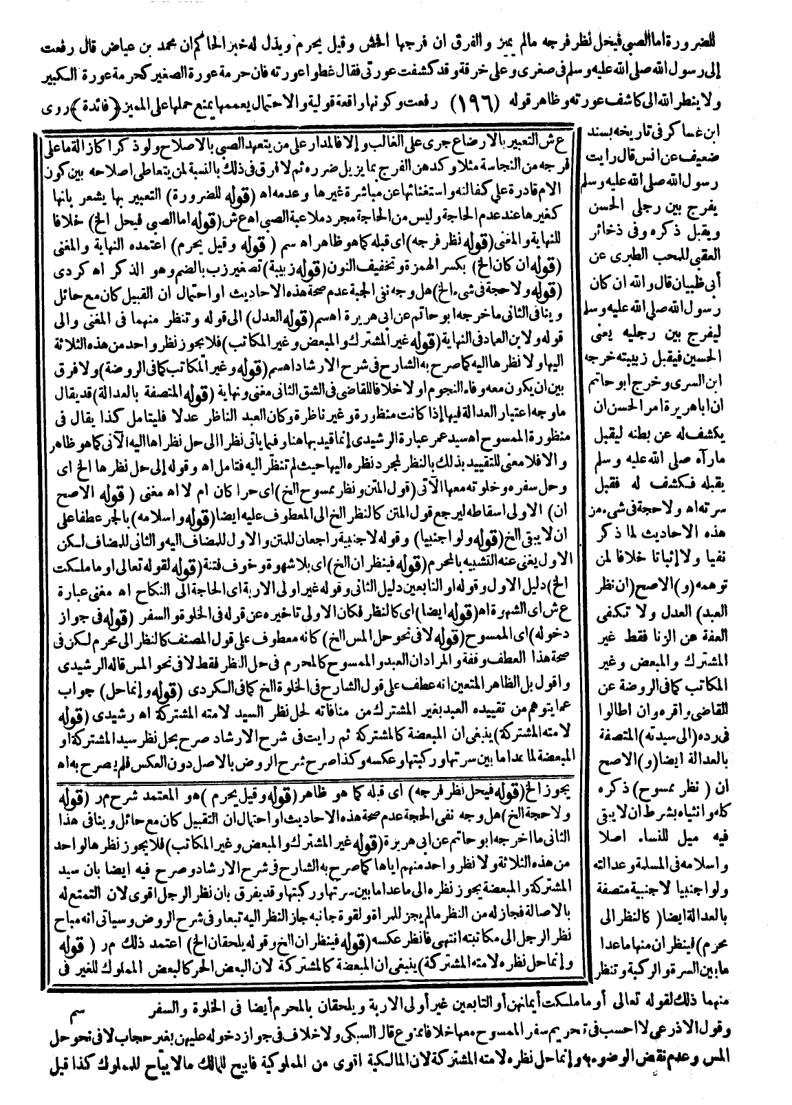 ـــــــــــــــــــــــــــــSقَوْلُهُ: وَمَنْ لَا يَتَيَسَّرُ لَهُ النَّظَرُ إلَخْ) وَقَضِيَّةُ كَلَامِهِمْ أَنَّهُ لَا يَحْصُلُ الِاسْتِحْبَابُ بِالِاسْتِيصَافِ مَعَ إمْكَانِ الرُّؤْيَةِ وَالْأَوْجَهُ حُصُولُهُ لِتَرَتُّبِ الْمَصْلَحَةِ الْمَقْصُودَةِ عَلَى كُلٍّ مِنْهُمَا وَحُمِلَ كَلَامُهُمْ عَلَى أَنَّ ذَلِكَ أَكْمَلُ كَذَا فِي كَنْزِ الْأُسْتَاذِ الْبَكْرِيِّ وَيُوَافِقُ مَا قَالَ إنَّهُ الْأَوْجَهُ قَوْلُ الشَّارِحِ، أَوْ لَا يُرِيدُهُ بِنَفْسِهِ إلَخْ (قَوْلُهُ: فِي الْمَتْنِ وَيَحْرُمُ نَظَرُ فَحْلٍ) يَجُوزُ أَنْ يُرَادَ بِالْفَحْلِ غَيْرُ الْمَمْسُوحِ الْآتِي بِدَلِيلِ مُقَابَلَتِهِ بِهِ فَيَشْمَلُ الْخَصِيَّ وَالْمَجْبُوبَ (قَوْلُهُ: إذْ هُوَ) أَيْ الِاحْتِيَاطُ (قَوْلُهُ: عَاقِلٌ) سَيَأْتِي عِنْدَ قَوْلِ الْمُصَنِّفِ،، وَأَنَّ الْمُرَاهِقَ كَالْبَالِغِ مَا يَدُلُّ عَلَى حُرْمَةِ نَظَرِ الْمَجْنُونِ، وَأَنَّ عَلَى الْوَلِيِّ مَنْعُهُ مِنْهُ فَرَاجِعْهُ (قَوْلُهُ وَلَيْسَ مِنْهَا) أَيْ الْعَوْرَةِ.