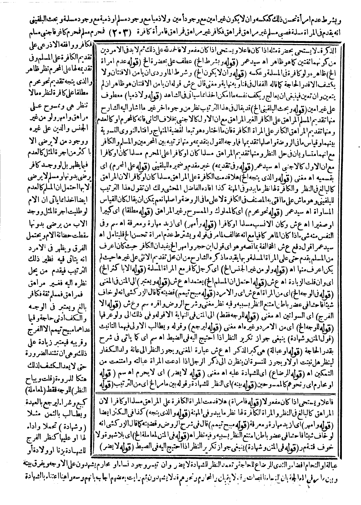 وَقَدْ بَالَغَ السَّلَفُ فِي التَّنْفِيرِ مِنْهُمْ وَسَمَّوْهُمْ الْأَنْتَانَ لِاسْتِقْذَارِهِمْ شَرْعًا وَوَقَعَ نَظَرُ بَعْضِهِمْ عَلَى أَمْرَدَ فَأَعْجَبَهُ فَأَخْبَرَ أُسْتَاذَه فَقَالَ سَتَرَى غِبَّهُ فَنَسِيَ الْقُرْآنَ بَعْدَ عِشْرِينَ سَنَةً وَشَرْطُ الْحُرْمَةِ مَعَ أَمْنِ الْفِتْنَةِ وَانْتِفَاءِ الشَّهْوَةِ أَنْ لَا يَكُونَ النَّاظِرُ مَحْرَمًا بِنَسَبٍ وَكَذَا رَضَاعٍ، أَوْ مُصَاهَرَةٍ عَلَى مَا شَمَلَهُ إطْلَاقُهُمْ وَلَا سَيِّدًا وَيَظْهَرُ حِلُّ نَظَرِ مَمْلُوكِهِ وَمَمْسُوحٍ إلَيْهِ بِشَرْطِهِمَا السَّابِقِ، وَأَنْ يَكُونَ الْمَنْظُورُ جَمِيلًا بِحَسَبِ طَبْعِ النَّاظِرِ؛ لِأَنَّ الْحُسْنَ يَخْتَلِفُ بِاخْتِلَافِ الطِّبَاعِ وَيُفَرَّقَ بَيْنَ هَذَا وَالرُّجُوعِ فِيهِ إذَا شَرَطَ فِي الْمَبِيعِ مَثَلًا إلَى الْعُرْفِ بِنَاءً عَلَى الْأَصَحِّ أَنَّ الْمَلَاحَةَ وَصْفٌ ذَاتِيٌّ بِأَنَّ الْمَدَارَ ثَمَّ عَلَى مَا تَزِيدُ بِهِ الْمَالِيَّةُ، وَهُوَ مَنُوطٌ بِالْعُرْفِ لَا غَيْرُ وَهُنَا عَلَى مَا قَدْ يَجُرُّ لِفِتْنَةٍ، وَهُوَ مَنُوطٌ بِمَيْلِ طَبْعِهِ لَا غَيْرُ وَإِنَّمَا لَمْ يُقَيِّدُوا النِّسَاءَ بِذَلِكَ؛ لِأَنَّ لِكُلِّ سَاقِطَةٍ لَاقِطَةً؛ وَلِأَنَّ الْمَيْلَ إلَيْهِنَّ طَبِيعِيٌّ وَخَرَجَ بِالنَّظَرِ الْمَسُّ فَيَحْرُمُ، وَإِنْ حَلَّ النَّظَرُ كَمَا جَزَمَ بِهِ بَعْضُهُمْ وَإِنَّمَا يَتَّجِهُ إنْ قُلْنَا بِمَا يَأْتِي عَنْ مُقْتَضَى الرَّوْضَةِ أَنَّ الْمُحَرَّمَ الْمَرْأَةُ يَحْرُمُ مَسُّهَا مُطْلَقًا.