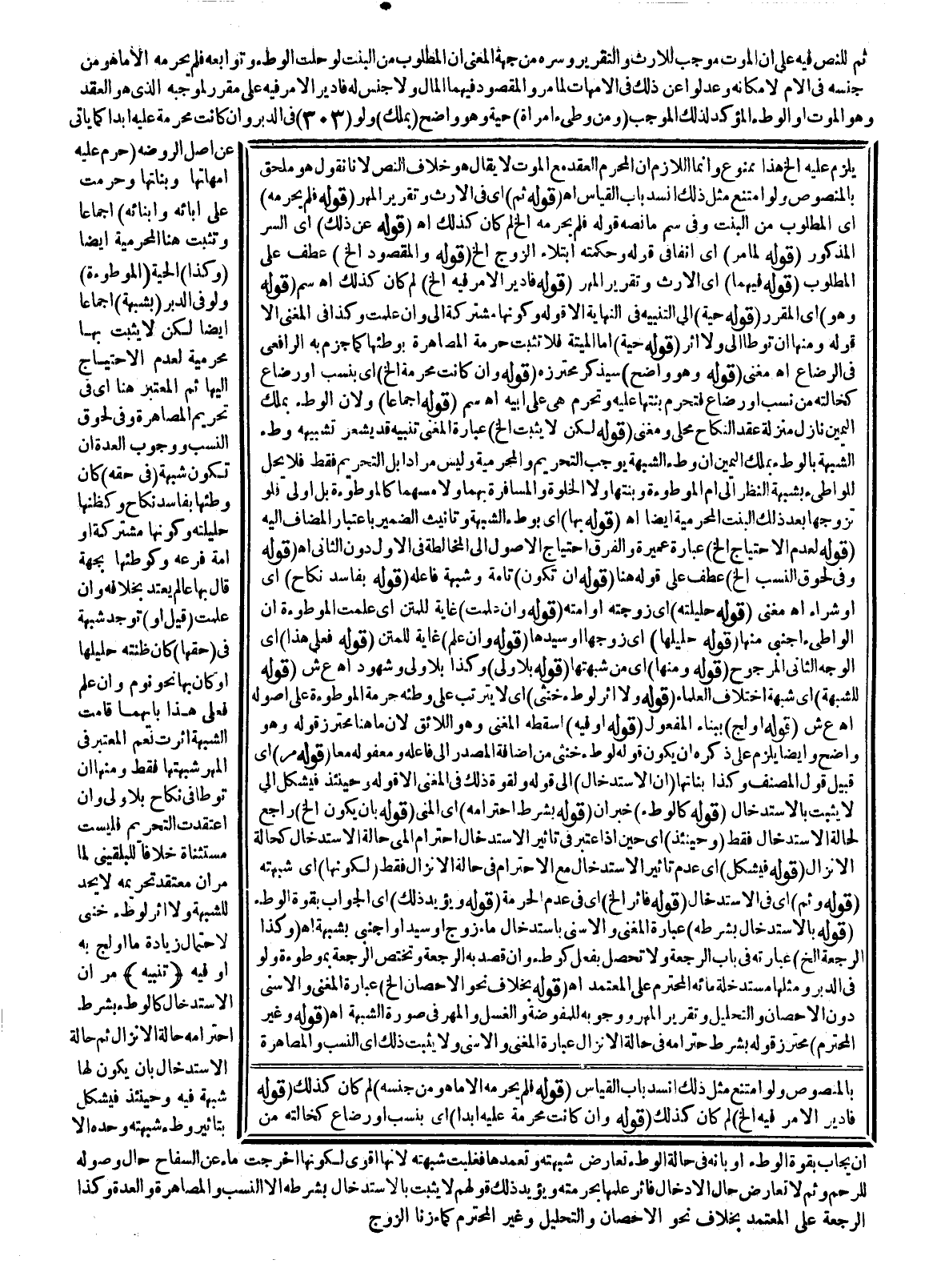 وَهُوَ إمَّا مُؤَبَّدٌ وَإِمَّا غَيْرُهُ وَأَسْبَابُ الْمُؤَبَّدِ قَرَابَةٌ وَرَضَاعٌ وَمُصَاهَرَةٌ لِآيَةِ النِّسَاءِ {حُرِّمَتْ عَلَيْكُمْ أُمَّهَاتُكُمْ} [النساء: 23]