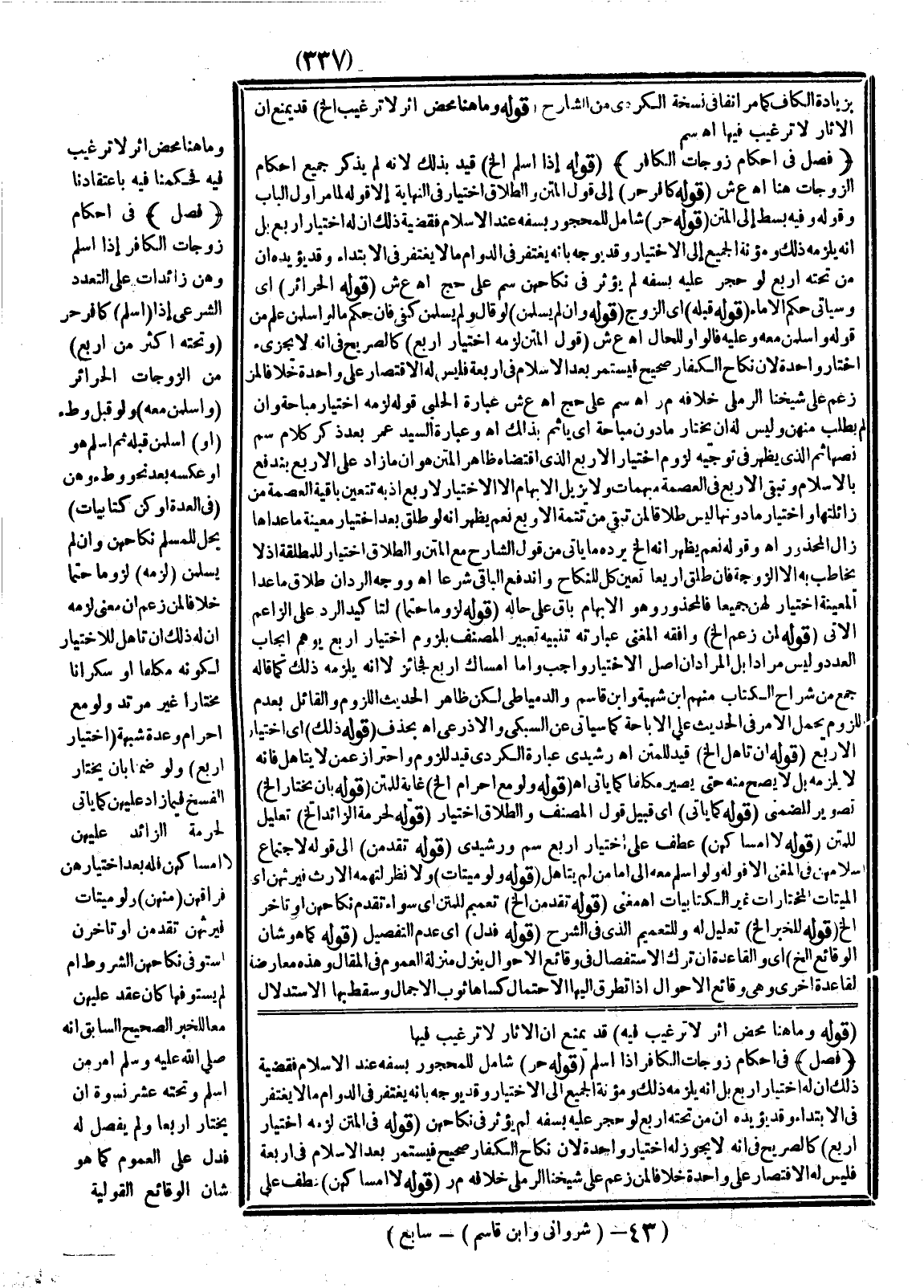 ـــــــــــــــــــــــــــــQالنِّهَايَةِ إلَّا قَوْلَهُ وَلَهُ احْتِمَالٌ أَنَّهُ إلَى الْمَتْنِ، وَقَوْلَهُ وَلَا نِكَاحَ بِشَرْطِ الْخِيَارِ إلَى فَإِنْ قُلْت (قَوْلُهُ: إلَى وَقْتِ إسْلَامِ أَحَدِهِمَا) أَيْ وَإِنْ زَالَ قَبْلَ إسْلَامِ الْآخَرِ اهـ سم (قَوْلُهُ: وَقْتَهُ) أَيْ وَقْتَ إسْلَامِ أَحَدِهِمَا (قَوْلُ الْمَتْنِ: فَلَا نِكَاحَ) أَفْهَمَ كَلَامُهُ أَنَّ الْمُفْسِدَ الطَّارِئَ بَعْدَ الْعَقْدِ لَا يَضُرُّ وَهُوَ كَذَلِكَ إلَّا فِي رَضَاعٍ أَوْ جِمَاعٍ رَافِعَيْنِ لِلنِّكَاحِ اهـ مُغْنِي أَيْ أَوْ طَلَاقِ ثَلَاثٍ كَمَا مَرَّ عَنْ سم وَفِي الشَّارِحِ وَيَأْتِي فِي الْمَتْنِ: أَوْ طُرُوُّ يَسَارٍ أَوْ إعْفَافٍ فِي الْأَمَةِ كَمَا يَأْتِي فِي الشَّارِحِ.