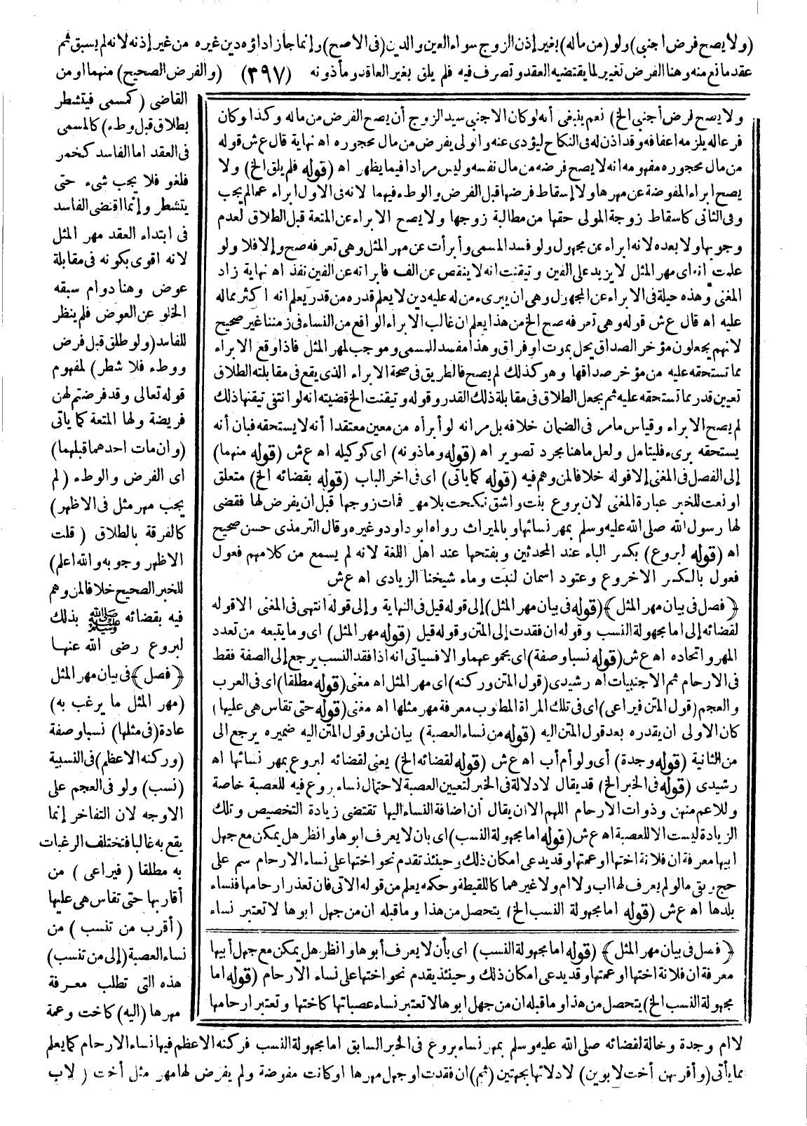 وَاعْلَمْ أَنْ لَا فِي كُلِّ مَا ذُكِرَ بِمَعْنَى غَيْرُ فَمَا وَقَعَ لِبَعْضِهِمْ أَنَّ الَّتِي بِمَعْنَى غَيْرُ قَسِيمَةٌ لِمَا يَجِبُ تَكْرِيرُهَا غَيْرُ مُرَادٍ وَقَدْ صَرَّحُوا بِأَنَّ لَا الْعَاطِفَةَ وَالْجَوَابِيَّةَ لَمْ يَقَعَا فِي الْقُرْآنِ وَيَجِبُ تَكْرِيرُ لَا أَيْضًا إذَا وَلِيَهَا جُمْلَةٌ اسْمِيَّةٌ صَدْرُهَا مَعْرِفَةٌ أَوْ نَكِرَةٌ وَلَمْ تَعْمَلْ فِيهَا أَوْ فِعْلٌ مَاضٍ وَلَوْ تَقْدِيرًا (وَالْأَظْهَرُ صِحَّةُ النِّكَاحِ بِمَهْرِ الْمِثْلِ) لِأَنَّ فَسَادَ الصَّدَاقِ لَا يُفْسِدُهُ كَمَا مَرَّ وَفَارَقَ عَدَمُ صِحَّتِهِ مِنْ غَيْرِ كُفْءٍ بِأَنَّ إيجَابَ مَهْرِ الْمِثْلِ هُنَا تَدَارُكٌ لِمَا فَاتَ مِنْ الْمُسَمَّى وَذَاكَ لَا يُمْكِنُ تَدَارُكُهُ