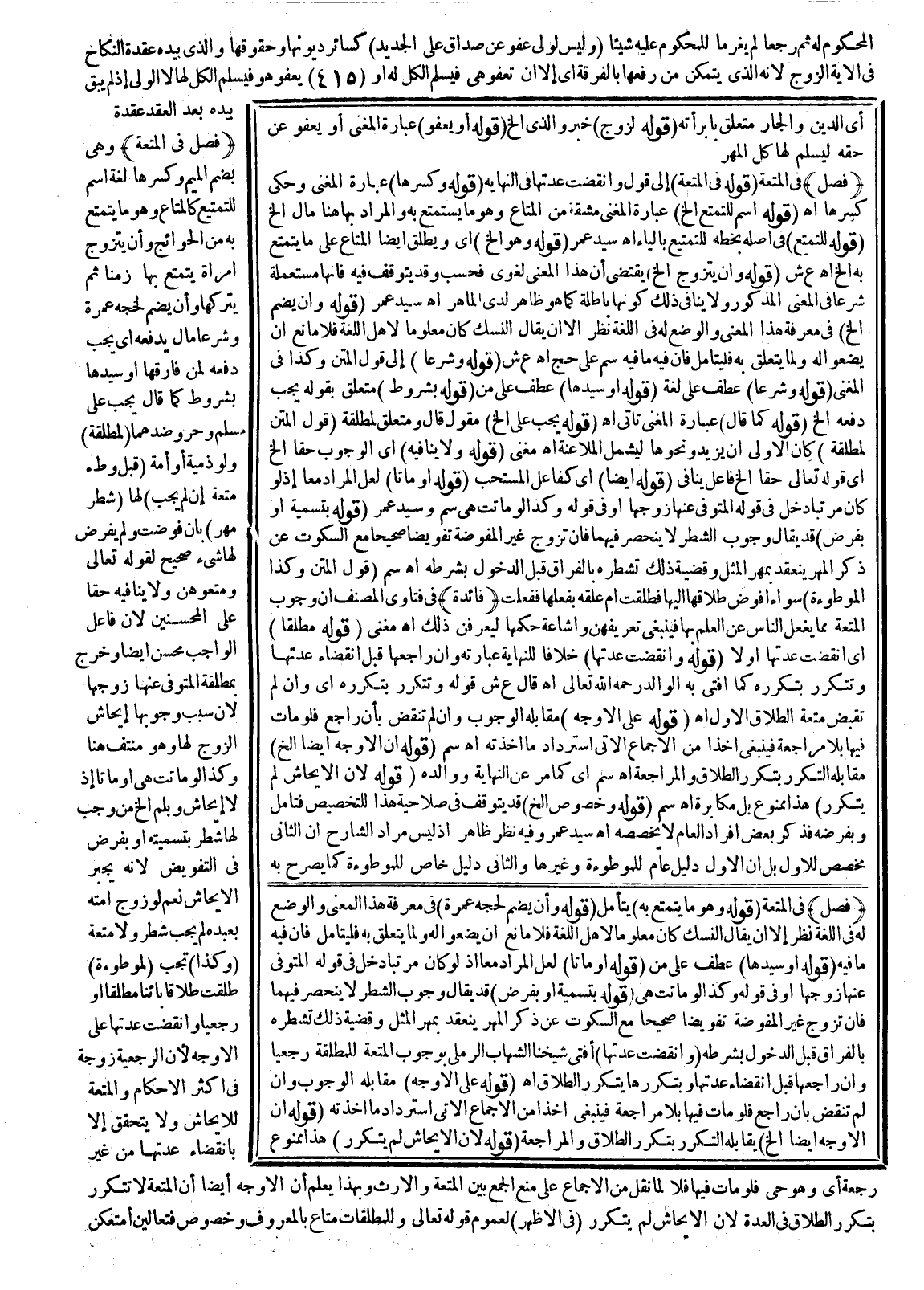 (وَمَتَى ثَبَتَ خِيَارٌ لَهُ) لِنَقْصٍ (أَوْ لَهَا) لِزِيَادَةٍ أَوْ لَهُمَا لِاجْتِمَاعِهِمَا (لَمْ يَمْلِكْ هُوَ) نِصْفَهُ (حَتَّى يَخْتَارَ ذُو الِاخْتِيَارِ) مِنْ أَحَدِهِمَا أَوْ مِنْهُمَا وَإِلَّا لَبَطَلَتْ فَائِدَةُ التَّخْيِيرِ وَهُوَ عَلَى التَّرَاخِي لِأَنَّهُ لَيْسَ خِيَارَ عَيْبٍ مَا لَمْ يَطْلُبْ فَتُكَلَّفُ هِيَ اخْتِيَارَ أَحَدِهِمَا فَوْرًا وَلَا يُعَيِّنُ فِي طَلَبِهِ عَيْنًا وَلَا قِيمَةً لِأَنَّ التَّعْيِينَ يُنَافِي تَفْوِيضَ الْأَمْرِ إلَيْهَا بَلْ يُطَالِبُهَا بِحَقِّهِ عِنْدَهَا فَإِنْ امْتَنَعَتْ لَمْ تُحْبَسْ بَلْ تُنْزَعُ مِنْهَا وَتُمْنَعُ مِنْ التَّصَرُّفِ فِيهَا فَإِنْ أَصَرَّتْ عَلَى الِامْتِنَاعِ بَاعَ الْقَاضِي مِنْهَا بِقَدْرِ الْوَاجِبِ مِنْ الْقِيمَةِ فَإِنْ تَعَذَّرَ بَيْعُهُ بَاعَ الْكُلَّ وَأُعْطِيَتْ مَا زَادَ وَمَعَ مُسَاوَاةِ ثَمَنِ نِصْفِ الْعَيْنِ لِنِصْفِ الْقِيمَةِ يَأْخُذُ نِصْفَ الْعَيْنِ إذْ لَا فَائِدَةَ فِي الْبَيْعِ ظَاهِرَةٌ أَيْ لِأَنَّ الشِّقْصَ لَا رَاغِبَ فِيهِ غَالِبًا قِيلَ ظَاهِرُ كَلَامِهِمَا أَنَّهُ لَا يَمْلِكُهُ أَيْ فِي الصُّورَةِ الْأَخِيرَةِ بِالْإِعْطَاءِ حَتَّى يَقْضِيَ لَهُ الْقَاضِي بِهِ وَفِيهِ نَظَرٌ اهـ.