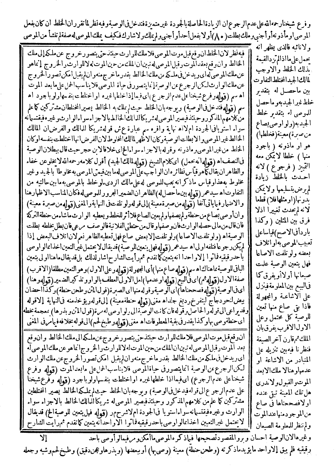 ـــــــــــــــــــــــــــــSإنْ وَقَعَ قَبْلَ مَوْتِ الْمُوصِي فَلَا مِلْكَ لِلْوَارِثِ حِينَئِذٍ حَتَّى يُتَصَوَّرَ خُرُوجٌ عَنْ مِلْكِهِ إلَى مِلْكِ الْخَالِطِ، وَإِنْ وَقَعَ بَعْدَ الْمَوْتِ وَقَبِلَ الْمُوصَى لَهُ تَبَيَّنَ أَنَّ الْمِلْكَ مِنْ حِينِ الْمَوْتِ لَهُ لَا لِلْوَارِثِ وَالْخُرُوجُ إنَّمَا هُوَ عَنْ مِلْكِ الْمُوصَى لَهُ أَيْ وَيَدْخُلُ فِي مِلْكِهِ مِنْ مِلْكِ الْخَالِطِ بِقَدْرِ مَا خَرَجَ مِنْهُ وَإِنْ لَمْ يَقْبَلْ أَمْكَنَ تَصَوُّرُ الْخُرُوجِ عَنْ مِلْكِ الْوَارِثِ لَكِنْ الرُّجُوعُ عَنْ الْوَصِيَّةِ إنَّمَا يُتَصَوَّرُ فِي حَيَاةِ الْمُوصِي فَلَا يُنَاسِبُ الْحَمْلَ عَلَى مَا بَعْدَ الْمَوْتِ (قَوْلُهُ وَفَرَّعَ شَيْخُنَا عَلَى عَدَمِ الرُّجُوعِ) أَيْ فِيمَا إذَا خَلَطَهَا غَيْرُهُ أَوْ اخْتَلَطَتْ بِنَفْسِهَا وَلَوْ بِأَجْوَدَ (قَوْلُهُ وَفَرَّعَ شَيْخُنَا عَلَى عَدَمِ الرُّجُوعِ إلَى قَوْلِهِ فَيَدْخُلُ فِي الْوَصِيَّةِ) وَيُوَجَّهُ بِأَنَّ الْخَلْطَ حَيْثُ لَمْ يَمْلِكْهُ الْخَالِطُ يَصِيرُ الْمُخْتَلَطَيْنِ مُشْتَرَكَيْنِ كَمَا عُلِمَ مِنْ كَلَامِهِمْ الْمَذْكُورِ وَحِينَئِذٍ فَيَصِيرُ الْمُوصَى لَهُ شَرِيكًا لِلْمَالِكِ الْخَالِطِ بِالْأَجْزَاءِ سَوَاءٌ الْوَارِثُ وَغَيْرُهُ فَيَقْتَسِمَانِهِ سَوَاءٌ اسْتَوَيَا فِي الْجَوْدَةِ أَمْ لَا شَرْحُ م ر