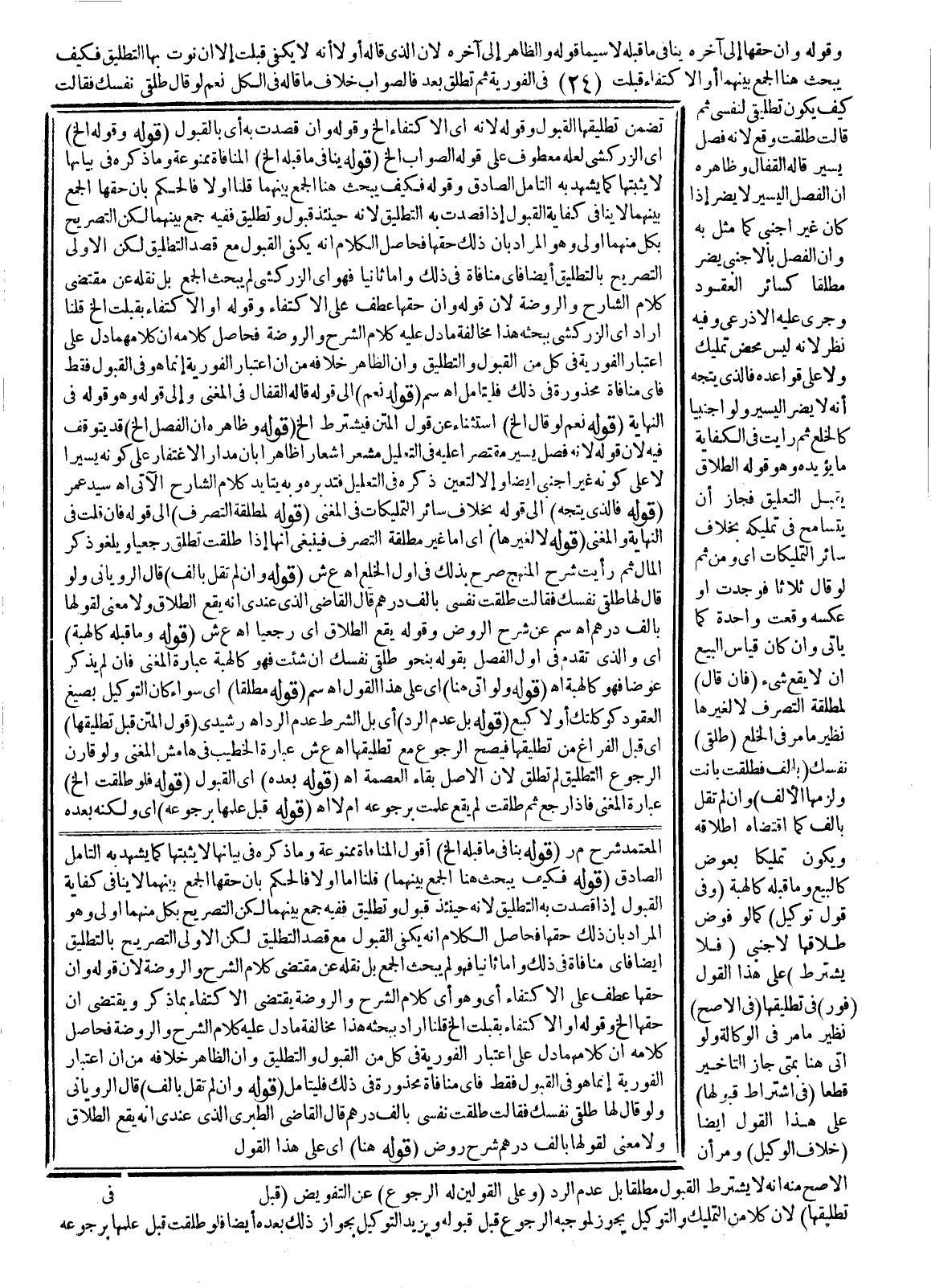 فَحَاصِلُ كَلَامِهِ أَنَّ كَلَامَهُمَا دَلَّ عَلَى اعْتِبَارِ الْفَوْرِيَّةِ فِي كُلٍّ مِنْ الْقَبُولِ وَالتَّطْلِيقِ، وَأَنَّ الظَّاهِرَ خِلَافُهُ مِنْ أَنَّ اعْتِبَارَ الْفَوْرِيَّةِ إنَّمَا هُوَ فِي الْقَبُولِ فَقَطْ فَأَيُّ مُنَافَاةٍ مَحْذُورَةٍ فِي ذَلِكَ فَلْيُتَأَمَّلْ. اهـ. سم (قَوْلُهُ: نَعَمْ) إلَى قَوْلِهِ قَالَهُ الْقَفَّالُ فِي الْمُغْنِي، وَإِلَى قَوْلِهِ، وَهُوَ قَوْلُهُ فِي النِّهَايَةِ (قَوْلُهُ: نَعَمْ لَوْ قَالَ إلَخْ) اسْتِثْنَاءٌ عَنْ قَوْلِ الْمَتْنِ فَيُشْتَرَطُ إلَخْ (قَوْلُهُ: وَظَاهِرُهُ أَنَّ الْفَصْلَ إلَخْ) قَدْ يُتَوَقَّفُ فِيهِ؛ لِأَنَّ قَوْلَهُ؛ لِأَنَّهُ فَصْلٌ يَسِيرٌ مُقْتَصَرٌ عَلَيْهِ فِي التَّعْلِيلِ مُشْعِرٌ إشْعَارًا ظَاهِرًا بِأَنَّ مَدَارَ الِاغْتِفَارِ عَلَى كَوْنِهِ يَسِيرًا لَا عَلَى كَوْنِهِ غَيْرَ أَجْنَبِيٍّ أَيْضًا، وَإِلَّا لَتَعَيَّنَ ذِكْرُهُ فِي التَّعْلِيلِ فَتَدَبَّرْهُ وَبِهِ يَتَأَيَّدُ كَلَامُ الشَّارِحِ الْآتِي. اهـ. سَيِّدُ عُمَرَ (قَوْلُهُ: فَاَلَّذِي يُتَّجَهُ) إلَى قَوْلِهِ بِخِلَافِ سَائِرِ التَّمْلِيكَاتِ فِي الْمُغْنِي.