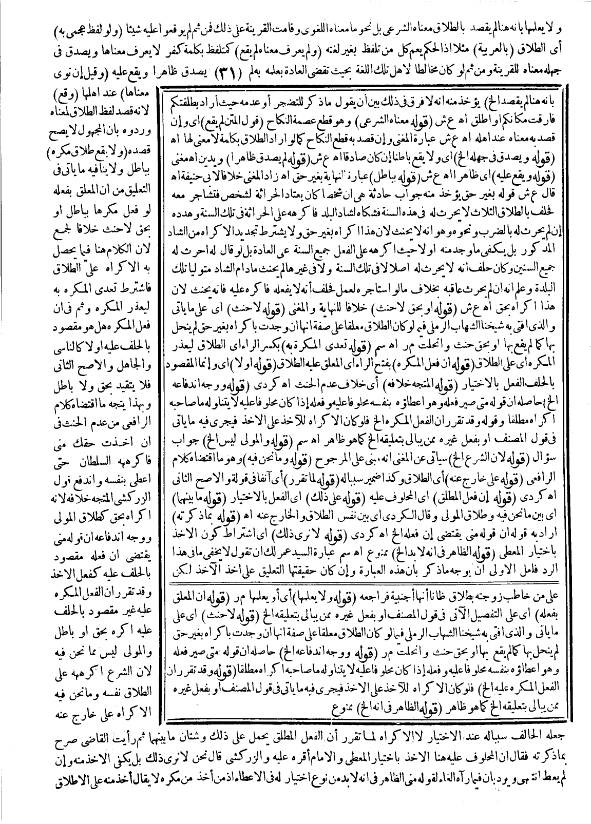 وَلَا يَعْلَمْهَا بِأَنَّهُ هُنَا لَمْ يَقْصِدْ بِالطَّلَاقِ مَعْنَاهُ الشَّرْعِيَّ بَلْ نَحْوَ مَعْنَاهُ اللُّغَوِيِّ وَقَامَتْ الْقَرِينَةُ عَلَى ذَلِكَ فَمِنْ ثَمَّ لَمْ يُوقِعُوا عَلَيْهِ شَيْئًا.