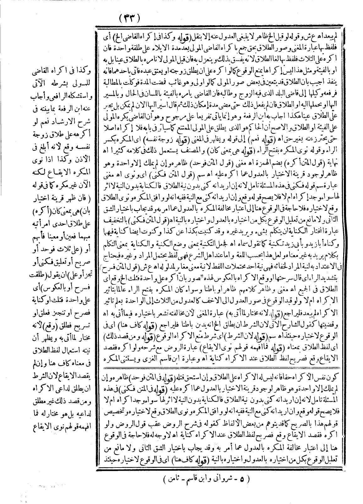 ـــــــــــــــــــــــــــــSكَوْنِ نَفْسِ الْإِكْرَاهِ حَقًّا فَإِنَّهُ لَيْسَ لَهُ الْإِكْرَاهُ عَلَى الطَّلَاقِ، وَإِنْ اسْتَحَقَّ قَتْلَهُ (قَوْلُهُ: فِي الْمَتْنِ فَوَحَّدَ) ظَاهِرُهُ، وَإِنْ لَمْ يَمْلِكْ إلَّا وَاحِدَةً، وَهُوَ ظَاهِرٌ لِوُجُودِ قَرِينَةِ الِاخْتِيَارِ بِالْعُدُولِ عَمَّا أُكْرِهَ عَلَيْهِ (قَوْلُهُ: فِي الْمَتْنِ فَكَنَى) فِي هَذِهِ الْمَسْأَلَةِ تَأَمُّلٌ؛ لِأَنَّهُ إنْ أُرِيدَ أَنَّهُ كَنَى بِدُونِ نِيَّةِ الطَّلَاقِ فَالْكِنَايَةُ بِدُونِ النِّيَّةِ لَا أَثَرَ لَهَا سَوَاءٌ وُجِدَ إكْرَاهٌ أَمْ لَا فَلَا يَصِحُّ قَوْلُهُ: وَقَعَ وَإِنْ أُرِيدَ أَنَّهُ كَنَّى مَعَ النِّيَّةِ فَفِيهِ أَنَّهُ لَوْ وَافَقَ الْمُكْرِهَ وَنَوَى الطَّلَاقَ وَقَعَ لِاخْتِيَارِهِ وَتَخْصِيصُ قَوْلِهِمْ هَذَا بِالصَّرِيحِ كَمَا قَدْ يُتَوَهَّمُ مِنْ بَعْضِ الْأَلْفَاظِ كَقَوْلِهِ فِي شَرْحِ الرَّوْضِ عَقِبَ قَوْلِ الرَّوْضِ وَلَوْ أُكْرِهَ فَقَصَدَ الْإِيقَاعَ وَقَعَ فَصَرِيحُ لَفْظِ الطَّلَاقِ عِنْدَ الْإِكْرَاهِ كِنَايَةٌ. اهـ. لَا وَجْهَ لَهُ فَلَا حَاجَةَ فِي الْوُقُوعِ هُنَا إلَى اعْتِبَارِ مُخَالَفَةِ الْمُكْرِهِ بِالْعُدُولِ عَمَّا أُمِرَ بِهِ وَقَدْ يُجَابُ بِاخْتِيَارِ الشِّقِّ الثَّانِي، وَلَا مَانِعَ مِنْ تَعْلِيلِ الْوُقُوعِ بِكُلٍّ مِنْ اخْتِيَارِهِ بِالْعُدُولِ وَاخْتِيَارِهِ بِالنِّيَّةِ.