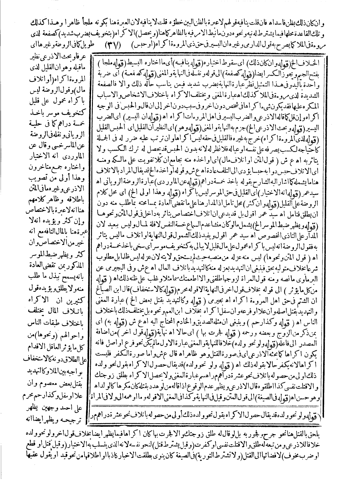 (قَوْلُهُ: أَنَّ الْيَسِيرَ) أَيْ الضَّرْبَ الْيَسِيرَ (قَوْلُهُ: وَبَحَثَ الْأَذْرَعِيُّ إلَخْ) جَزَمَ بِهِ النِّهَايَةُ وَالْمُغْنِي (قَوْلُهُ: وَهُوَ) أَيْ النَّظِيرُ أَنَّ الْقَلِيلَ أَيْ الْحَبْسَ الْقَلِيلَ (قَوْلُهُ: لِذِي الْمُرُوءَةِ إكْرَاهٌ) خَرَجَ بِهِ غَيْرُهُ فَالْقَلِيلُ فِي حَقِّهِ لَيْسَ إكْرَاهًا، وَإِنْ تَرَتَّبَ عَلَيْهِ ضَرَرٌ لَهُ فِي الْجُمْلَةِ كَاحْتِيَاجِهِ لِكَسْبٍ يَصْرِفُهُ عَلَى نَفْسِهِ أَوْ عِيَالِهِ فَلَا نَظَرَ لَهُ؛ لِأَنَّهُ بِدُونِ الْحَبْسِ قَدْ يَحْصُلُ لَهُ تَرْكُ الْكَسْبِ وَلَا يَتَأَثَّرُ بِهِ. اهـ. ع ش (قَوْلُ الْمَتْنِ أَوْ إتْلَافِ مَالٍ) أَيْ أَوْ أَخْذِهِ مِنْهُ بِجَامِعِ أَنَّ كُلًّا تَفْوِيتٌ عَلَى مَالِكِهِ وَمِنْهُ أَيْ الْإِتْلَافِ حَبْسُ دَوَابِّهِ حَبْسًا يُؤَدِّي إلَى التَّلَفِ عَادَةً. اهـ. ع ش وَقَوْلُهُ: أَوْ أَخْذِهِ إلَخْ قَدْ يُقَالُ الْمُرَادُ بِالْإِتْلَافِ هُنَا مَا يَشْمَلُهُ كَمَا أَشَارَ إلَيْهِ الشَّارِحُ بِقَوْلِهِ بِأَخْذِ خَمْسَةِ دَرَاهِمَ (قَوْلُهُ: عَنْ الْمَاوَرْدِيِّ) عِبَارَةُ الرَّوْضَةِ وَالرُّويَانِيِّ. اهـ. سَيِّدُ عُمَرَ (قَوْلُهُ: أَنَّهُ الِاخْتِيَارُ) أَيْ الْقَلِيلَ فِي حَقِّ الْمُوسِرِ لَيْسَ بِإِكْرَاهٍ (قَوْلُهُ: وَهَذَا أَوْلَى إلَخْ) أَيْ مَحَلُّ كَلَامِ الرَّوْضَةِ عَلَى الْقَلِيلِ (قَوْلُهُ: وَإِنْ كَثُرَ) مَحَلُّ تَأَمُّلٍ إذْ الْمَدَارُ هُنَا عَلَى مَا تَقْضِي الْعَادَةُ بِمُسَامَحَتِهِ بِمَا طُلِبَ مِنْهُ دُونَ أَنْ يُطَلِّقَ فَتَأَمَّلْ. اهـ. سَيِّدُ عُمَرَ أَقُولُ بَلْ قَدْ يُدَّعَى أَنَّ إتْلَافَ اخْتِصَاصٍ يَتَأَثَّرُ بِهِ دَاخِلٌ فِي قَوْلِ الْمَتْنِ وَنَحْوِهَا (قَوْلُهُ: وَيَظْهَرُ ضَبْطُ الْمُوسِرِ إلَخْ) يَشْمَلُ مَا لَوْ كَانَ مَنْشَأُ عَدَمِ السَّمَاعِ خِسَّةَ النَّفْسِ لَا قِلَّةَ الْمَالِ وَلَيْسَ بِبَعِيدٍ؛ لِأَنَّ الْمَدَارَ عَلَى التَّأَذِّي الْمَخْصُوصِ. اهـ. سَيِّدُ عُمَرَ أَقُولُ، وَيُفِيدُ ذَلِكَ الشُّمُولَ قَوْلُ النِّهَايَةِ أَوْ إتْلَافُ مَا لَيْسَ يَتَأَثَّرُ بِهِ فَقَوْلُ الرَّوْضَةِ: إنَّهُ لَيْسَ بِإِكْرَاهٍ مَحْمُولٌ عَلَى مَالٍ قَلِيلٍ لَا يُبَالَى بِهِ كَتَخْوِيفِ مُوسِرٍ أَيْ سَخِيٍّ بِأَخْذِ خَمْسَةَ دَرَاهِمَ. اهـ.
