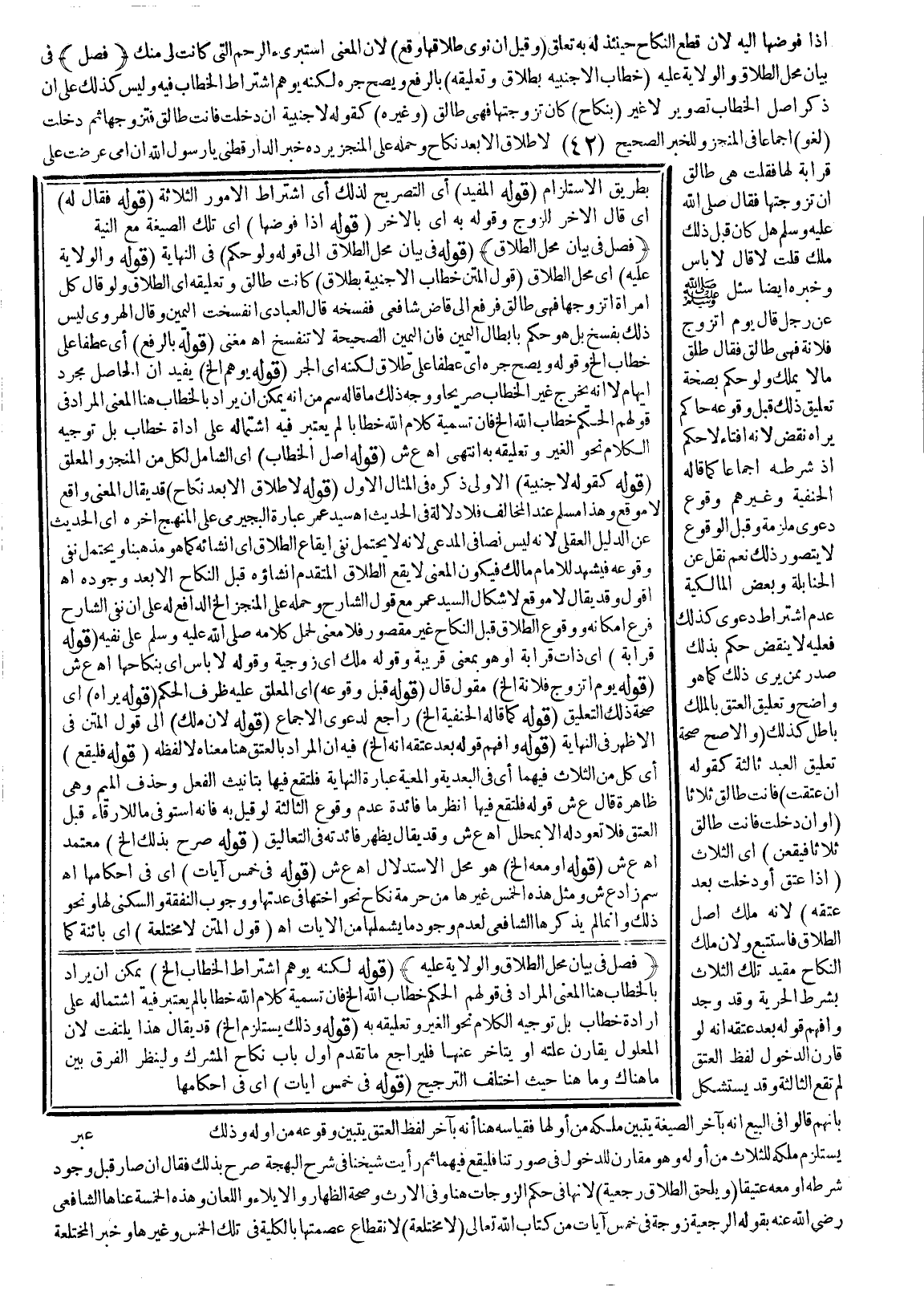 (فَصْلٌ فِي بَيَانِ مَحَلِّ الطَّلَاقِ) (قَوْلُهُ: فِي بَيَانِ مَحَلِّ الطَّلَاقِ إلَى قَوْلِهِ وَلَوْ حَكَمَ) فِي النِّهَايَةِ (قَوْلُهُ: وَالْوِلَايَةِ عَلَيْهِ) أَيْ مَحَلِّ الطَّلَاقِ (قَوْلُ الْمَتْنِ خِطَابُ الْأَجْنَبِيَّةِ بِطَلَاقٍ) كَأَنْتِ طَالِقٌ وَتَعْلِيقُهُ أَيْ الطَّلَاقِ وَلَوْ قَالَ كُلُّ امْرَأَةٍ أَتَزَوَّجُهَا فَهِيَ طَالِقٌ فَرُفِعَ إلَى قَاضٍ شَافِعِيٍّ فَفَسَخَهُ قَالَ الْعَبَّادِيُّ انْفَسَخَتْ الْيَمِينُ وَقَالَ الْهَرَوِيُّ لَيْسَ ذَلِكَ بِفَسْخٍ بَلْ هُوَ حُكْمٌ بِإِبْطَالِ الْيَمِينِ فَإِنَّ الْيَمِينَ الصَّحِيحَةِ لَا تَنْفَسِخُ. اهـ. مُغْنِي (قَوْلُهُ: بِالرَّفْعِ) أَيْ عَطْفًا عَلَى خِطَابُ إلَخْ وَقَوْلُهُ: وَيَصِحُّ جَرُّهُ أَيْ عَطْفًا عَلَى طَلَاقٍ لَكِنَّهُ أَيْ الْجَرَّ (قَوْلُهُ: يُوهِمُ إلَخْ) يُفِيدُ أَنَّ الْحَاصِلَ مُجَرَّدُ إيهَامٍ لَا أَنَّهُ يُخْرِجُ غَيْرَ الْخِطَابِ صَرِيحًا وَوَجْهُ ذَلِكَ مَا قَالَهُ سم مِنْ أَنَّهُ يُمْكِنُ أَنْ يُرَادَ بِالْخِطَابِ هُنَا الْمَعْنَى الْمُرَادُ فِي قَوْلِهِمْ الْحُكْمُ خِطَابُ اللَّهِ إلَخْ فَإِنَّ تَسْمِيَةَ كَلَامِ اللَّهِ خِطَابًا لَمْ يُعْتَبَرْ فِيهِ اشْتِمَالُهُ عَلَى أَدَاةِ خِطَابٍ بَلْ تَوْجِيهُ الْكَلَامِ نَحْوَ الْغَيْرِ وَتَعْلِيقُهُ بِهِ. انْتَهَى. اهـ. ع ش (قَوْلُهُ: أَصْلِ الْخِطَابِ) أَيْ الشَّامِلِ لِكُلٍّ مِنْ الْمُنَجَّزِ وَالْمُعَلَّقِ (قَوْلُهُ: كَقَوْلِهِ لِأَجْنَبِيَّةٍ) الْأَوْلَى ذِكْرُهُ فِي الْمِثَالِ الْأَوَّلِ (قَوْلُهُ: «لَا طَلَاقَ إلَّا بَعْدَ نِكَاحٍ» ) قَدْ يُقَالُ الْمَعْنَى وَاقِعٌ لَا مُوقَعٌ، وَهَذَا مُسَلَّمٌ عِنْدَ الْمُخَالِفِ فَلَا دَلَالَةَ فِي الْحَدِيثِ. اهـ. سَيِّدُ عُمَرَ عِبَارَةُ الْبُجَيْرَمِيِّ عَلَى الْمَنْهَجِ أَخَّرَهُ أَيْ الْحَدِيثَ عَنْ الدَّلِيلِ الْعَقْلِيِّ؛ لِأَنَّهُ لَيْسَ نَصًّا فِي الْمُدَّعَى؛ لِأَنَّهُ يَحْتَمِلُ نَفْيَ إيقَاعِ الطَّلَاقِ أَيْ إنْشَائِهِ كَمَا هُوَ مَذْهَبُنَا، وَيَحْتَمِلُ نَفْيَ وُقُوعِهِ فَيَشْهَدُ لِلْإِمَامِ مَالِكٍ فَيَكُونُ الْمَعْنَى لَا يَقَعُ الطَّلَاقُ الْمُتَقَدِّمِ إنْشَاؤُهُ قَبْلَ النِّكَاحِ إلَّا بَعْدَ وُجُودِهِ. اهـ.