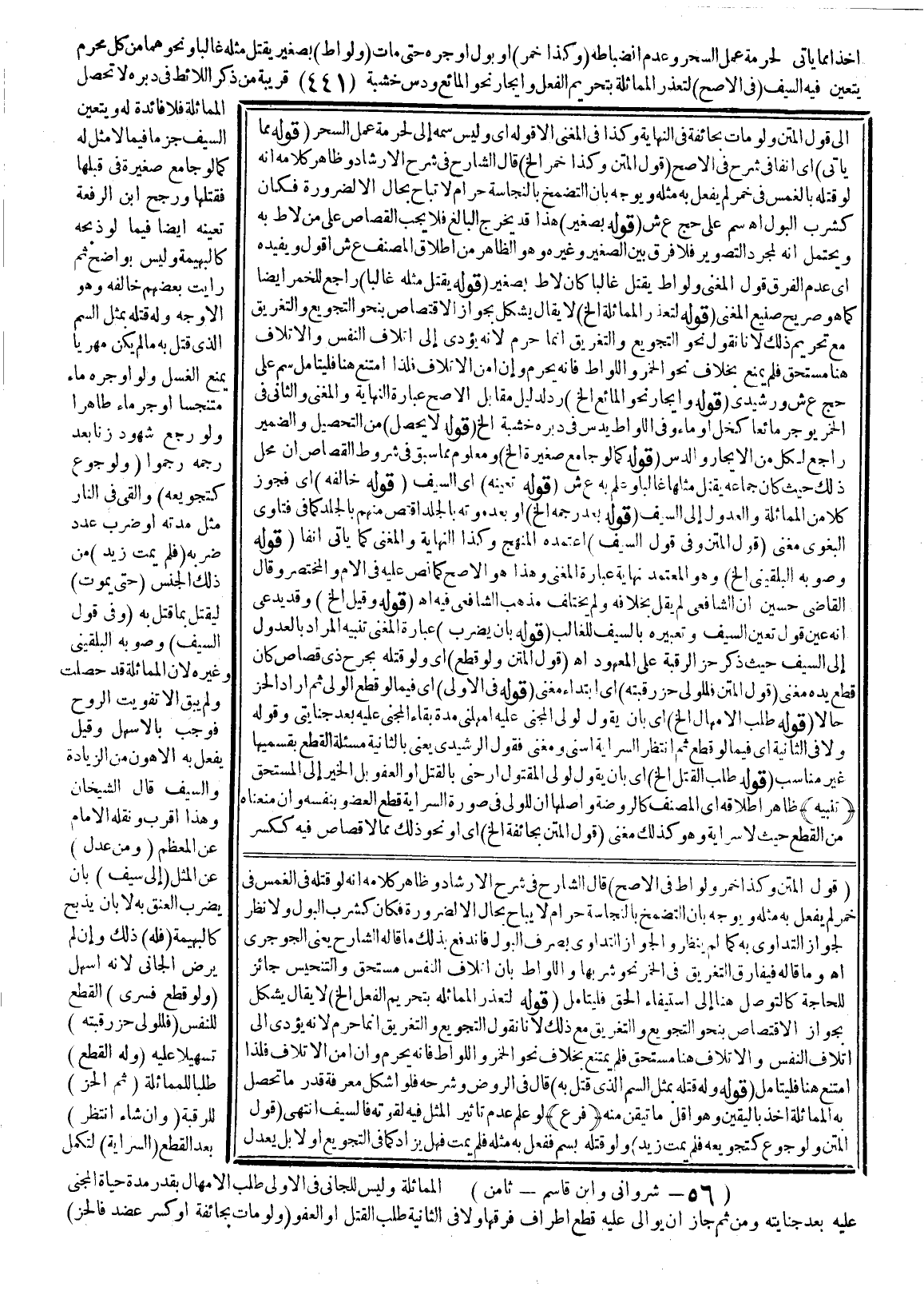 ـــــــــــــــــــــــــــــQإلَى قَوْلِ الْمَتْنِ، وَلَوْ مَاتَ بِجَائِفَةٍ فِي النِّهَايَةِ وَكَذَا فِي الْمُغْنِي إلَّا قَوْلَهُ أَيْ وَلَيْسَ سُمَّهُ إلَى لِحُرْمَةِ عَمَلِ السِّحْرِ (قَوْلُهُ مِمَّا يَأْتِي) أَيْ آنِفًا فِي شَرْحِ فِي الْأَصَحِّ (قَوْلُ الْمَتْنِ وَكَذَا خَمْرٌ إلَخْ) قَالَ الشَّارِحُ فِي شَرْحِ الْإِرْشَادِ وَظَاهِرُ كَلَامِهِ أَنَّهُ لَوْ قَتَلَهُ بِالْغَمْسِ فِي خَمْرٍ لَمْ يَفْعَلْ بِهِ مِثْلَهُ وَيُوَجَّهُ بِأَنَّ التَّضَمُّخَ بِالنَّجَاسَةِ حَرَامٌ لَا تُبَاحُ بِحَالٍ إلَّا لِضَرُورَةٍ فَكَانَ كَشُرْبِ الْبَوْلِ. اهـ سم عَلَى حَجّ ع ش