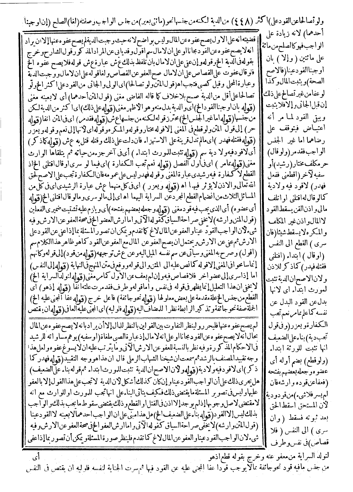 ـــــــــــــــــــــــــــــSلَمْ يَصِحَّ عَفْوُهُ عَنْهَا فَلْيُحَرَّرْ وَلْيُنْظَرْ التَّفَاوُتُ بَيْنَ الْقَوْلَيْنِ بِالنَّظَرِ لِلْمَالِ إلَّا أَنْ يُرَادَ بِأَنَّهُ لَا يَصِحُّ عَفْوُهُ عَنْ الْمَالِ بِحَالٍ أَنَّهُ لَا يَصِحُّ عَفْوُهُ عَنْ الْقَوَدِ مَجَّانًا، أَوْ عَلَى أَنَّهُ لَا مَالَ إذْ عِبَارَةُ الصَّبِيِّ مُلْغَاةٌ.