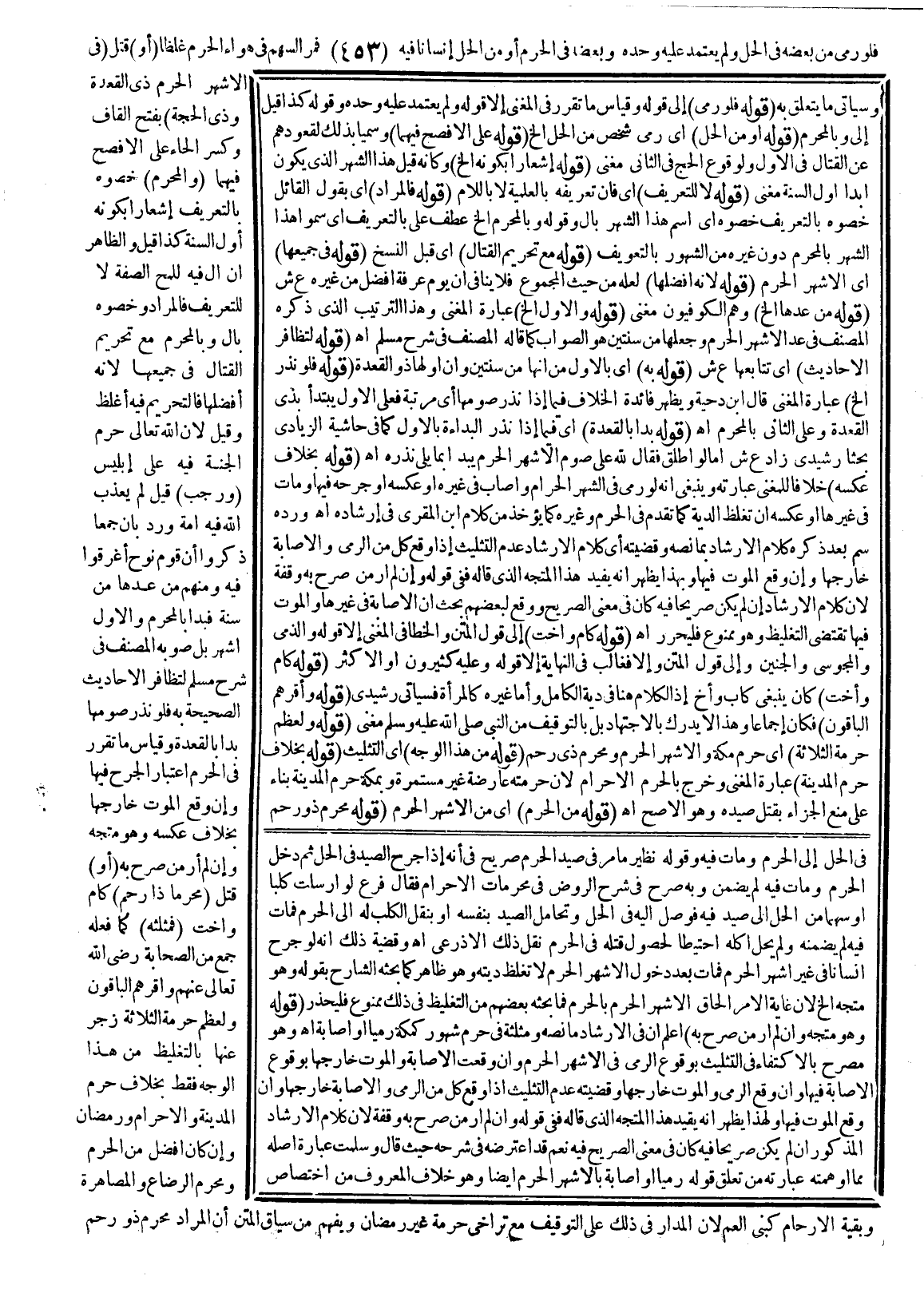 ـــــــــــــــــــــــــــــSفِي الْحِلِّ إلَى الْحَرَمِ وَمَاتَ فِيهِ وَقَوْلُهُ نَظِيرُ مَا مَرَّ فِي صَيْدِ الْحَرَمِ صَرِيحٌ فِي أَنَّهُ إذَا جُرِحَ الصَّيْدُ فِي الْحِلِّ ثُمَّ دَخَلَ الْحَرَمَ وَمَاتَ فِيهِ لَمْ يَضْمَنْ وَبِهِ صَرَّحَ فِي شَرْحِ الرَّوْضِ فِي مُحَرَّمَاتِ الْإِحْرَامِ فَقَالَ فَرْعٌ لَوْ أَرْسَلْت كَلْبًا أَوْ سَهْمًا مِنْ الْحِلِّ إلَى صَيْدٍ فِيهِ فَوَصَلَ إلَيْهِ فِي الْحِلِّ وَتَحَامَلَ الصَّيْدُ بِنَفْسِهِ أَوْ بِنَقْلِ الْكَلْبِ لَهُ إلَى الْحَرَمِ فَمَاتَ فِيهِ لَمْ يَضْمَنْهُ، وَلَمْ يَحِلَّ أَكْلُهُ احْتِيَاطًا لِحُصُولِ قَتْلِهِ فِي الْحَرَمِ نَقَلَ ذَلِكَ الْأَذْرَعِيُّ. اهـ وَقَضِيَّةُ ذَلِكَ أَنَّهُ لَوْ جَرَحَ إنْسَانًا فِي غَيْرِ الْأَشْهُرِ الْحُرُمِ فَمَاتَ بَعْدَ دُخُولِ الْأَشْهُرِ الْحُرُمِ لَا تُغَلَّظُ دِيَتُهُ وَهُوَ ظَاهِرٌ كَمَا بَحَثَهُ الشَّارِحُ بِقَوْلِهِ، وَهُوَ مُتَّجَهٌ إلَخْ؛ لِأَنَّ غَايَةَ الْأَمْرِ إلْحَاقُ الْأَشْهُرُ الْحُرُمُ بِالْحَرَمِ فَمَا بَحَثَهُ بَعْضُهُمْ مِنْ التَّغْلِيظِ فِي ذَلِكَ مَمْنُوعٌ فَلْيُحْذَرْ