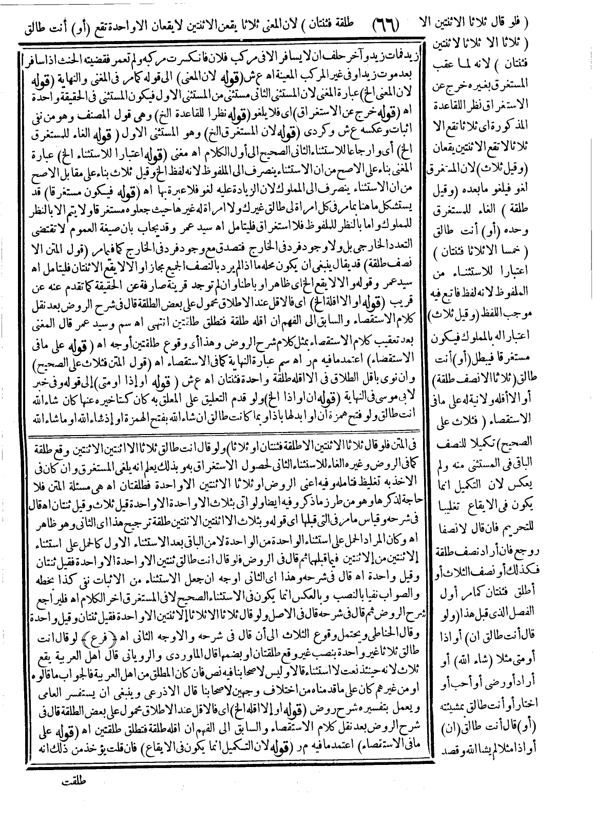 (فَرْعٌ) لَوْ قَالَ: أَنْتِ طَالِقٌ ثَلَاثًا غَيْرَ وَاحِدَةٍ بِنَصْبِ غَيْرَ وَقَعَ طَلْقَتَانِ أَوْ بِضَمِّهَا قَالَ الْمَاوَرْدِيُّ وَالرُّويَانِيُّ قَالَ أَهْلُ الْعَرَبِيَّةِ يَقَعُ ثَلَاثٌ؛ لِأَنَّهُ حِينَئِذٍ نَعْتٌ لَا اسْتِثْنَاءٌ قَالَا: وَلَيْسَ لِأَصْحَابِنَا فِيهِ نَصٌّ فَإِنْ كَانَ الْمُطَلِّقُ مِنْ أَهْلِ الْعَرَبِيَّةِ فَالْجَوَابُ مَا قَالُوهُ، أَوْ مِنْ غَيْرِهِمْ كَانَ عَلَى مَا قَدَّمْنَاهُ مِنْ اخْتِلَافِ وَجْهَيْنِ لِأَصْحَابِنَا قَالَ الْأَذْرَعِيُّ: وَيَنْبَغِي أَنْ يُسْتَفْسَرَ الْعَامِّيُّ وَيُعْمَلَ بِتَفْسِيرِهِ شَرْحُ رَوْضٍ