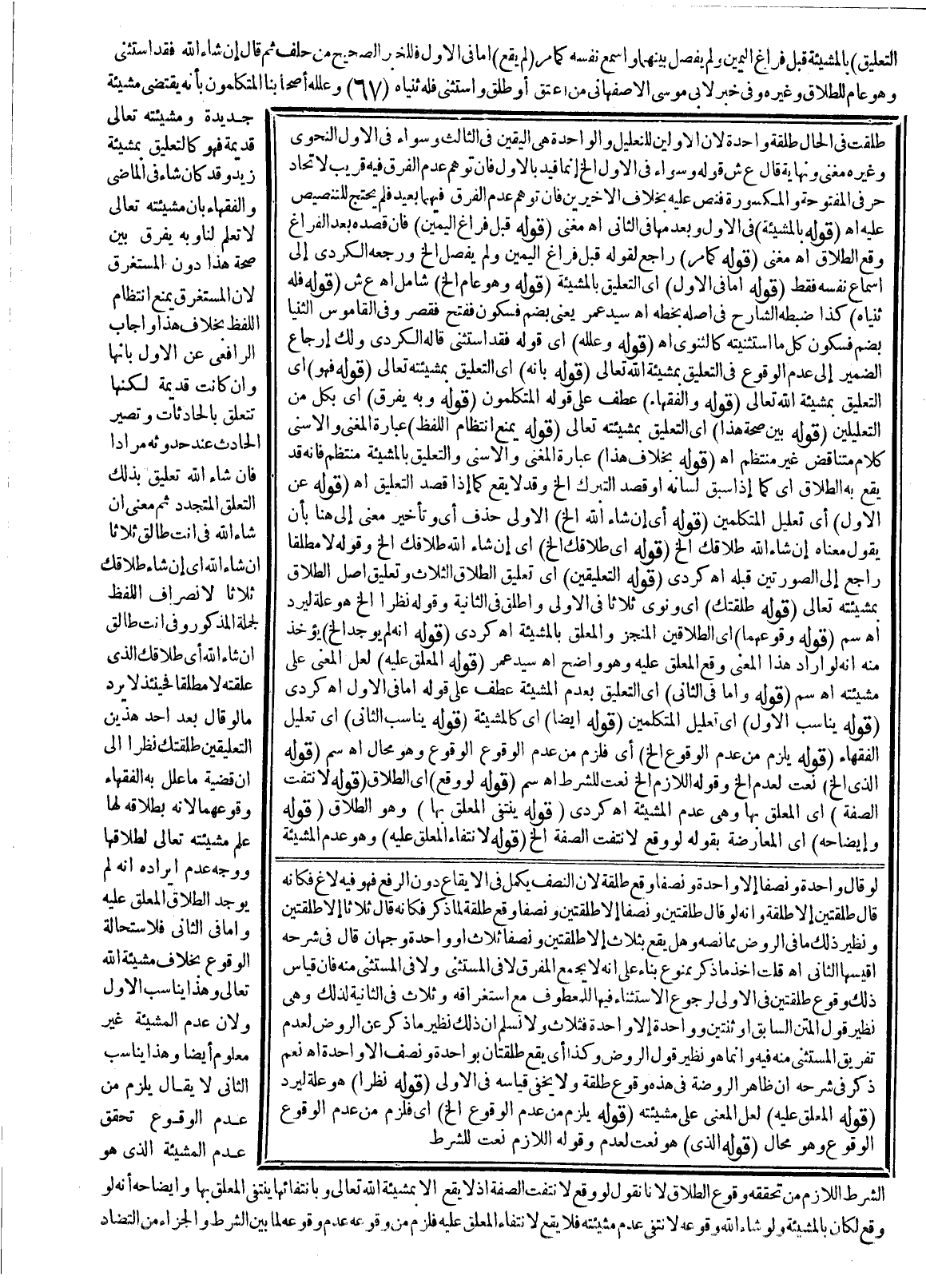 وَفِي أَنْتِ طَالِقٌ إنْ شَاءَ اللَّهُ أَيْ طَلَاقَك الَّذِي عَلَّقْته لَا مُطْلَقًا فَحِينَئِذٍ لَا يَرِدُ مَا لَوْ قَالَ بَعْدَ أَحَدِ هَذَيْنِ التَّعْلِيقَيْنِ طَلَّقْتُك نَظَرًا إلَى أَنَّ قَضِيَّةَ مَا عَلَّلَ بِهِ الْفُقَهَاءُ وُقُوعَهُمَا؛ لِأَنَّهُ بِطَلَاقِهِ لَهَا عَلِمَ مَشِيئَتَهُ - تَعَالَى - لِطَلَاقِهَا وَوَجْهُ عَدَمِ إيرَادِهِ أَنَّهُ لَمْ يُوجَدْ الطَّلَاقُ الْمُعَلَّقُ عَلَيْهِ، وَأَمَّا فِي الثَّانِي فَلِاسْتِحَالَةِ الْوُقُوعِ بِخِلَافِ مَشِيئَةِ اللَّهِ - تَعَالَى، وَهَذَا يُنَاسِبُ الْأَوَّلَ وَلِأَنَّ عَدَمَ الْمَشِيئَةِ غَيْرُ مَعْلُومٍ أَيْضًا، وَهَذَا يُنَاسِبُ الثَّانِيَ لَا يُقَالُ: يَلْزَمُ مِنْ عَدَمِ الْوُقُوعِ تَحَقُّقُ عَدَمِ الْمَشِيئَةِ الَّذِي هُوَ الشَّرْطُ اللَّازِمُ مِنْ تَحَقُّقِهِ وُقُوعَ الطَّلَاقِ؛ لِأَنَّا نَقُولُ: لَوْ وَقَعَ لَانْتَفَتْ الصِّفَةُ؛ إذْ لَا يَقَعُ إلَّا بِمَشِيئَةِ اللَّهِ - تَعَالَى، وَبِانْتِفَائِهَا يَنْتَفِي الْمُعَلَّقُ بِهَا وَإِيضَاحُهُ أَنَّهُ لَوْ وَقَعَ لَكَانَ بِالْمَشِيئَةِ وَلَوْ شَاءَ اللَّهُ وُقُوعَهُ لَانْتَفَى عَدَمُ مَشِيئَتِهِ فَلَا يَقَعُ لِانْتِفَاءِ الْمُعَلَّقِ عَلَيْهِ فَلَزِمَ مِنْ وُقُوعِهِ عَدَمُ وُقُوعِهِ لِمَا بَيْنَ الشَّرْطِ وَالْجَزَاءِ مِنْ التَّضَادِّ