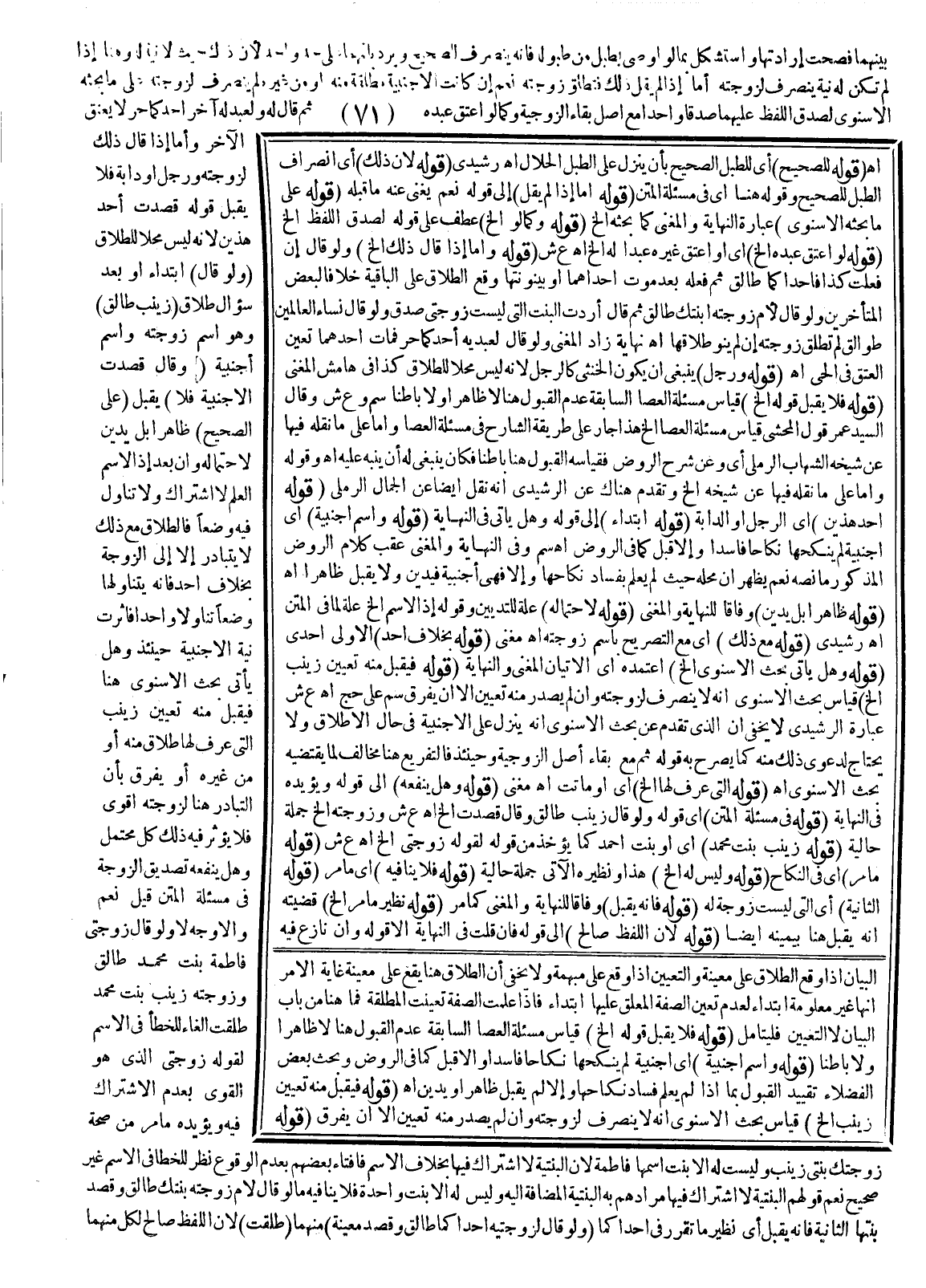 (وَلَوْ قَالَ) ابْتِدَاءً أَوْ بَعْدَ سُؤَالِ طَلَاقٍ (زَيْنَبُ طَالِقٌ) وَهُوَ اسْمُ زَوْجَتِهِ وَاسْمُ أَجْنَبِيَّةٍ (وَقَالَ: قَصَدْت الْأَجْنَبِيَّةَ فَلَا) يُقْبَلُ (عَلَى الصَّحِيحِ) ظَاهِرًا بَلْ يُدَيَّنُ لِاحْتِمَالِهِ، وَإِنْ بَعُدَ إذْ الِاسْمُ الْعَلَمُ لَا اشْتِرَاكَ، وَلَا تَنَاوُلَ فِيهِ وَضْعًا فَالطَّلَاقُ مَعَ ذَلِكَ لَا يَتَبَادَرُ إلَّا إلَى الزَّوْجَةِ بِخِلَافِ أَحَدٍ فَإِنَّهُ يَتَنَاوَلُهَا وَضْعًا تَنَاوُلًا وَاحِدًا فَأَثَّرَتْ نِيَّةُ الْأَجْنَبِيَّةِ حِينَئِذٍ، وَهَلْ يَأْتِي بَحْثُ الْإِسْنَوِيُّ هُنَا فَيُقْبَلُ مِنْهُ تَعْيِينُ زَيْنَبَ الَّتِي عُرِفَ لَهَا طَلَاقٌ مِنْهُ أَوْ مِنْ غَيْرِهِ أَوْ يُفَرَّقُ بِأَنَّ التَّبَادُرَ هُنَا لِزَوْجَتِهِ أَقْوَى فَلَا يُؤَثِّرُ فِيهِ ذَلِكَ كُلٌّ مُحْتَمَلٌ، وَهَلْ يَنْفَعُهُ تَصْدِيقُ الزَّوْجَةِ فِي مَسْأَلَةِ الْمَتْنِ قِيلَ نَعَمْ وَالْأَوْجَهُ لَا وَلَوْ قَالَ: زَوْجَتِي فَاطِمَةُ بِنْتُ مُحَمَّدٍ طَالِقٌ وَزَوْجَتُهُ زَيْنَبُ بِنْتُ مُحَمَّدٍ طَلَقَتْ إلْغَاءً لِلْخَطَأِ فِي الِاسْمِ لِقَوْلِهِ زَوْجَتِي الَّذِي هُوَ الْقَوِيُّ بِعَدَمِ الِاشْتِرَاكِ فِيهِ وَيُؤَيِّدُهُ مَا مَرَّ مِنْ صِحَّةِ زَوَّجْتُك بِنْتِي زَيْنَبَ، وَلَيْسَتْ لَهُ إلَّا بِنْتٌ اسْمُهَا فَاطِمَةُ؛ لِأَنَّ الْبِنْتِيَّةَ لَا اشْتِرَاكَ فِيهَا بِخِلَافِ الِاسْمِ فَإِفْتَاءُ بَعْضِهِمْ بِعَدَمِ الْوُقُوعِ نَظَرًا لِلْخَطَأِ فِي الِاسْمِ غَيْرُ صَحِيحٍ نَعَمْ قَوْلُهُمْ: الْبِنْتِيَّةُ لَا اشْتِرَاكَ فِيهَا مُرَادُهُمْ بِهِ الْبِنْتِيَّةُ الْمُضَافَةُ إلَيْهِ وَلَيْسَ لَهُ إلَّا بِنْتٌ وَاحِدَةٌ فَلَا يُنَافِيهِ مَا لَوْ قَالَ لِأُمِّ زَوْجَتِهِ: بِنْتُك طَالِقٌ وَقَصَدَ بِنْتَهَا الثَّانِيَةَ فَإِنَّهُ يُقْبَلُ أَيْ نَظِيرُ مَا تَقَرَّرَ فِي إحْدَاكُمَا