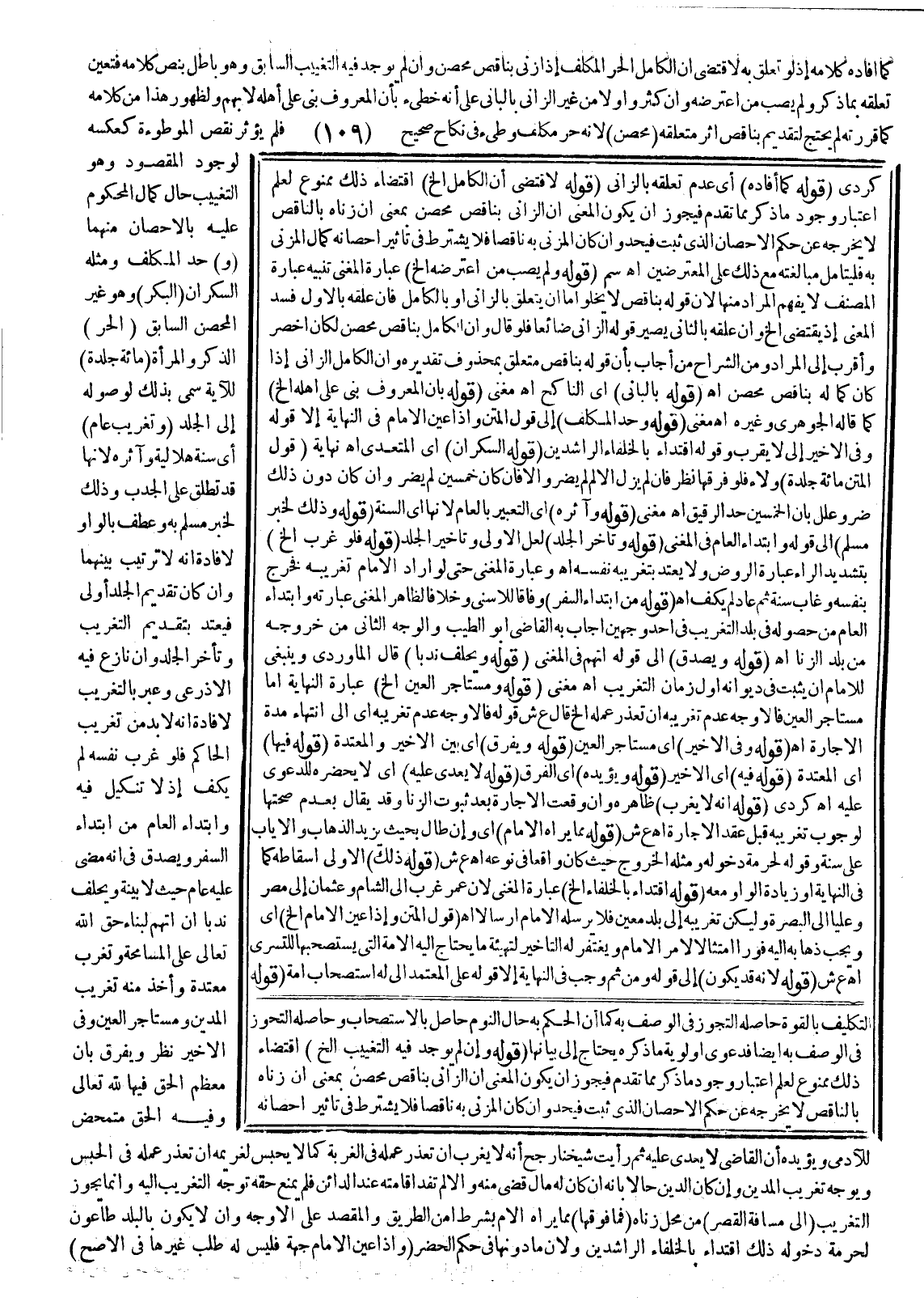 ـــــــــــــــــــــــــــــSالتَّكْلِيفَ بِالْقُوَّةِ حَاصِلُهُ التَّجَوُّزُ فِي الْوَصْفِ بِهِ كَمَا أَنَّ الْحُكْمَ بِهِ حَالَ النَّوْمِ حَاصِلٌ بِالِاسْتِصْحَابِ وَحَاصِلُهُ التَّجَوُّزُ فِي الْوَصْفِ بِهِ أَيْضًا فَدَعْوَى أَوْلَوِيَّةِ مَا ذَكَرَهُ يُحْتَاجُ إلَى بَيَانِهَا (قَوْلُهُ: وَإِنْ لَمْ يُوجَدْ فِيهِ التَّغْيِيبُ إلَخْ) اقْتِضَاءُ ذَلِكَ مَمْنُوعٌ لِعِلْمِ اعْتِبَارِ وُجُودِ مَا ذُكِرَ مِمَّا تَقَدَّمَ فَيَجُوزُ أَنْ يَكُونَ الْمَعْنَى أَنَّ الزَّانِيَ بِنَاقِصٍ مُحْصَنٌ بِمَعْنَى أَنَّ زِنَاهُ بِالنَّاقِصِ لَا يُخْرِجُهُ عَنْ حُكْمِ الْإِحْصَانِ الَّذِي ثَبَتَ فَيُحَدُّ وَإِنْ كَانَ الْمَزْنِيُّ بِهِ نَاقِصًا فَلَا يُشْتَرَطُ فِي تَأْثِيرِ إحْصَانِهِ