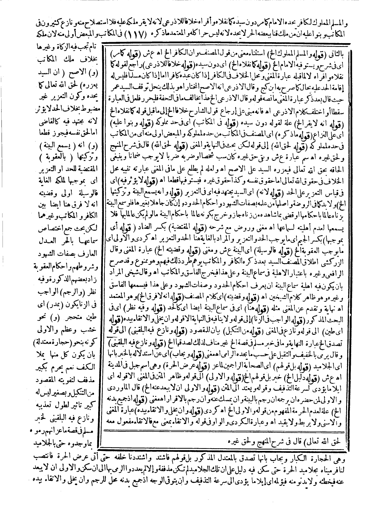 وَالْمُسْلِمُ الْمَمْلُوكُ لِكَافِرٍ يَحُدُّهُ الْإِمَامُ كَمَا مَرَّ دُونَ سَيِّدِهِ كَمَا نَقَلَاهُ وَأَقَرَّاهُ خِلَافًا لِلْأَذْرَعِيِّ؛ لِأَنَّهُ لَا يُقَرُّ مِلْكُهُ عَلَيْهِ فَلَا اسْتِصْلَاحَ مِنْهُ وَنَازَعَ كَثِيرُونَ فِي الْمُكَاتَبِ وَبَنَوْا عَلَيْهِ أَنَّ مَنْ مَلَكَ قِنًّا بِبَعْضِهِ الْحُرِّ لَا يَحُدُّهُ لِأَنَّهُ لَيْسَ حُرًّا كُلُّهُ وَالْمُعْتَمَدُ مَا ذَكَرَهُ فِي الْمُكَاتَبِ وَالْمُبَعَّضُ أَوْلَى مِنْهُ؛ لِأَنَّ مِلْكَهُ تَامٌّ تَجِبُ فِيهِ الزَّكَاةُ وَغَيْرُهَا بِخِلَافِ مِلْكِ الْمُكَاتَبِ (وَ) الْأَصَحُّ (أَنَّ السَّيِّدَ يُعَزِّرُهُ) لِحَقِّ اللَّهِ تَعَالَى كَمَا يَحُدُّهُ وَكَوْنُ التَّعْزِيرِ غَيْرَ مَضْبُوطٍ بِخِلَافِ الْحَدِّ لَا يُؤَثِّرُ؛ لِأَنَّهُ مُجْتَهِدٌ فِيهِ كَالْقَاضِي إمَّا لِحَقِّ نَفْسِهِ فَيَجُوزُ قَطْعًا (وَ) أَنَّهُ (يَسْمَعُ الْبَيِّنَةَ) وَتَزْكِيَتَهَا (بِالْعُقُوبَةِ) الْمُقْتَضِيَةِ لِلْحَدِّ أَوْ التَّعْزِيرِ أَيْ بِمُوجِبِهَا لِمِلْكِهِ الْغَايَةَ فَالْوَسِيلَةُ أَوْلَى وَقَضِيَّتُهُ أَنَّهُ لَا فَرْقَ هُنَا أَيْضًا بَيْنَ الْكَافِرِ وَالْمُكَاتَبِ وَغَيْرِهِمَا لَكِنْ بَحَثَ جَمْعٌ اخْتِصَاصَ سَمَاعِهَا بِالْحُرِّ الْعَدْلِ الْعَارِفِ بِصِفَاتِ الشُّهُودِ وَشُرُوطِهِمْ وَأَحْكَامِ الْعُقُوبَةِ زَادَ بَعْضُهُمْ الذُّكُورَةَ وَفِيهِ نَظَرٌ