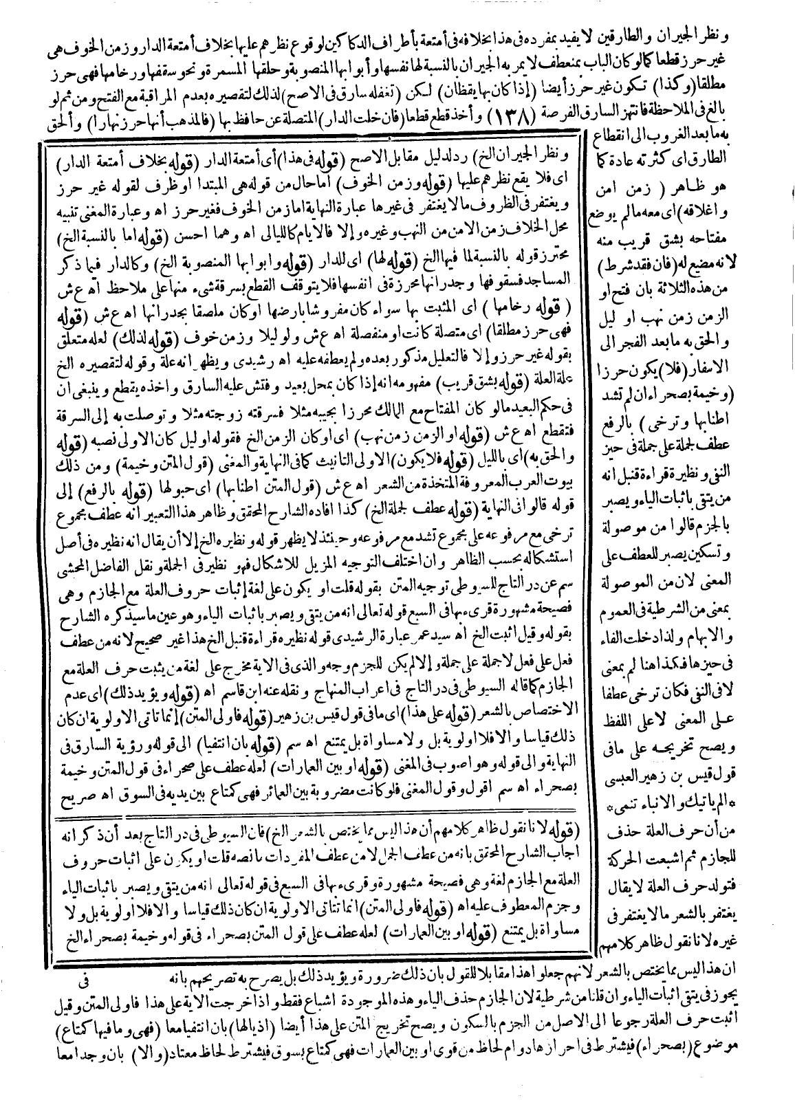 وَنَقَلَ الْفَاضِلُ الْمُحَشِّي سم عَنْ دُرِّ التَّاجِ لِلسُّيُوطِيِّ تَوْجِيهَ الْمَتْنِ بِقَوْلِهِ قُلْت أَوْ يَكُونُ عَلَى لُغَةِ إثْبَاتِ حُرُوفِ الْعِلَّةِ مَعَ الْجَازِمِ وَهِيَ فَصِيحَةٌ مَشْهُورَةٌ قُرِئَ بِهَا فِي السَّبْعِ قَوْله تَعَالَى {إِنَّهُ مَنْ يَتَّقِ وَيَصْبِرْ} [يوسف: 90] بِإِثْبَاتِ الْيَاءِ وَهُوَ عَيْنُ مَا سَيَذْكُرُهُ الشَّارِحُ بِقَوْلِهِ وَقِيلَ أَثْبَتَ إلَخْ اهـ سَيِّدَ عُمَرَ عِبَارَةُ الرَّشِيدِيِّ قَوْلُهُ نَظِيرُهُ قِرَاءَةُ قُنْبُلٍ إلَخْ هَذَا غَيْرُ صَحِيحٍ؛ لِأَنَّهُ مِنْ عَطْفِ فِعْلٍ عَلَى فِعْلٍ لَا جُمْلَةٍ عَلَى جُمْلَةٍ وَإِلَّا لَمْ يَكُنْ لِلْجَزْمِ وَجْهٌ وَاَلَّذِي فِي الْآيَةِ مُخَرَّجٌ عَلَى لُغَةِ مَنْ يُثْبِتُ حَرْفَ الْعِلَّةِ مَعَ الْجَازِمِ كَمَا قَالَهُ السُّيُوطِيّ فِي دُرِّ التَّاجِ فِي إعْرَابِ الْمِنْهَاجِ وَنَقَلَهُ عَنْهُ ابْنُ قَاسِمٍ اهـ