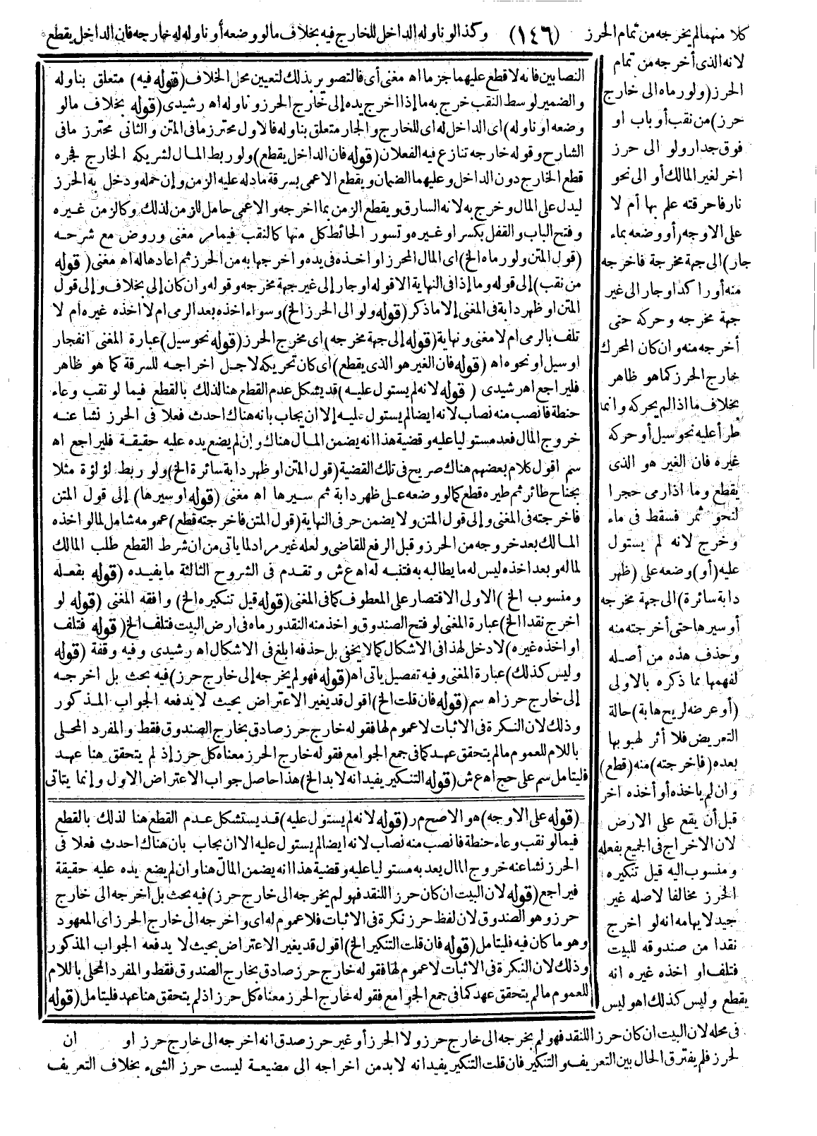 ـــــــــــــــــــــــــــــSقَوْلُهُ عَلَى الْأَوْجَهِ) هُوَ الْأَصَحُّ م ر (قَوْلُهُ لِأَنَّهُ لَمْ يَسْتَوْلِ عَلَيْهِ) قَدْ يُسْتَشْكَلُ عَدَمَ الْقَطْعِ هُنَا لِذَلِكَ بِالْقَطْعِ فِيمَا لَوْ نَقَبَ وِعَاءَ حِنْطَةٍ فَانْصَبَّ مِنْهُ نِصَابٌ لِأَنَّهُ أَيْضًا لَمْ يَسْتَوْلِ عَلَيْهِ إلَّا أَنْ يُجَابَ بِأَنَّ هُنَاكَ أَحْدَثَ فِعْلًا فِي الْحِرْزِ نَشَأَ عَنْهُ خُرُوجُ الْمَالِ يُعَدُّ بِهِ مُسْتَوْلِيًا عَلَيْهِ وَقَضِيَّةُ هَذَا أَنَّهُ يَضْمَنُ الْمَالَ هُنَا وَإِنْ لَمْ يَضَعْ يَدَهُ عَلَيْهِ حَقِيقَةً فَيُرَاجَعْ (قَوْلُهُ لِأَنَّ الْبَيْتَ إنْ كَانَ حِرْزًا لِلنَّقْدِ فَهُوَ لَمْ يُخْرِجْهُ إلَى خَارِجِ حِرْزٍ) فِيهِ بَحْثٌ بَلْ أَخْرَجَهُ إلَى خَارِجِ حِرْزِ وَهُوَ الصُّنْدُوقُ لِأَنَّ لَفْظَ حِرْزٍ نَكِرَةٌ فِي الْإِثْبَاتِ فَلَا عُمُومَ لَهُ أَيْ وَأَخْرَجَهُ إلَى خَارِجِ الْحِرْزِ أَيْ الْمَعْهُودِ وَهُوَ مَا كَانَ فِيهِ فَلْيُتَأَمَّلْ (قَوْلُهُ فَإِنْ قُلْت التَّنْكِيرُ إلَخْ) أَقُولُ قَدْ يُغَيَّرُ الِاعْتِرَاضُ بِحَيْثُ لَا يَدْفَعُهُ الْجَوَابُ الْمَذْكُورُ وَذَلِكَ لِأَنَّ النَّكِرَةَ فِي الْإِثْبَاتِ لَا عُمُومَ لَهَا فَقَوْلُهُ خَارِجِ حِرْزٍ صَادِقٌ بِخَارِجِ الصُّنْدُوقِ فَقَطْ وَالْمُفْرَدُ الْمُحَلَّى بِاللَّامِ لِلْعُمُومِ مَا لَمْ يَتَحَقَّقْ عَهْدٌ كَمَا فِي جَمْعِ الْجَوَامِعِ فَقَوْلُهُ خَارِجُ الْحِرْزِ مَعْنَاهُ كُلُّ حِرْزٍ إذْ لَمْ يَتَحَقَّقْ هُنَا عَهْدٌ فَلْيُتَأَمَّلْ.