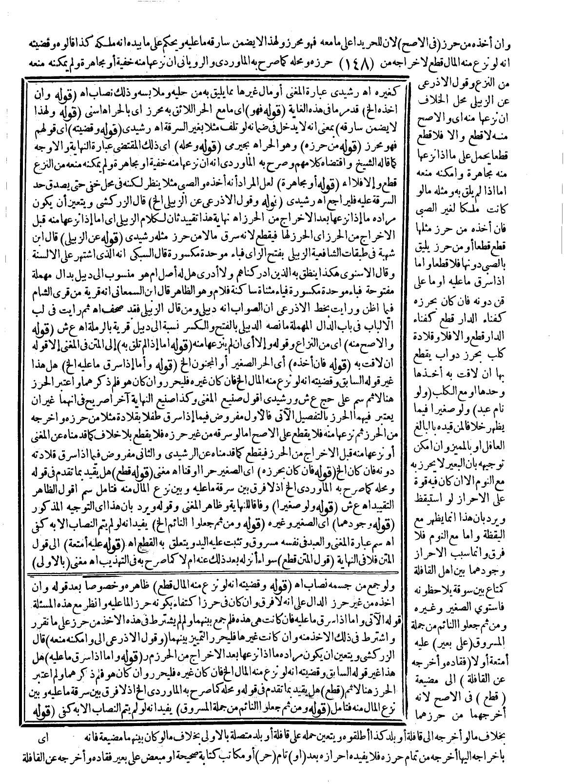 (قَوْلُهُ أَوْ مُجَاهَرَةً) لَعَلَّ الْمُرَادَ أَنَّهُ أَخَذَهُ وَالصَّبِيُّ مَثَلًا يَنْظُرُ لَكِنَّهُ فِي مَحَلٍّ خَفِيٍّ حَتَّى يَصْدُقَ حَدُّ السَّرِقَةِ عَلَيْهِ فَلْيُرَاجَعْ اهـ رَشِيدِيٌّ (قَوْلُهُ وَقَوْلُ الْأَذْرَعِيِّ عَنْ الزَّبِيلِيِّ إلَخْ) قَالَ الزَّرْكَشِيُّ وَيَتَعَيَّنُ أَنْ يَكُونَ مُرَادُهُ مَا إذَا نَزَعَهَا بَعْدَ الْإِخْرَاجِ مِنْ الْحِرْزِ اهـ نِهَايَةٌ هَذَا تَقْيِيدٌ ثَانٍ لِكَلَامِ الزَّبِيلِيِّ أَيْ: أَمَّا إذَا نَزَعَهَا مِنْهُ قَبْلَ الْإِخْرَاجِ مِنْ الْحِرْزِ أَيْ: الْحِرْزِ لَهَا فَيُقْطَعُ؛ لِأَنَّهُ سَرَقَ مَالًا مِنْ حِرْزِ مِثْلِهِ رَشِيدِيٌّ (قَوْلُهُ عَنْ الزَّبِيلِيِّ) قَالَ ابْنُ شُهْبَةَ فِي طَبَقَاتِ الشَّافِعِيَّةِ الزَّبِيلِيُّ بِفَتْحِ الزَّايِ فَبَاءٍ مُوَحَّدَةٍ مَكْسُورَةٍ قَالَ السُّبْكِيُّ إنَّهُ الَّذِي اشْتَهَرَ عَلَى الْأَلْسِنَةِ وَقَالَ الْإِسْنَوِيُّ هَكَذَا يُنْطَقُ بِهِ الَّذِينَ أَدْرَكْنَاهُمْ وَلَا أَدْرِي هَلْ لَهُ أَصْلٌ أَمْ هُوَ مَنْسُوبٌ إلَى دَبِيلٍ بِدَالٍ مُهْمَلَةٍ مَفْتُوحَةٍ فَبَاءٍ مُوَحَّدَةٍ مَكْسُورَةٍ فَيَاءٍ مُثَنَّاةٍ سَاكِنَةٍ فَلَامٍ وَهُوَ الظَّاهِرُ قَالَ ابْنُ السَّمْعَانِيُّ إنَّهُ قَرْيَةٌ مِنْ قُرَى الشَّامِ فِيمَا أَظُنُّ وَرَأَيْت بِخَطِّ الْأَذْرَعِيِّ أَنَّ الصَّوَابَ أَنَّهُ دَبِيلِيٌّ وَمَنْ قَالَ الزَّبِيلِيُّ فَقَدْ صَحَّفَ انْتَهَى ثُمَّ رَأَيْت فِي لُبِّ الْأَلْبَابِ فِي بَابِ الدَّالِ الْمُهْمَلَةِ مَا نَصُّهُ الدَّبِيلِيُّ بِالْفَتْحِ وَالْكَسْرِ نِسْبَةً إلَى دَبِيلٍ قَرْيَةٍ بِالرَّمْلَةِ انْتَهَى اهـ ع ش.