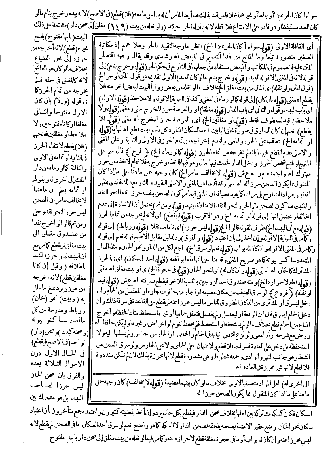 (فَرْعٌ) قَالَ سم عَلَى الْمَنْهَجِ لَوْ فَتَحَ شَخْصٌ الْحِرْزَ وَدَخَلَ الدَّارَ فَحَدَثَ فِيهَا مَالٌ وَهُوَ فِيهَا فَأَخَذَهُ وَخَرَجَ بِهِ فَلَا قَطْعَ لِأَخْذِهِ مِنْ حِرْزٍ مَهْتُوكٍ انْتَهَى وَاعْتَمَدَهُ م ر اهـ ع ش (قَوْلُهُ لَا يُخَالِفُ مَا مَرَّ إلَخْ) كَانَ وَجْهُهُ حَمْلُ مَا هُنَا عَلَى مَا إذَا كَانَ الْمَنْقُولُ مِمَّا يَكُونُ الصَّحْنُ حِرْزًا لَهُ اهـ سم وَقَدْ قَدَّمْنَا عَنْ الْمُغْنِي وَالْأَسْنَى التَّقْيِيدَ بِذَلِكَ وَمَعَ ذَلِكَ فَاَلَّذِي يَظْهَرُ أَنَّهُ لَيْسَ مُرَادًا لِلشَّارِحِ بَلْ مُرَادُهُ كَمَا يُفِيدُهُ سِيَاقُهُ أَنَّ الْمَنْفِيَّ فِيمَا مَرَّ كَوْنُ الصَّحْنِ بِنَفْسِهِ حِرْزًا تَامًّا لِنَحْوِ النَّقْدِ وَالْمُثْبَتَ هُنَا كَوْنُ الصَّحْنِ مُتِمَّ الْحِرْزِ لِنَحْوِ النَّقْدِ فَلَا مُنَافَاةَ بَيْنَهُمَا (قَوْلُهُ وَمِنْ ثَمَّ) يُحْتَمَلُ أَنَّ الْإِشَارَةَ إلَى عَدَمِ الْمُخَالَفَةِ وَيُحْتَمَلُ أَنَّهَا إلَى قَوْلِهِ أَوْ تَمَامِهِ إلَخْ وَهُوَ الْأَقْرَبُ (قَوْلُهُ لَمْ يُقْطَعْ) أَيْ:؛ لِأَنَّهُ لَمْ يُخْرِجْهُ مِنْ تَمَامِ الْحِرْزِ (قَوْلُهُ مَعَ أَنَّ الْبَيْتَ إلَخْ) ظَرْفٌ لِقَوْلِهِ قَالُوا إلَخْ (قَوْلُهُ لَيْسَ حِرْزًا) أَيْ: تَامًّا مُسْتَقِلًّا (قَوْلُهُ وَرِبَاطٌ) إلَى قَوْلِهِ وَكَمَا مَرَّ فِي النِّهَايَةِ إلَّا قَوْلَهُ وَإِنْ أَخَذَ إلَى بِأَنَّ اعْتِيَادَ (قَوْلُهُ وَالْفَرْقُ) رَدٌّ لِدَلِيلِ مُقَابِلِ الْأَصَحِّ قَوْلُهُ نَعَمْ إلَى قَوْلِهِ وَكَمَا مَرَّ فِي الْمُغْنِي إلَّا قَوْلَهُ وَإِنْ كَانَ لَهُ بَوَّابٌ (قَوْلُهُ نَعَمْ لَوْ سَرَقَ إلَخْ) رَاجِعٌ لِكُلٍّ مِنْ الدَّارِ وَنَحْوِ الْخَانِ وَمِثْلُهُ الدَّارُ الْمُتَعَدِّدُ سَاكَنُوا بُيُوتِهِ كَمَا هُوَ صَرِيحُ الْمُغْنِي وَقَدَّمْنَا عَنْ النِّهَايَةِ مَا يُوَافِقُهُ.