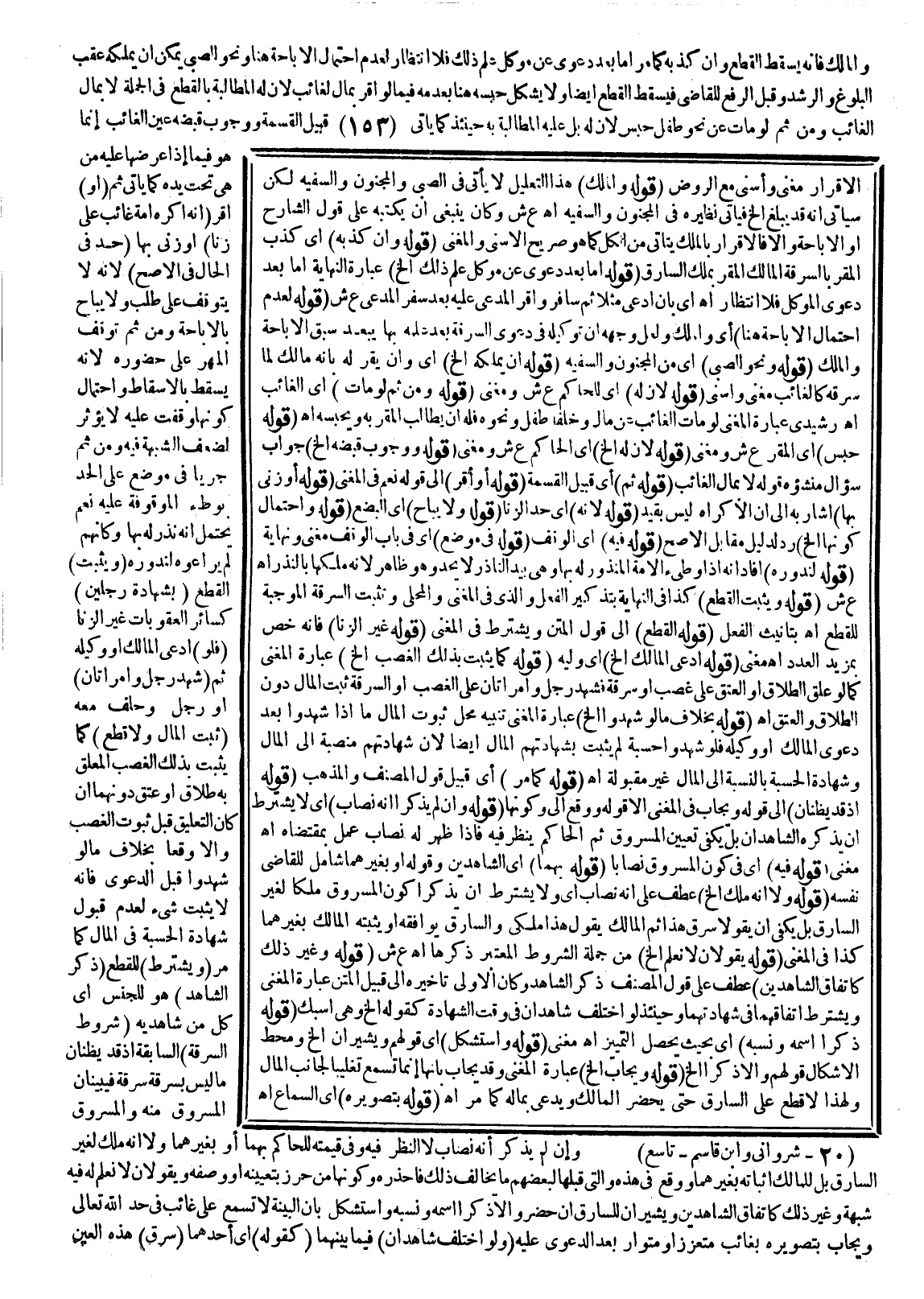 (وَيَثْبُتُ) الْقَطْعُ (بِشَهَادَةِ رَجُلَيْنِ) كَسَائِرِ الْعُقُوبَاتِ غَيْرِ الزِّنَا (فَلَوْ) ادَّعَى الْمَالِكُ أَوْ وَكِيلُهُ ثُمَّ (شَهِدَ رَجُلٌ وَامْرَأَتَانِ) أَوْ رَجُلٌ وَحَلَفَ مَعَهُ (ثَبَتَ الْمَالُ وَلَا قَطْعَ) كَمَا يَثْبُتُ بِذَلِكَ الْغَصْبُ الْمُعَلَّقُ بِهِ طَلَاقٌ أَوْ عِتْقٌ دُونَهُمَا إنْ كَانَ التَّعْلِيقُ قَبْلَ ثُبُوتِ الْغَصْبِ وَإِلَّا وَقَعَا بِخِلَافِ مَا لَوْ شَهِدُوا قَبْلَ الدَّعْوَى فَإِنَّهُ لَا يَثْبُتُ شَيْءٌ لِعَدَمِ قَبُولِ شَهَادَةِ الْحِسْبَةِ فِي الْمَالِ كَمَا مَرَّ. (وَيُشْتَرَطُ) لِلْقَطْعِ (ذِكْرُ الشَّاهِدِ) هُوَ لِلْجِنْسِ أَيْ كُلِّ مَنْ شَاهِدَيْهِ (شُرُوطَ السَّرِقَةِ) السَّابِقَةِ إذْ قَدْ يَظُنَّانِ مَا لَيْسَ بِسَرِقَةٍ سَرِقَةً فَيُبَيِّنَانِ الْمَسْرُوقَ مِنْهُ وَالْمَسْرُوقَ وَإِنْ لَمْ يَذْكُرَا أَنَّهُ نِصَابٌ لِأَنَّ النَّظَرَ فِيهِ وَفِي قِيمَتِهِ لِلْحَاكِمِ بِهِمَا أَوْ بِغَيْرِهِمَا، وَلَا أَنَّهُ مِلْكٌ لِغَيْرِ السَّارِقِ بَلْ لِلْمَالِكِ إثْبَاتُهُ بِغَيْرِهِمَا، وَوَقَعَ فِي هَذِهِ وَاَلَّتِي قَبْلَهَا لِبَعْضِهِمْ مَا يُخَالِفُ ذَلِكَ فَاحْذَرْهُ وَكَوْنُهَا مِنْ حِرْزٍ بِتَعْيِينِهِ أَوْ وَصْفِهِ وَيَقُولَانِ لَا نَعْلَمُ لَهُ فِيهِ شُبْهَةً وَغَيْرَ ذَلِكَ كَاتِّفَاقِ الشَّاهِدَيْنِ وَيُشِيرَانِ لِلسَّارِقِ إنْ حَضَرَ وَإِلَّا ذَكَرَا اسْمَهُ وَنَسَبَهُ وَاسْتُشْكِلَ بِأَنَّ الْبَيِّنَةَ لَا تُسْمَعُ عَلَى غَائِبٍ فِي حَدِّ اللَّهِ تَعَالَى وَيُجَابُ بِتَصْوِيرِهِ بِغَائِبٍ مُتَعَذِّرٍ أَوْ مُتَوَارٍ بَعْدَ الدَّعْوَى عَلَيْهِ.