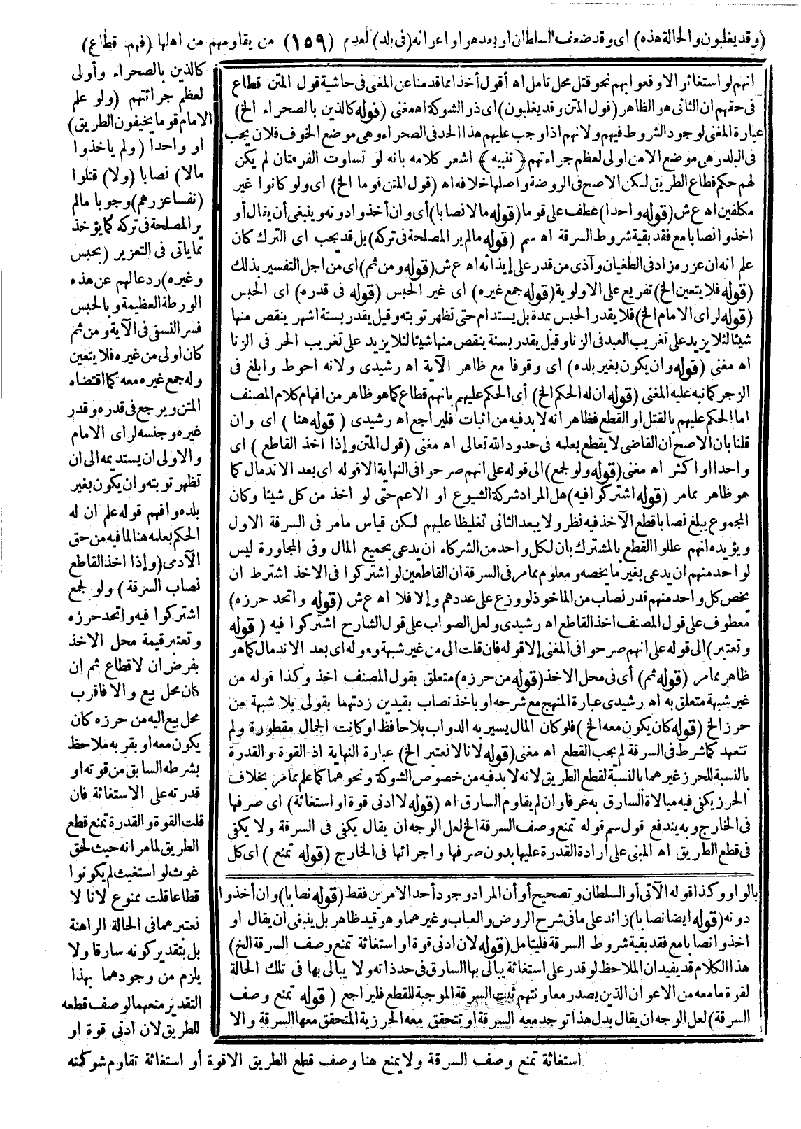 ـــــــــــــــــــــــــــــQأَنَّهُمْ لَوْ اسْتَغَاثُوا لَأَوْقَعُوا بِهِمْ نَحْوَ قَتْلٍ مَحَلُّ تَأَمُّلٍ اهـ أَقُولُ أَخْذًا مِمَّا قَدَّمْنَا عَنْ الْمُغْنِي فِي حَاشِيَةِ قَوْلِ الْمَتْنِ قُطَّاعٌ فِي حَقِّهِمْ أَنَّ الثَّانِيَ هُوَ الظَّاهِرُ (قَوْلُ الْمَتْنِ وَقَدْ يَغْلِبُونَ) أَيْ: ذُو الشَّوْكَةِ اهـ مُغْنِي (قَوْلُهُ كَاَلَّذِينَ بِالصَّحْرَاءِ إلَخْ) عِبَارَةُ الْمُغْنِي لِوُجُودِ الشُّرُوطِ فِيهِمْ وَلِأَنَّهُمْ إذَا وَجَبَ عَلَيْهِمْ هَذَا الْحَدُّ فِي الصَّحْرَاءِ وَهِيَ مَوْضِعُ الْخَوْفِ فَلَأَنْ يَجِبَ فِي الْبَلَدِ وَهِيَ مَوْضِعُ الْأَمْنِ أَوْلَى لِعِظَمِ جَرَاءَتِهِمْ.