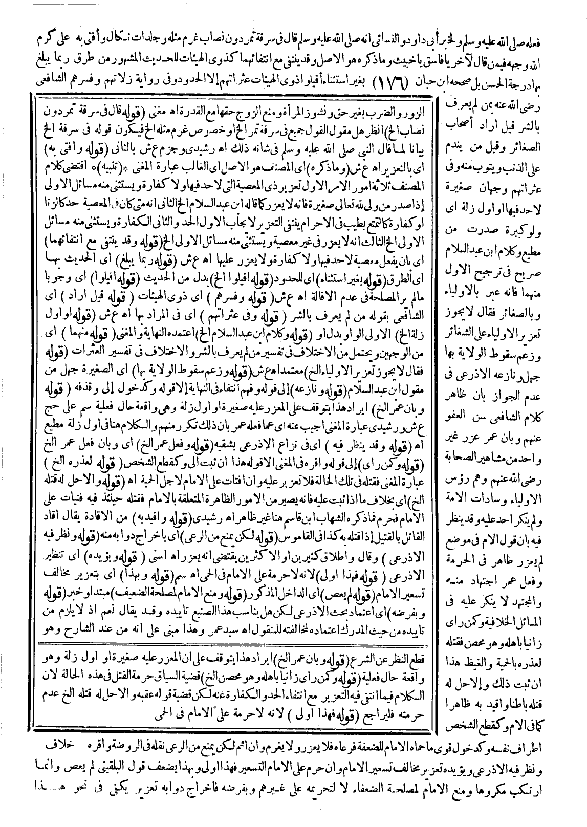(قَوْلُهُ وَقَدْ يُنْظَرُ فِيهِ) أَيْ فِي نِزَاعِ الْأَذْرَعِيِّ بِشِقَّيْهِ (قَوْلُهُ وَفِعْلُ عُمَرَ إلَخْ) أَيْ: وَبِأَنَّ فِعْلَ عُمَرَ إلَخْ (قَوْلُهُ وَكَمَنْ رَأَى) إلَى قَوْلِهِ وَأَقَرَّهُ فِي الْمُغْنِي إلَّا قَوْلَهُ هَذَا إنْ ثَبَتَ إلَى وَكَقَطْعِ الشَّخْصِ (قَوْلُهُ لِعُذْرِهِ إلَخْ) عِبَارَةُ الْمُغْنِي فَقَتَلَهُ فِي تِلْكَ الْحَالِ فَلَا تَعْزِيرَ عَلَيْهِ وَإِنْ افْتَاتَ عَلَى الْإِمَامِ لِأَجْلِ الْحَمِيَّةِ اهـ.