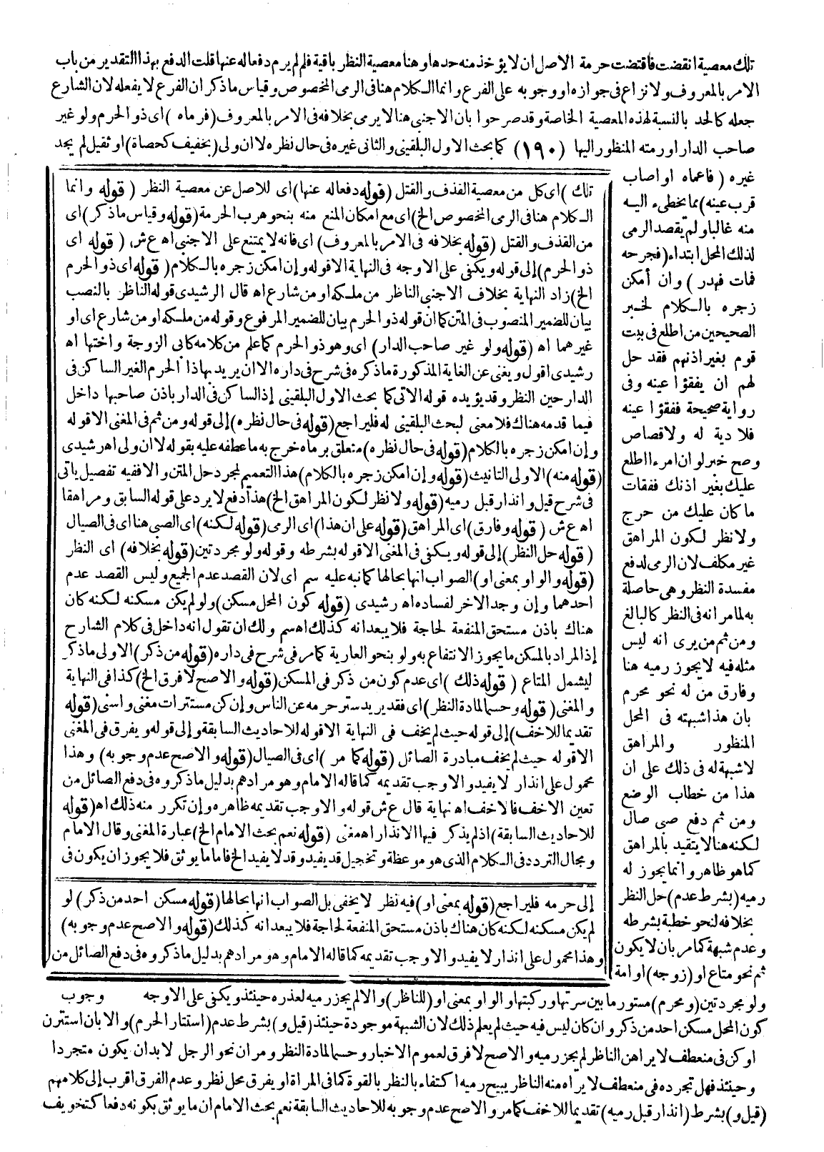 (وَمَحْرَمٍ) مَسْتُورٍ مَا بَيْنَ سُرَّتِهَا وَرُكْبَتِهَا وَالْوَاوُ بِمَعْنَى أَوْ (لِلنَّاظِرِ) ، وَإِلَّا لَمْ يَحُزْ رَمْيُهُ لِعُذْرِهِ حِينَئِذٍ، وَيَكْفِي عَلَى الْأَوْجَهِ كَوْنُ الْمَحَلِّ مَسْكَنَ أَحَدِ مَنْ ذُكِرَ، وَإِنْ كَانَ لَيْسَ فِيهِ حَيْثُ لَمْ يَعْلَمْ ذَلِكَ؛ لِأَنَّ الشُّبْهَةَ مَوْجُودَةٌ حِينَئِذٍ. (قِيلَ وَ) بِشَرْطِ عَدَمِ (اسْتِتَارِ الْحَرَمِ) ، وَإِلَّا بِأَنْ اسْتَتَرْنَ أَوْ كُنَّ فِي مُنْعَطَفٍ لَا يَرَاهُنَّ النَّاظِرُ لَمْ يَجُزْ رَمْيُهُ، وَالْأَصَحُّ لَا فَرْقَ لِعُمُومِ الْأَخْبَارِ وَحَسْمًا لِمَادَّةِ النَّظَرِ، وَمَرَّ أَنَّ نَحْوَ الرَّجُلِ لَا بُدَّ أَنْ يَكُونَ مُتَجَرِّدًا وَحِينَئِذٍ فَهَلْ تَجَرُّدُهُ فِي مُنْعَطَفٍ لَا يَرَاهُ مِنْهُ النَّاظِرُ يُبِيحُ رَمْيَهُ اكْتِفَاءً بِالنَّظَرِ بِالْقُوَّةِ كَمَا فِي الْمَرْأَةِ أَوْ يُفَرَّقُ؟ مَحَلُّ نَظَرٍ وَعَدَمُ الْفَرْقِ أَقْرَبُ إلَى كَلَامِهِمْ (قِيلَ وَ) بِشَرْطِ (إنْذَارٍ قَبْلَ رَمْيِهِ) تَقْدِيمًا لِلْأَخَفِّ كَمَا مَرَّ وَالْأَصَحُّ عَدَمُ وُجُوبِهِ لِلْأَحَادِيثِ السَّابِقَةِ، نَعَمْ بَحَثَ الْإِمَامُ أَنَّ مَا يُوثَقُ بِكَوْنِهِ دَافِعًا كَتَخْوِيفٍ