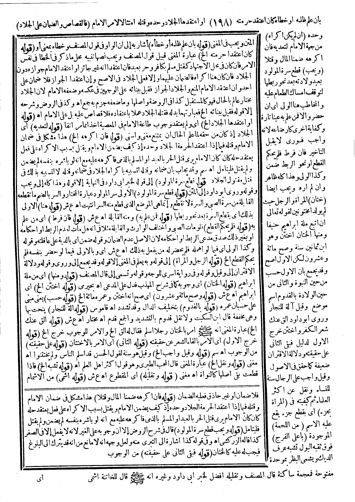 . وَيَجِبُ أَيْضًا (خِتَانُ) الْمَرْأَةِ وَالرَّجُلِ حَيْثُ لَمْ يُولَدَا مَخْتُونَيْنِ لِقَوْلِهِ تَعَالَى {أَنِ اتَّبِعْ مِلَّةَ إِبْرَاهِيمَ حَنِيفًا} [النحل: 123] . وَمِنْهَا الْخِتَانُ: اُخْتُتِنَ وَهُوَ ابْنُ ثَمَانِينَ سَنَةً. وَصَحَّ مِائَةٌ وَعِشْرُونَ لَكِنَّ الْأَوَّلَ أَصَحُّ. وَقَدْ يُجْمَعُ بِأَنَّ الْأَوَّلَ حُسِبَ مِنْ حِينِ النُّبُوَّةِ، وَالثَّانِي مِنْ حِينِ الْوِلَادَةِ. بِالْقَدُومِ اسْمُ مَوْضِعٍ وَقِيلَ: آلَةٌ لِلنَّجَّارِ، وَرَوَى أَبُو دَاوُد «أَلْقِ عَنْك شَعْرَ الْكُفْرِ وَاخْتَتِنْ» ، خَرَجَ الْأَوَّلُ لِدَلِيلٍ فَبَقِيَ الثَّانِي عَلَى حَقِيقَتِهِ وَدَلَالَةُ الِاقْتِرَانِ ضَعِيفَةٌ كَمَا حَقَّقَ فِي الْأُصُولِ، وَقِيلَ: وَاجِبٌ عَلَى الرِّجَالِ سُنَّةٌ لِلنِّسَاءِ، وَنُقِلَ عَنْ أَكْثَرِ الْعُلَمَاءِ