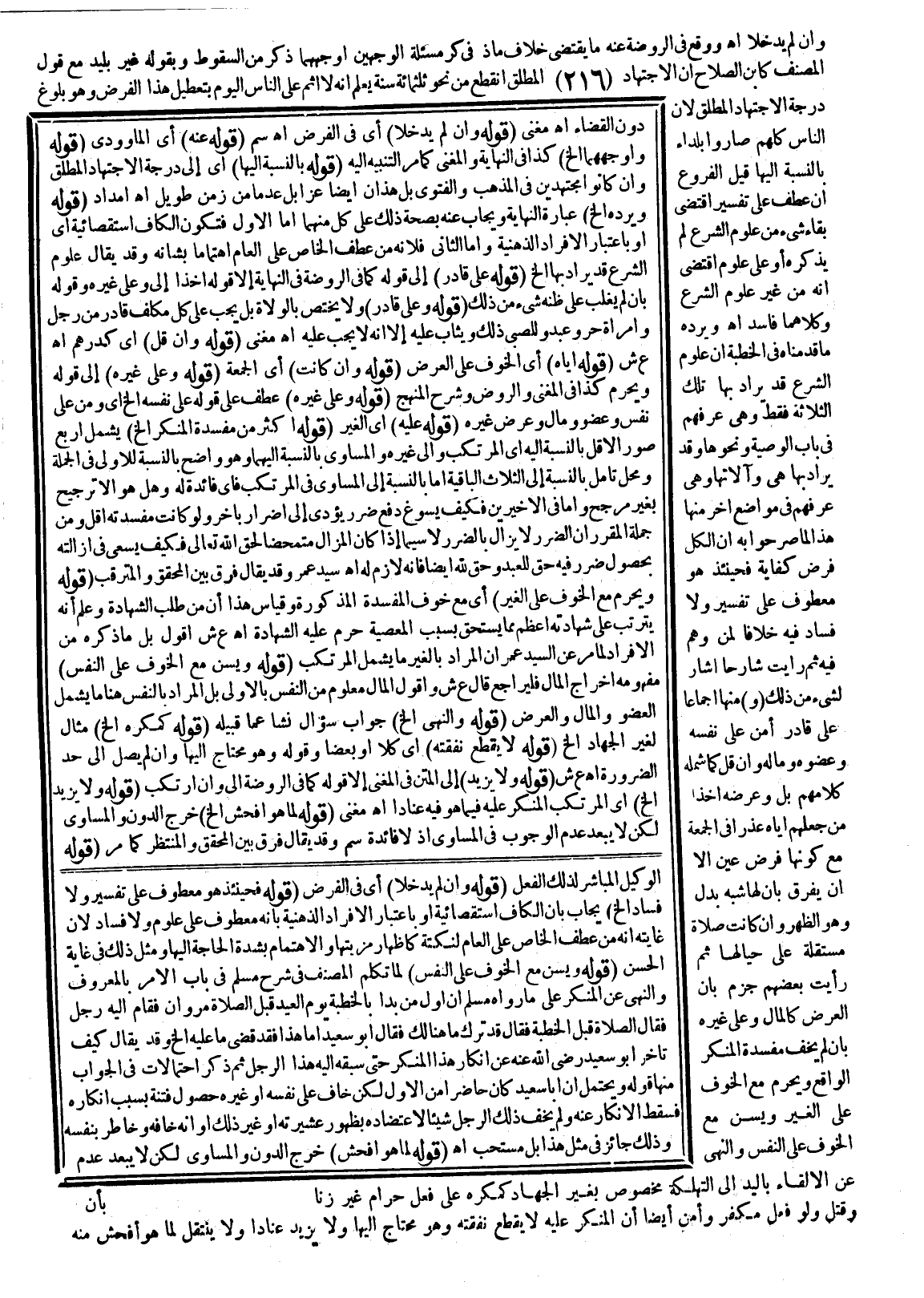 وَإِنْ لَمْ يَدْخُلَا اهـ وَوَقَعَ فِي الرَّوْضَةِ عَنْهُ مَا يَقْتَضِي خِلَافَ مَا ذُكِرَ فِي مَسْأَلَةِ الْوَجْهَيْنِ وَأَوْجَهُهُمَا مَا ذُكِرَ مِنْ السُّقُوطِ وَبِقَوْلِهِ: غَيْرِ بَلِيدٍ مَعَ قَوْلِ الْمُصَنِّفِ كَابْنِ الصَّلَاحِ: أَنَّ الِاجْتِهَادَ الْمُطْلَقَ انْقَطَعَ مِنْ نَحْوِ ثَلَثِمِائَةِ سَنَةٍ، يُعْلَمُ أَنَّهُ لَا إثْمَ عَلَى النَّاسِ الْيَوْمَ بِتَعْطِيلِ هَذَا الْفَرْضِ، وَهُوَ بُلُوغُ دَرَجَةِ الِاجْتِهَادِ الْمُطْلَقِ؛ لِأَنَّ النَّاسَ كُلَّهُمْ صَارُوا بُلَدَاءَ بِالنِّسْبَةِ إلَيْهَا قَبْلَ الْفُرُوعِ إنْ عُطِفَ عَلَى تَفْسِيرٍ اقْتَضَى بَقَاءَ شَيْءٍ مِنْ عُلُومِ الشَّرْعِ لَمْ يَذْكُرْهُ أَوْ عَلَى عُلُومٍ اقْتَضَى أَنَّهُ مِنْ غَيْرِ عُلُومِ الشَّرْعِ وَكِلَاهُمَا فَاسِدٌ اهـ. وَيَرُدُّهُ مَا قَدَّمْنَاهُ فِي الْخُطْبَةِ أَنَّ عُلُومَ الشَّرْعِ قَدْ يُرَادُ بِهَا تِلْكَ الثَّلَاثَةُ فَقَطْ، وَهِيَ عُرْفُهُمْ فِي بَابِ الْوَصِيَّةِ وَنَحْوِهَا، وَقَدْ يُرَادُ بِهَا هِيَ وَآلَاتُهَا وَهِيَ عُرْفُهُمْ فِي مَوَاضِعَ أُخَرَ مِنْهَا هَذَا؛ لِمَا صَرَّحُوا بِهِ أَنَّ الْكُلَّ فَرْضُ كِفَايَةٍ، فَحِينَئِذٍ هُوَ مَعْطُوفٌ عَلَى تَفْسِيرٍ، وَلَا فَسَادَ فِيهِ خِلَافًا لِمَنْ وَهَمَ فِيهِ، ثُمَّ رَأَيْت شَارِحًا أَشَارَ لِشَيْءٍ مِنْ ذَلِكَ