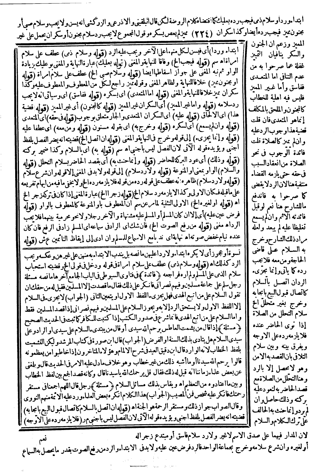 رَجُلٌ قَالَ: اللَّهُمَّ اجْمَعْنَا فِي مُسْتَقَرِّ رَحْمَتِك فَأَنْكَرَ عَلَيْهِ شَخْصٌ فَمَنْ الْمُصِيبُ؟ الْجَوَابُ هَذَا الْكَلَامُ أَنْكَرَهُ بَعْضُ الْعُلَمَاءِ وَرَدَّ عَلَيْهِ الْأَئِمَّةُ مِنْهُمْ النَّوَوِيُّ وَقَالَ: الصَّوَابُ جَوَازُ ذَلِكَ وَمُسْتَقَرُّ الرَّحْمَةِ هُوَ الْجَنَّةُ. اهـ. (قَوْلُهُ: إنْ اتَّصَلَ بِالسَّلَامِ كَاتِّصَالِ قَبُولِ الْبَيْعِ بِإِيجَابِهِ) قَضِيَّتُهُ أَنَّهُ يَضُرُّ الْفَصْلُ بِلَفْظٍ أَجْنَبِيٍّ وَيُؤَيِّدُهُ قَوْلُهُ: الْآتِي؛ لِأَنَّ الْفَصْلَ لَيْسَ بِأَجْنَبِيٍّ م ر (قَوْلُهُ: فَلَا يَلْزَمُهُ رَدُّهُ عَلَى الْأَوْجَهِ)
