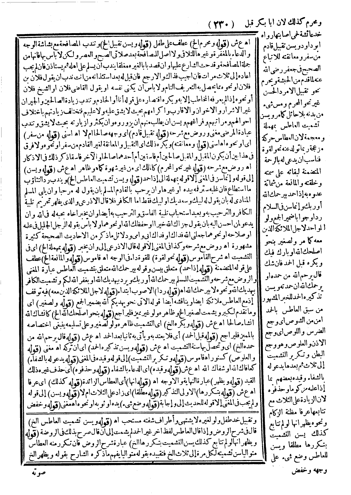 وَإِنَّمَا سُنَّ فِي السَّلَامِ رَدًّا وَجَوَابًا ضَمِيرُ الْجَمْعِ وَلَوْ لِلْوَاحِدِ لِأَجْلِ الْمَلَائِكَةِ الَّذِينَ مَعَهُ كَمَا مَرَّ، وَلِصَغِيرٍ بِنَحْوِ: أَصْلَحَك اللَّهُ، أَوْ: بَارَكَ فِيك، وَيُكْرَهُ قَبْلَ الْحَمْدِ، فَإِنْ شَكَّ قَالَ: يَرْحَمُ اللَّهُ مَنْ حَمِدَهُ أَوْ يَرْحَمُك اللَّهُ إنْ حَمِدْته، وَيُسَنُّ تَذْكِيرُهُ الْحَمْدَ لِلْخَبَرِ الْمَشْهُورِ «مَنْ سَبَقَ الْعَاطِسَ بِالْحَمْدِ أَمِنَ مِنْ الشَّوْصِ» أَيْ: وَجَعِ الضِّرْسِ وَاللَّوْصِ أَيْ: وَجَعِ الْأُذُنِ وَالْعِلَّوْصِ وَهُوَ وَجَعُ الْبَطْنِ، وَتَكْرِيرُ التَّشْمِيتِ إلَى ثَلَاثٍ ثُمَّ بَعْدَهَا يَدْعُو لَهُ بِالشِّفَاءِ، وَقَيَّدَهُ بَعْضُهُمْ بِمَا إذَا عَلِمَهُ مَزْكُومًا؛ وَحَذَفُوهُ لِأَنَّ الزِّيَادَةَ عَلَى الثَّلَاثِ مَعَ تَتَابُعِهَا عُرْفًا مَظِنَّةُ الزُّكَامِ وَنَحْوِهِ، يَظْهَرُ أَنَّهَا لَوْ لَمْ تُتَابَعْ كَذَلِكَ يُسَنُّ التَّشْمِيتُ بِتَكَرُّرِهَا مُطْلَقًا وَيُسَنُّ لِلْعَاطِسِ وَضْعُ شَيْءٍ عَلَى وَجْهِهِ وَخَفْضُ