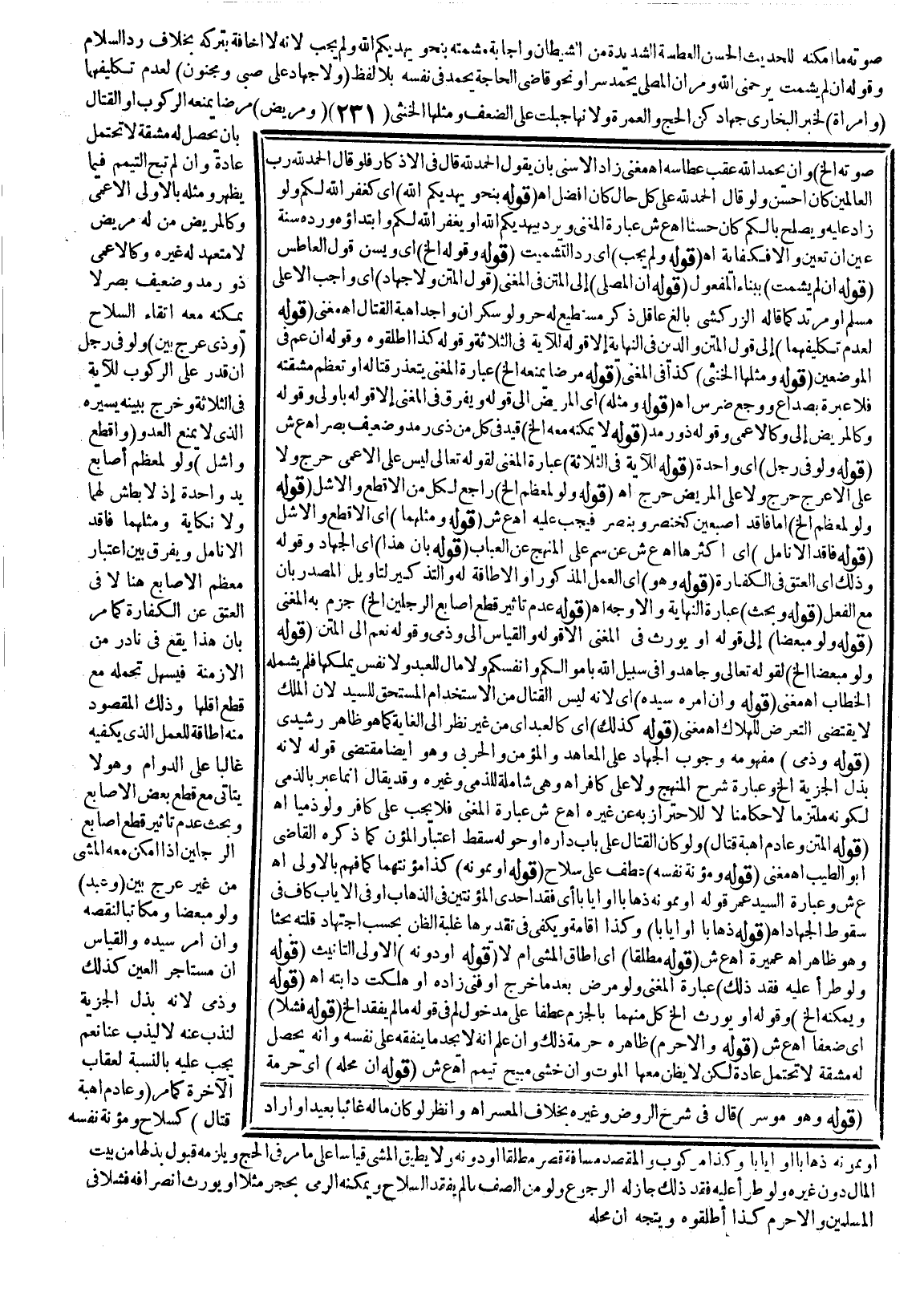 (وَلَا جِهَادَ عَلَى صَبِيٍّ وَمَجْنُونٍ) ؛ لِعَدَمِ تَكْلِيفِهِمَا، (وَامْرَأَةٍ) لِخَبَرِ الْبُخَارِيِّ: «جِهَادُكُنَّ الْحَجُّ وَالْعُمْرَةُ» ؛ وَلِأَنَّهَا جُبِلَتْ عَلَى الضَّعْفِ، وَمِثْلُهَا الْخُنْثَى، (وَمَرِيضٍ) مَرَضًا يَمْنَعُهُ الرُّكُوبَ أَوْ الْقِتَالَ بِأَنْ يَحْصُلَ لَهُ مَشَقَّةٌ لَا تُحْتَمَلُ عَادَةً، وَإِنْ لَمْ تُبِحْ التَّيَمُّمَ فِيمَا يَظْهَرُ، وَمِثْلُهُ بِالْأَوْلَى الْأَعْمَى وَكَالْمَرِيضِ مَنْ لَهُ مَرِيضٌ لَا مُتَعَهِّدَ لَهُ غَيْرُهُ، وَكَالْأَعْمَى ذُو رَمَدٍ وَضَعِيفُ بَصَرٍ لَا يُمْكِنُهُ مَعَهُ اتِّقَاءُ السِّلَاحِ. (وَذِي عَرَجٍ بَيِّنٍ) وَلَوْ فِي رَجُلٍ وَإِنْ قَدَرَ عَلَى الرُّكُوبِ لِلْآيَةِ فِي الثَّلَاثَةِ، وَخَرَجَ بِبَيِّنَةٍ يَسِيرَةٍ الَّذِي لَا يَمْنَعُ الْعَدُوَّ (وَأَقْطَع وَأَشَلَّ) وَلَوْ لِمُعْظَمِ أَصَابِعِ يَدٍ وَاحِدَةٍ؛ إذْ لَا بَطْشَ لَهُمَا وَلَا نِكَايَةَ، وَمِثْلُهُمَا فَاقِدُ الْأَنَامِلِ، وَيُفَرَّقُ بَيْنَ اعْتِبَارِ مُعْظَمِ الْأَصَابِعِ هُنَا لَا فِي الْعِتْقِ عَنْ الْكَفَّارَةِ كَمَا مَرَّ بِأَنَّ هَذَا يَقَعُ فِي نَادِرٍ مِنْ الْأَزْمِنَةِ، فَيَسْهُلُ تَحَمُّلُهُ مَعَ قَطْعِ أَقَلِّهَا، وَذَلِكَ الْمَقْصُودُ مِنْهُ إطَاقَتُهُ لِلْعَمَلِ الَّذِي يَكْفِيهِ غَالِبًا عَلَى الدَّوَامِ وَهُوَ لَا يَتَأَتَّى مَعَ قَطْعِ بَعْضِ الْأَصَابِعِ، وَبَحَثَ عَدَمَ تَأْثِيرِ قَطْعِ أَصَابِعِ الرِّجْلَيْنِ إذَا أَمْكَنَ مَعَهُ الْمَشْيُ مِنْ غَيْرِ عَرَجٍ بَيِّنٍ. (وَعَبْدٍ) وَلَوْ مُبَعَّضًا وَمُكَاتَبًا لِنَقْصِهِ، وَإِنْ أَمَرَهُ سَيِّدُهُ، وَالْقِيَاسُ أَنَّ مُسْتَأْجِرَ الْعَيْنِ كَذَلِكَ، وَذِمِّيٍّ؛ لِأَنَّهُ بَذَلَ الْجِزْيَةَ لِنَذُبَّ عَنْهُ لَا لِيَذُبَّ عَنَّا، نَعَمْ يَجِبُ عَلَيْهِ بِالنِّسْبَةِ لِعِقَابِ الْآخِرَةِ كَمَا مَرَّ، (وَعَادِمِ أُهْبَةِ قِتَالٍ) كَسِلَاحٍ وَمُؤْنَةِ نَفْسِهِ أَوْ مُمَوَّنِهِ ذَهَابًا أَوْ إيَابًا، وَكَذَا مَرْكُوبٌ. وَالْمَقْصِدُ مَسَافَةُ قَصْرٍ مُطْلَقًا أَوْ دُونَهُ وَلَا يُطِيقُ الْمَشْيَ قِيَاسًا عَلَى مَا مَرَّ فِي الْحَجِّ، وَيَلْزَمُهُ قَبُولُ بَذْلِهَا مِنْ بَيْتِ الْمَالِ دُونَ غَيْرِهِ، وَلَوْ طَرَأَ عَلَيْهِ فَقْدُ ذَلِكَ جَازَ لَهُ الرُّجُوعُ، وَلَوْ مِنْ الصَّفِّ مَا لَمْ يَفْقِدْ السِّلَاحَ وَيُمْكِنْهُ الرَّمْيُ بِحَجَرٍ مَثَلًا، أَوْ يُورِثُ انْصِرَافُهُ فَشَلًا فِي الْمُسْلِمِينَ وَإِلَّا حَرُمَ كَذَا أَطْلَقُوهُ، وَيُتَّجَهُ أَنَّ مَحَلَّهُ