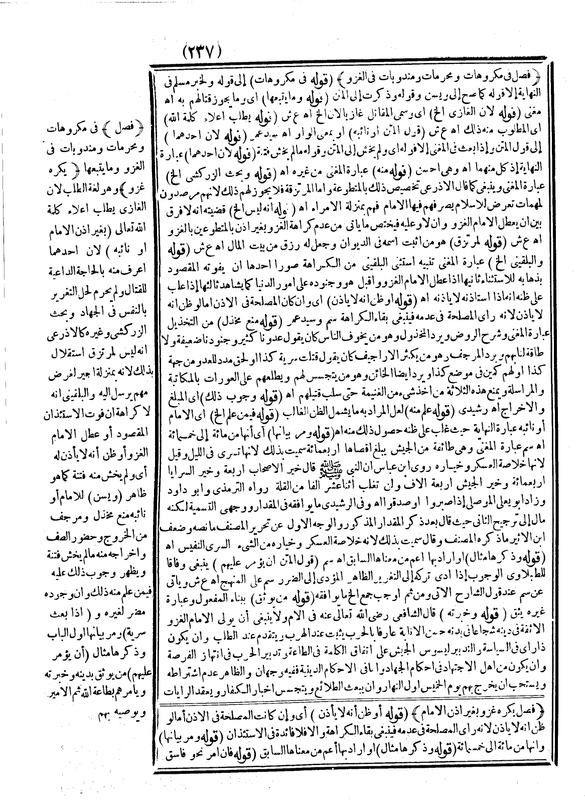 ـــــــــــــــــــــــــــــSفَصْلٌ يُكْرَهُ غَزْوٌ بِغَيْرِ إذْنِ الْإِمَامِ إلَخْ) .