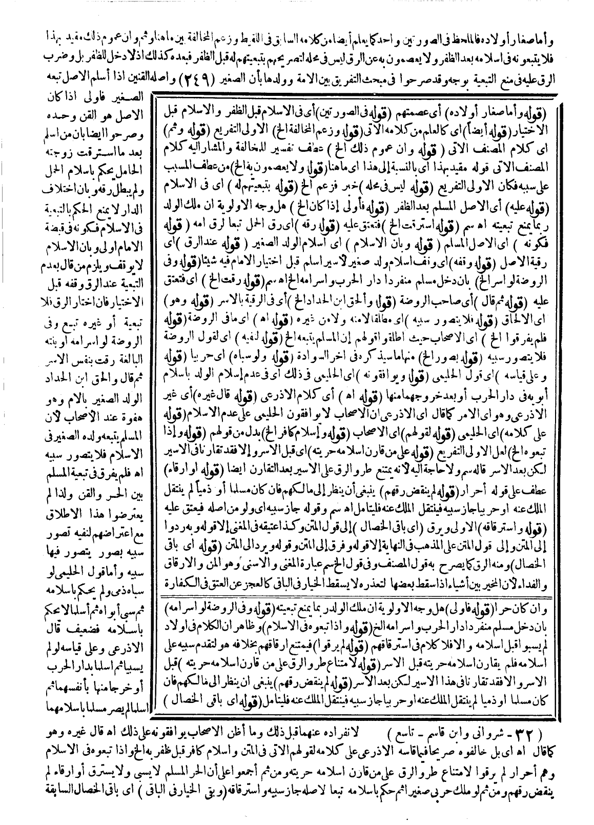 ـــــــــــــــــــــــــــــSوَإِنْ كَانَ حُرًّا. (قَوْلُهُ: فَأَوْلَى) هَلْ وَجْهُ الْأَوْلَوِيَّةِ أَنَّ مِلْكَ الْوَلَدِ رُبَّمَا يَمْنَعُ تَبَعِيَّتَهُ. (قَوْلُهُ: وَفِي الرَّوْضَةِ لَوْ أَسَرَ أُمَّهُ إلَخْ) بِأَنْ دَخَلَ مُسْلِمٌ مُنْفَرِدًا دَارَ الْحَرْبِ وَأَسَرَ أُمَّهُ إلَخْ. (قَوْلُهُ: وَإِذَا تَبِعُوهُ فِي الْإِسْلَامِ إلَخْ) وَظَاهِرٌ أَنَّ الْكَلَامَ فِي أَوْلَادٍ لَمْ يُسْبَوْا قَبْلَ إسْلَامِهِ وَإِلَّا فَلَا كَلَامَ فِي اسْتِرْقَاقِهِمْ. (قَوْلُهُ: لَمْ يُرَقُّوا) فَيَمْتَنِعُ إرْقَاقُهُمْ بِخِلَافِهِ هُوَ لِتَقَدُّمِ سَبَبِهِ عَلَى إسْلَامِهِ فَلَمْ يُقَارِنْ إسْلَامُهُ حُرِّيَّتَهُ قَبْلَ الْأَسْرِ. (قَوْلُهُ: لِامْتِنَاعِ طُرُوُّ الرِّقِّ عَلَى مَنْ فَارَقَ إسْلَامُهُ حُرِّيَّتَهُ) قَبْلَ الْأَسْرِ، وَإِلَّا فَقَدْ تَقَارَنَا فِي هَذَا الْأَسِيرِ لَكِنْ بَعْدَ الْأَسْرِ.