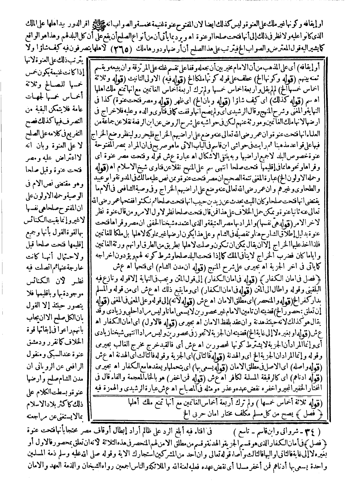 وَيُرَدُّ بِمَا يَأْتِي أَنَّ مِنْ أَنْوَاعِ الصُّلْحِ أَنْ يَقَعَ عَلَى أَنَّ كُلَّ الْبَلَدِ لَهُمْ وَهَذَا هُوَ الْوَاقِعُ كَمَا يُشِيرُ إلَيْهِ قَوْلُ الْمُعْتَرِضِ وَالصَّوَابُ إلَخْ فَيَتَرَتَّبُ عَلَى هَذَا الصُّلْحِ أَنَّ أَرْضَهَا وَدُورَهَا مِلْكٌ لِأَهْلِهَا يَتَصَرَّفُونَ فِيهِ كَيْفَ شَاءُوا وَلَا يَتَرَتَّبُ ذَلِكَ عَلَى الْعَنْوَةِ؛ لِأَنَّهَا إذَا كَانَتْ غَنِيمَةً يَكُونُ خُمُسُ خُمُسِهَا لِلْمَصَالِحِ وَثَلَاثَةُ أَخْمَاسِ خُمُسِهَا لِجِهَاتٍ عَامَّةٍ فَلَا يَتَمَكَّنُ الْبَقِيَّةُ مِنْ التَّصَرُّفِ فِيهَا كَذَلِكَ فَصَحَّ التَّفْرِيعُ فِي كَلَامِهِ عَلَى الصُّلْحِ لَا عَلَى الْعَنْوَةِ وَبَانَ أَنَّهُ لَا اعْتِرَاضَ عَلَيْهِ وَمِصْرُ فُتِحَتْ عَنْوَةً وَقِيلَ صُلْحًا وَهُوَ مُقْتَضَى نَصِّ الْأُمِّ فِي الْوَصِيَّةِ وَحَمَلَهُ الْأَوَّلُونَ عَلَى أَنَّ الْمَفْتُوحَ صُلْحًا هِيَ نَفْسُهَا لَا غَيْرُ، وَإِنَّمَا بَقِيَتْ الْكَنَائِسُ بِهَا لِقُوَّةِ الْقَوْلِ بِأَنَّهَا وَجَمِيعَ إقْلِيمِهَا فُتِحَتْ صُلْحًا قِيلَ وَلِاحْتِمَالِ أَنَّهَا كَانَتْ خَارِجَةً عَنْهَا، ثُمَّ اتَّصَلَتْ فِيهِ نَظَرٌ؛ لِأَنَّ الْكَنَائِسَ مَوْجُودَةٌ بِهَا وَبِإِقْلِيمِهَا فَلَا يُتَصَوَّرُ حِينَئِذٍ إلَّا الْقَوْلُ بِأَنَّ الْكُلَّ صُلْحٌ إلَّا أَنْ يُجَابَ بِأَنَّهُمْ رَاعَوْا فِي إبْقَائِهِمْ قُوَّةَ الْخِلَافِ كَمَا تَقَرَّرَ وَدِمَشْقُ عَنْوَةٌ عِنْدَ السُّبْكِيّ وَمَنْقُولُ الرَّافِعِيِّ عَنْ الرُّويَانِيِّ أَنَّ مُدُنَ الشَّامِ صُلْحٌ وَأَرْضُهَا عَنْوَةٌ وَبَسَطْت الْكَلَامَ عَلَى ذَلِكَ كَأَكْثَرِ بِلَادِ الْإِسْلَامِ بِمَا لَا يُسْتَغْنَى عَنْ مُرَاجَعَتِهِ فِي إفْتَاءٍ فِيهِ أَبْلَغُ الرَّدِّ عَلَى ظَالِمٍ أَرَادَ إبْطَالَ أَوْقَافِ مِصْرَ مُحْتَجًّا بِأَنَّهَا فُتِحَتْ عَنْوَةً