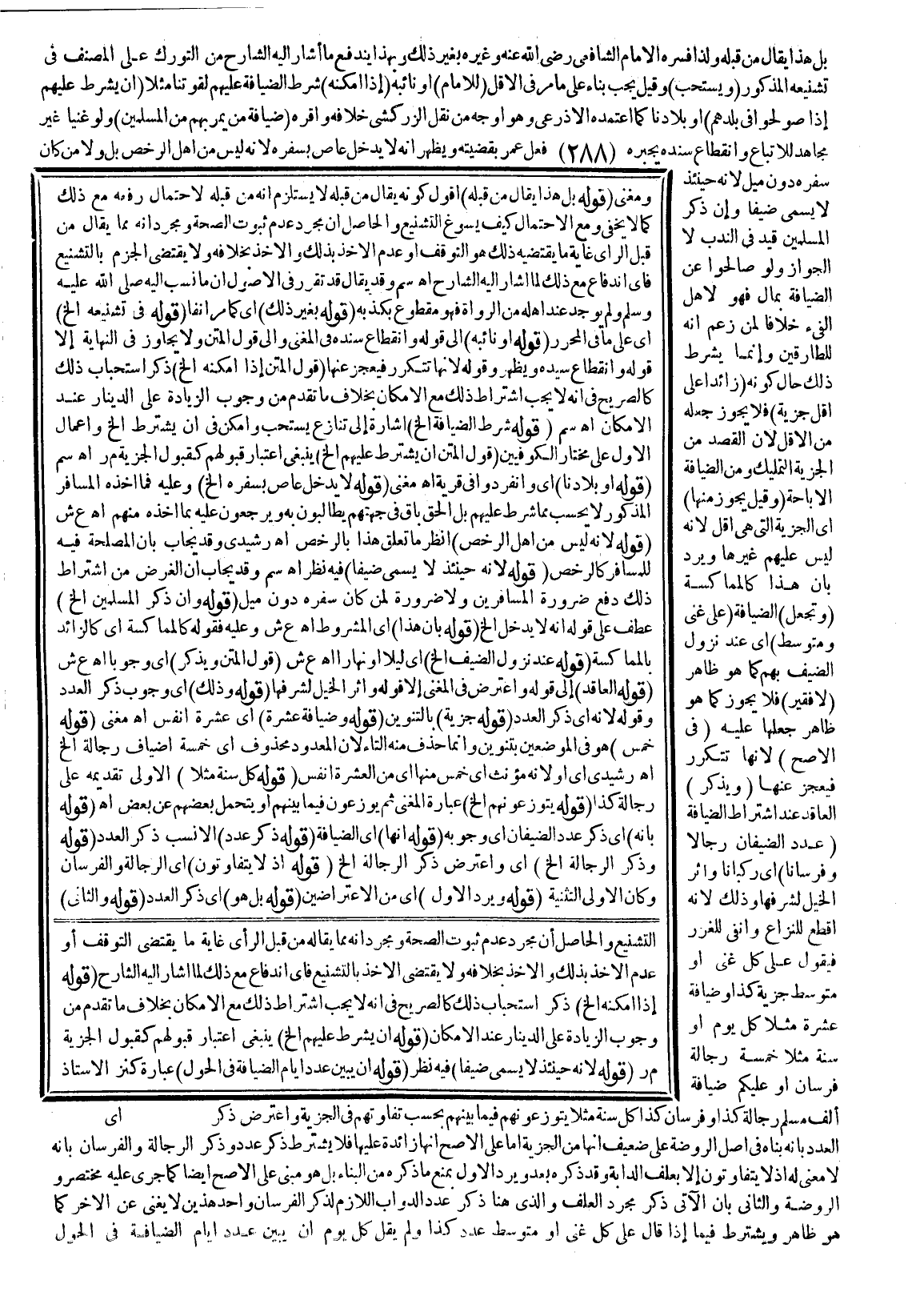 (قَوْلُهُ: شَرْطُ الضِّيَافَةِ إلَخْ) إشَارَةٌ إلَى تَنَازُعٍ يُسْتَحَبُّ وَأَمْكَنَ فِي أَنْ يُشْتَرَطَ إلَخْ وَإِعْمَالُ الْأَوَّلِ عَلَى مُخْتَارِ الْكُوفِيِّينَ (قَوْلُ الْمَتْنِ أَنْ يَشْرِطَ عَلَيْهِمْ إلَخْ) يَنْبَغِي اعْتِبَارُ قَبُولِهِمْ كَقَبُولِ الْجِزْيَةِ م ر. اهـ. سم