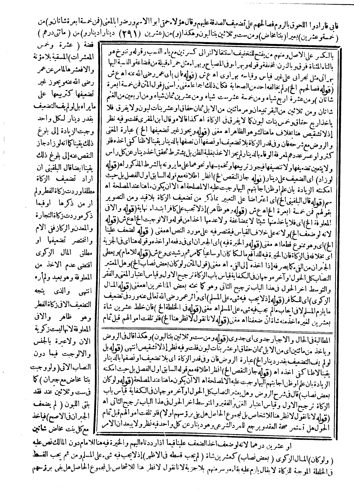 (قَوْلُهُ: وَمِنْ سِتٍّ وَثَلَاثِينَ بِنْتَا لَبُونٍ) وَهَكَذَا قَالَ فِي الرَّوْضِ: وَيَأْخُذُ مِنْ مِائَتَيْنِ أَيْ مِنْ الْإِبِلِ ثَمَانِ حِقَاقٍ أَوْ عَشْرَ بَنَاتِ لَبُونٍ قُلْت وَفِيهِ نَظَرٌ. إذْ لَا تَشْقِيصَ انْتَهَى. (قَوْلُهُ: بَلْ لَوْ لَمْ يَفِ التَّضْعِيفُ بِقَدْرِ دِينَارٍ إلَخْ) عِبَارَةُ الرَّوْضِ فَإِنْ وَفَّى قَدْرَ الزَّكَاةِ أَيْ بِلَا تَضْعِيفٍ أَوْ نِصْفَهَا بِالدِّينَارِ يَقِينًا لَا ظَنًّا كَفَى أَخْذُهُ. اهـ. (قَوْلُهُ جَازَ النَّقْصُ إلَخْ) اُنْظُرْ إطْلَاقَهُ مَعَ قَوْلِهِ السَّابِقِ أَوَّلَ الْفَصْلِ بَلْ حَيْثُ أَمْكَنَهُ الزِّيَادَةُ بِأَنْ عَلِمَ أَوْ ظَنَّ إجَابَتَهُمْ إلَيْهَا وَجَبَتْ عَلَيْهِ إلَّا لِمَصْلَحَةٍ انْتَهَى إلَّا أَنْ يَكُونَ مَا هُنَا عِنْدَ الْمَصْلَحَةِ. (قَوْلُهُ: وَلَوْ كَانَ بَعْضَ نِصَابٍ) قَالَ فِي شَرْحِ الرَّوْضِ: وَهَلْ يُعْتَبَرُ النِّصَابُ كُلَّ الْحَوْلِ أَوْ آخِرَهُ؟ وَجْهَانِ فِي الْكِفَايَةِ قِيَاسُ بَابِ الزَّكَاةِ تَرْجِيحُ الْأَوَّلِ وَقِيَاسُ اعْتِبَارِ الْغَنِيِّ وَالْفَقِيرِ وَالْمُتَوَسِّطِ آخِرَ الْحَوْلِ فِي هَذَا الْبَابِ تَرْجِيحُ الثَّانِي انْتَهَى. (قَوْلُهُ:؛ لِأَنَّا نَقُولُ لَا نَظَرَ هُنَا لِلْأَشْخَاصِ بَلْ لِمَجْمُوعِ الْحَاصِلِ هَلْ يَفِي بِرُؤُسِهِمْ أَوْ لَا؟) فَلَوْ تَلِفَتْ أَمْوَالُهُمْ قَبْلَ تَمَامِ الْحَوْلِ هَلْ تَسْتَمِرُّ صِحَّةُ الْعَقْدِ وَيَرْجِعُ لِلْمَرَدِّ الشَّرْعِيِّ وَهُوَ دِينَارٌ عَنْ كُلِّ وَاحِدٍ؟ فِيهِ نَظَرٌ وَلَا يَبْعُدُ أَنَّ الْأَمْرَ