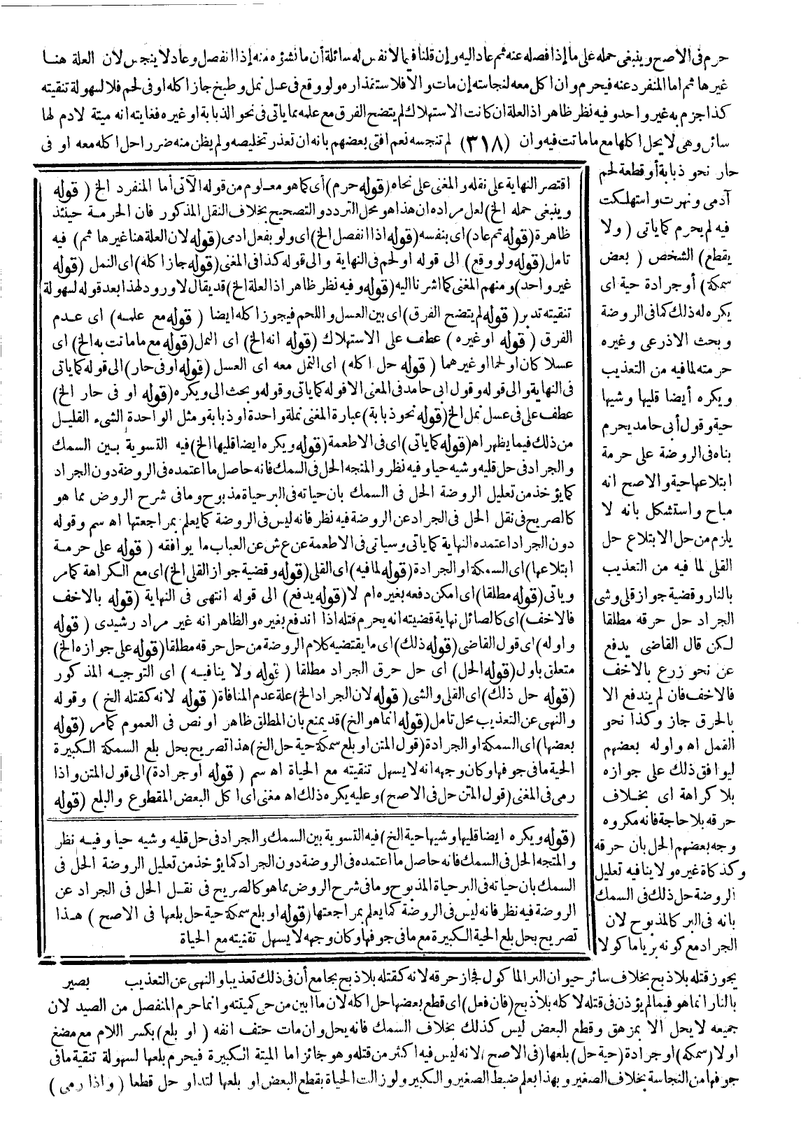 ـــــــــــــــــــــــــــــSقَوْلُهُ: وَيُكْرَهُ أَيْضًا قَلْيُهَا، وَشَيُّهَا حَيَّةً إلَخْ.) فِيهِ التَّسْوِيَةُ بَيْنَ السَّمَكِ، وَالْجَرَادِ فِي حِلِّ قَلْيِهِ، وَشَيِّهِ حَيًّا، وَفِيهِ نَظَرٌ.، وَالْمُتَّجَهُ الْحِلُّ فِي السَّمَكِ فَإِنَّهُ حَاصِلُ مَا اعْتَمَدَهُ فِي الرَّوْضَةِ دُونَ الْجَرَادِ كَمَا يُؤْخَذُ مِنْ تَعْلِيلِ الرَّوْضَةِ الْحِلَّ فِي السَّمَكِ بِأَنَّ حَيَاتَهُ فِي الْبَرِّ حَيَاةُ الْمَذْبُوحِ، وَمَا فِي شَرْحِ الرَّوْضِ مِمَّا هُوَ كَالصَّرِيحِ فِي نَقْلِ الْحِلِّ فِي الْجَرَادِ عَنْ الرَّوْضَةِ فِيهِ نَظَرٌ. فَإِنَّهُ لَيْسَ فِي الرَّوْضَةِ كَمَا يُعْلَمُ بِمُرَاجَعَتِهَا