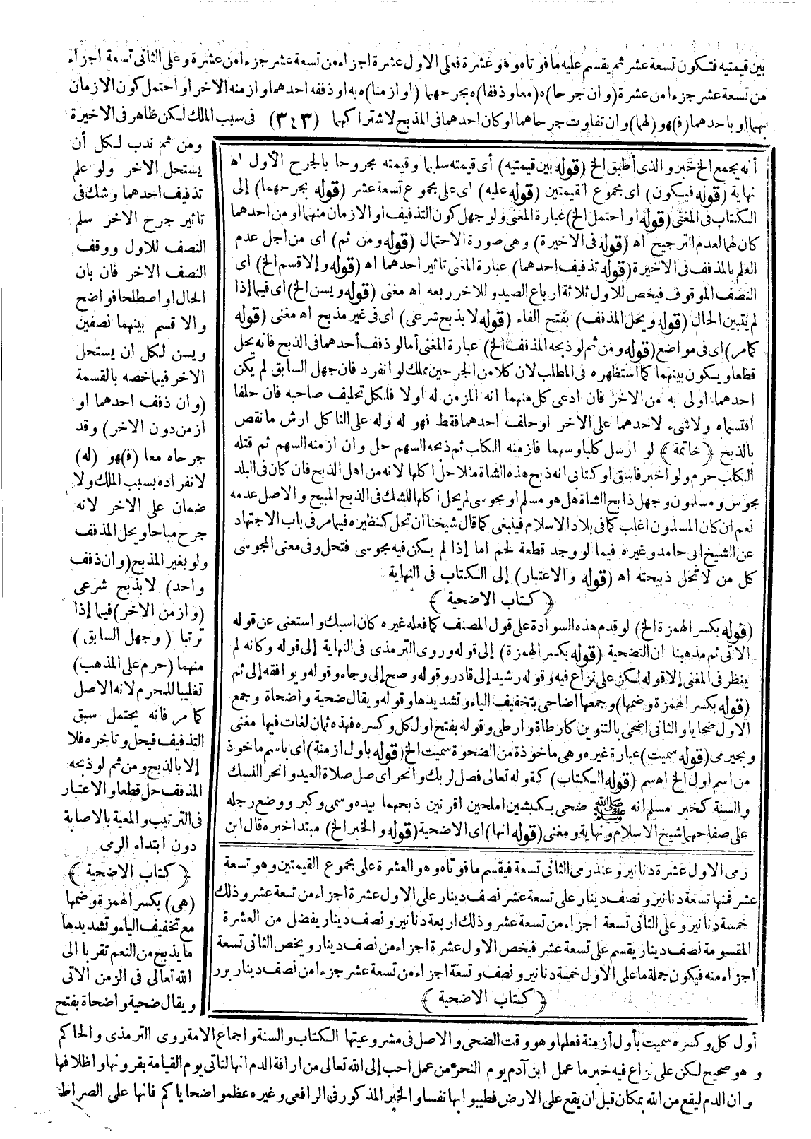 (كِتَابُ الْأُضْحِيَّةَ) (قَوْلُهُ: بِكَسْرِ الْهَمْزَةِ. إلَخْ) لَوْ قَدَّمَ هَذِهِ السِّوَادَةَ عَلَى قَوْلِ الْمُصَنِّفِ هِيَ كَمَا فَعَلَهُ غَيْرُهُ كَانَ أَسْبَكَ وَاسْتَغْنَى عَنْ قَوْلِهِ الْآتِي ثُمَّ مَذْهَبُنَا أَنَّ التَّضْحِيَةَ (قَوْلُهُ بِكَسْرِ الْهَمْزَةِ) إلَى قَوْلِهِ وَرَوَى التِّرْمِذِيُّ فِي النِّهَايَةِ وَإِلَى قَوْلِهِ وَكَأَنَّهُ لَمْ يَنْظُرْ فِي الْمُغْنِي إلَّا قَوْلَهُ لَكِنْ عَلَى نِزَاعٍ فِيهِ وَقَوْلُهُ: رَشِيدٍ إلَى قَادِرٍ وَقَوْلُهُ وَصَحَّ إلَى وَجَاءَ وَقَوْلُهُ: وَيُوَافِقُهُ إلَى ثُمَّ (قَوْلُهُ: بِكَسْرِ الْهَمْزَةِ وَضَمِّهَا. إلَخْ) وَجَمْعُهَا أَضَاحِي بِتَخْفِيفِ الْيَاءِ وَتَشْدِيدِهَا وَقَوْلُهُ وَيُقَالُ ضَحِيَّةٌ وَأُضْحَاةٌ وَجَمْعُ الْأَوَّلِ ضَحَايَا، وَالثَّانِي أَضْحَى بِالتَّنْوِينِ كَأَرْطَاةٍ وَأَرْطًى وَقَوْلُهُ: بِفَتْحِ أَوَّلِ كُلٍّ وَكَسْرِهِ فَهَذِهِ ثَمَانِ لُغَاتٍ فِيهَا مُغْنِي وَبُجَيْرِمِيٌّ (قَوْلُهُ: سُمِّيَتْ. إلَخْ) عِبَارَةُ غَيْرِهِ وَهِيَ مَأْخُوذَةٌ مِنْ الضَّحْوَةِ سُمِّيَتْ. إلَخْ