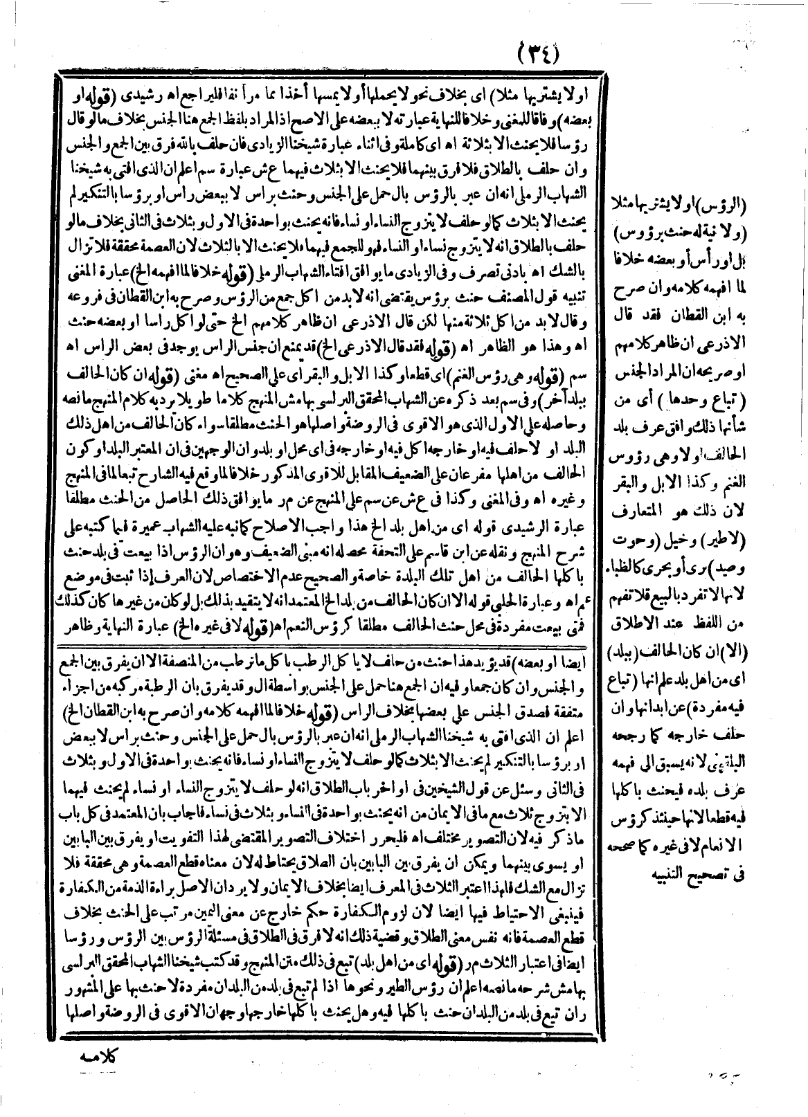 وَحَاصِلُهُ عَلَى الْأَوَّلِ الَّذِي هُوَ الْأَقْوَى فِي الرَّوْضَةِ وَأَصْلِهَا هُوَ الْحِنْثُ مُطْلَقًا، سَوَاءٌ كَانَ الْحَالِفُ مِنْ أَهْلِ ذَلِكَ الْبَلَدِ أَوْ لَا، حَلَفَ فِيهِ أَوْ خَارِجَهُ، أَكَلَ فِيهِ أَوْ خَارِجَهُ فِي أَيِّ مَحَلٍّ أَوْ بَلَدٍ وَأَنَّ الْوَجْهَيْنِ فِي أَنَّ الْمُعْتَبَرَ الْبَلَدُ أَوْ كَوْنُ الْحَالِفِ مِنْ أَهْلِهَا مُفَرَّعَانِ عَلَى الضَّعِيفِ الْمُقَابِلِ لِلْأَقْوَى الْمَذْكُورِ خِلَافًا لِمَا وَقَعَ فِيهِ الشَّارِحُ تَبَعًا لِمَا فِي الْمَنْهَجِ وَغَيْرِهِ اهـ. وَفِي الْمُغْنِي، وَكَذَا فِي ع ش عَنْ سم عَلَى الْمَنْهَجِ عَنْ م ر مَا يُوَافِقُ ذَلِكَ الْحَاصِلَ مِنْ الْحِنْثِ مُطْلَقًا، عِبَارَةُ الرَّشِيدِيِّ قَوْلُهُ: أَيْ: مِنْ أَهْلِ بَلَدِ إلَخْ هَذَا وَاجِبُ الْإِصْلَاحِ كَمَا نَبَّهَ عَلَيْهِ الشِّهَابُ عَمِيرَةُ فِيمَا كَتَبَهُ عَلَى شَرْحِ الْمَنْهَجِ وَنَقَلَهُ عَنْ ابْنِ قَاسِمٍ عَلَى التُّحْفَةِ مُحَصِّلُهُ أَنَّهُ مَبْنَى الضَّعِيفِ وَهُوَ أَنَّ الرُّءُوسَ إذَا بِيعَتْ فِي بَلَدٍ حَنِثَ بِأَكْلِهَا الْحَالِفُ مِنْ أَهْلِ تِلْكَ الْبَلْدَةِ خَاصَّةً، وَالصَّحِيحُ عَدَمُ الِاخْتِصَاصِ؛ لِأَنَّ الْعُرْفَ إذَا ثَبَتَ فِي مَوْضِعٍ عَمَّ اهـ. وَعِبَارَةُ الْحَلَبِيِّ قَوْلُهُ: إلَّا إنْ كَانَ الْحَالِفُ مِنْ بَلَدٍ إلَخْ الْمُعْتَمَدُ أَنَّهُ لَا تَقْيِيدَ بِذَلِكَ، بَلْ لَوْ كَانَ مِنْ غَيْرِهَا كَانَ كَذَلِكَ فَمَتَى بِيعَتْ مُفْرَدَةً فِي مَحَلٍّ حَنِثَ الْحَالِفُ مُطْلَقًا كَرُءُوسِ النَّعَمِ اهـ.