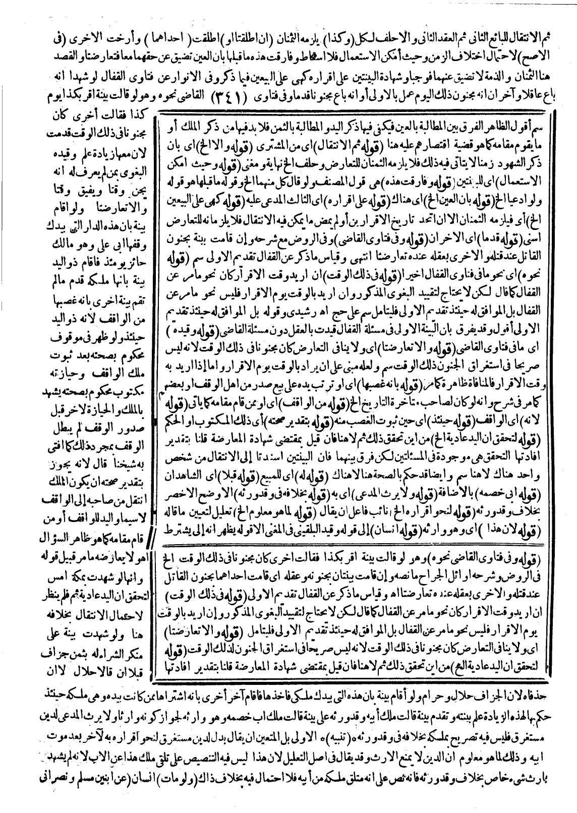 وَفِي الرَّوْضِ مَعَ شَرْحِهِ وَإِنْ قَامَتْ بَيِّنَةٌ بِجُنُونِ الْقَاتِلِ عِنْدَ قَتْلِهِ وَالْأُخْرَى بِعَقْلِهِ عِنْدَهُ تَعَارَضَتَا انْتَهَى وَقِيَاسُ مَا ذُكِرَ عَنْ الْقَفَّالِ تَقْدِيمُ الْأُولَى سم (قَوْلُهُ: نَحْوُهُ) أَيْ نَحْوُ مَا فِي فَتَاوَى الْقَفَّالِ أَخِيرًا (قَوْلُهُ: فِي ذَلِكَ الْوَقْتِ) إنْ أُرِيدَ وَقْتُ الْإِقْرَارِ كَانَ نَحْوَ مَا مَرَّ عَنْ الْقَفَّالِ كَمَا قَالَ لَكِنْ لَا يَحْتَاجُ لِتَقْيِيدِ الْبَغَوِيّ الْمَذْكُورِ وَإِنْ أُرِيدَ بِالْوَقْتِ يَوْمُ الْإِقْرَارِ فَلَيْسَ نَحْوَ مَا مَرَّ عَنْ الْقَفَّالِ بَلْ الْمُوَافِقُ لَهُ حِينَئِذٍ تَقْدِيمُ الْأُولَى فَلْيُتَأَمَّلْ سم عَلَى حَجّ. اهـ. رَشِيدِيٌّ وَقَوْلُهُ: بَلْ الْمُوَافِقُ لَهُ حِينَئِذٍ تَقْدِيمُ الْأُولَى أَقُولُ وَقَدْ يُفَرَّقُ بِأَنَّ الْبَيِّنَةَ الْأُولَى فِي مَسْأَلَةِ الْقَفَّالِ قُيِّدَتْ بِالْعَقْلِ دُونَ مَسْأَلَةِ الْقَاضِي (قَوْلُهُ: وَقَيَّدَهُ) أَيْ مَا فِي فَتَاوَى الْقَاضِي (قَوْلُهُ: وَإِلَّا تَعَارَضَتَا) أَيْ وَلَا يُنَافِي التَّعَارُضُ كَانَ مَجْنُونًا فِي ذَلِكَ الْوَقْتِ؛ لِأَنَّهُ لَيْسَ صَرِيحًا فِي اسْتِغْرَاقِ الْجُنُونِ ذَلِكَ الْوَقْتِ سم وَلَعَلَّهُ مَبْنِيٌّ عَلَى أَنْ يُرَادَ بِالْوَقْتِ يَوْمُ الْإِقْرَارِ وَأَمَّا إذَا أُرِيدَ بِهِ وَقْتُ الْإِقْرَارِ فَالْمُنَافَاةُ ظَاهِرَةٌ كَمَا مَرَّ (قَوْلُهُ: بِأَنَّهُ غَصَبَهَا. إلَخْ) أَيْ أَوْ تَرَتُّبُ يَدِهِ عَلَى بَيْعٍ صَدَرَ مِنْ أَهْلِ الْوَقْفِ أَوْ بَعْضِهِمْ كَمَا مَرَّ فِي شَرْحِ: وَأَنَّهُ لَوْ كَانَ لِصَاحِبِ مُتَأَخِّرَةِ التَّارِيخِ. إلَخْ (قَوْلُهُ: مِنْ الْوَاقِفِ) أَيْ أَوْ مِمَّنْ قَامَ مَقَامَهُ كَمَا يَأْتِي (قَوْلُهُ لِأَنَّهُ) أَيْ الْوَاقِفَ (قَوْلُهُ: حِينَئِذٍ) أَيْ حِينَ ثُبُوتِ الْغَصْبِ مِنْهُ (قَوْلُهُ: بِتَقْدِيرِ صِحَّتِهِ) أَيْ ذَلِكَ الْمَكْتُوبِ أَوْ الْحُكْمِ (قَوْلُهُ: لِتَحَقُّقِ أَنَّ الْيَدَ عَادِيَةٌ. إلَخْ) مِنْ أَيْنَ تَحَقُّقُ ذَلِكَ، ثَمَّ لَا هُنَا، فَإِنْ قِيلَ بِمُقْتَضَى شَهَادَةِ الْمُعَارَضَةِ قُلْنَا بِتَقْدِيرِ إفَادَتهَا التَّحَقُّقَ هِيَ مَوْجُودَةٌ فِي الْمَسْأَلَتَيْنِ لَكِنْ فَرْقٌ بَيْنَهُمَا فَإِنَّ الْبَيِّنَتَيْنِ أَسْنَدَتَا إلَى الِانْتِقَالِ مِنْ شَخْصٍ وَاحِدٍ هُنَاكَ لَا هُنَا سم وَأَيْضًا قَدْ حُكِمَ بِالصِّحَّةِ هُنَا لَا هُنَاكَ (قَوْلُهُ: لَهُ) أَيْ لِلْمَبِيعِ (قَوْلُهُ: قُبِلَا) أَيْ الشَّاهِدَانِ (قَوْلُهُ: أَبِي خَصْمِهِ) بِالْإِضَافَةِ (قَوْلُهُ: وَلَا يَرِثُ الْمُدَّعِي) أَيْ بِهِ (قَوْلُهُ: بِخِلَافِهِ فِي: وَقَدْ وَرِثَهُ) الْأَوْضَحُ الْأَخْصَرُ: بِخِلَافِ وَقَدْ وَرِثَهُ (قَوْلُهُ: لِنَحْوِ إقْرَارِهِ. إلَخْ) نَائِبُ فَاعِلِ أَنْ يُقَالَ (قَوْلُهُ لِمَا هُوَ مَعْلُومٌ. إلَخْ) تَعْلِيلٌ لِتَعْيِينِ مَا قَالَهُ (قَوْلُهُ: لِأَنَّ هَذَا) أَيْ وَهُوَ وَارِثُهُ.