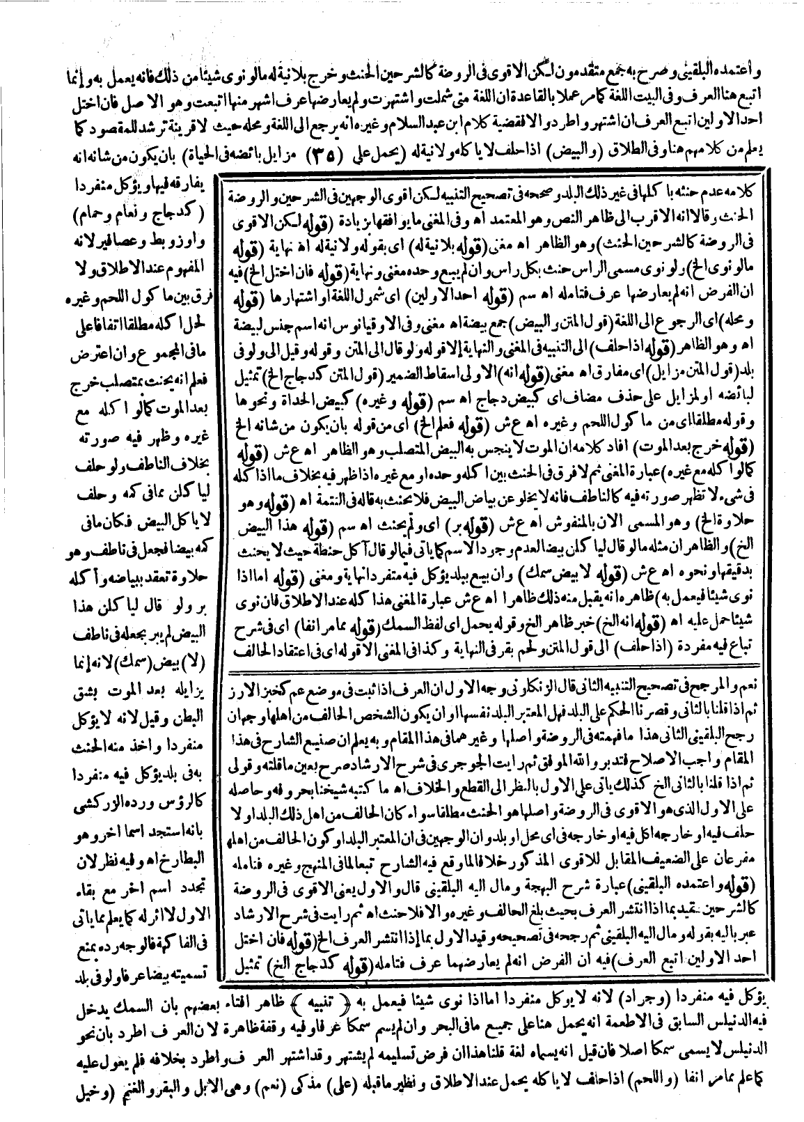 وَاعْتَمَدَهُ الْبُلْقِينِيُّ، وَصَرَّحَ بِهِ جَمْعٌ مُتَقَدِّمُونَ، لَكِنَّ الْأَقْوَى فِي الرَّوْضَةِ كَالشَّرْحَيْنِ الْحِنْثُ، وَخَرَجَ بِلَا نِيَّةٍ لَهُ مَا لَوْ نَوَى شَيْئًا مِنْ ذَلِكَ فَإِنَّهُ يَعْمَلُ بِهِ، وَإِنَّمَا اُتُّبِعَ هُنَا الْعُرْفُ وَفِي الْبَيْتِ اللُّغَةُ كَمَا مَرَّ عَمَلًا بِالْقَاعِدَةِ أَنَّ اللُّغَةَ مَتَى شَمِلَتْ وَاشْتُهِرَتْ وَلَمْ يُعَارِضْهَا عُرْفٌ أَشْهَرُ مِنْهَا اُتُّبِعَتْ، وَهُوَ الْأَصْلُ فَإِنْ اخْتَلَّ أَحَدُ الْأَوَّلَيْنِ اُتُّبِعَ الْعُرْفُ إنْ اُشْتُهِرَ وَاطَّرَدَ، وَإِلَّا فَقَضِيَّةُ كَلَامِ ابْنِ عَبْدِ السَّلَامِ وَغَيْرِهِ أَنَّهُ يَرْجِعُ إلَى اللُّغَةِ، وَمَحَلُّهُ حَيْثُ لَا قَرِينَةَ تُرْشِدُ لِلْمَقْصُودِ كَمَا يُعْلَمُ مِنْ كَلَامِهِمْ هُنَا وَفِي الطَّلَاقِ.