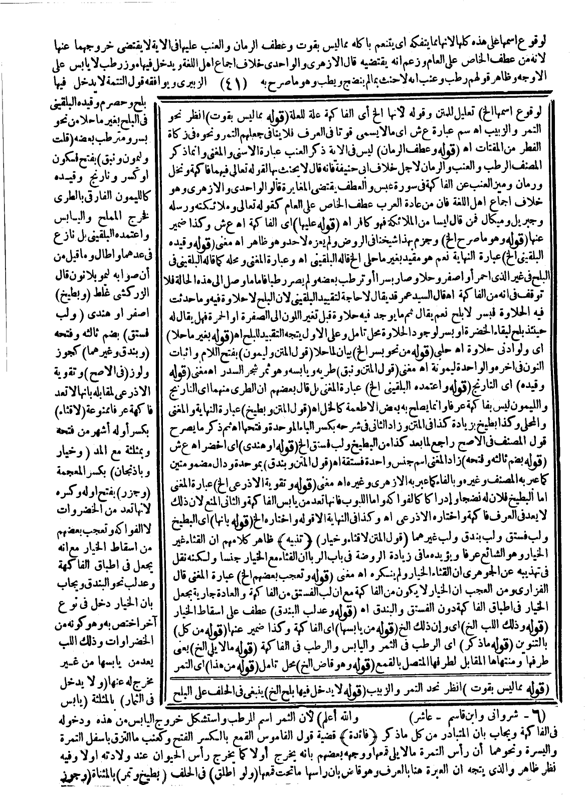 (قَوْلُهُ: وَعُدَّ لُبُّ الْبُنْدُقِ) عَطْفٌ عَلَى إسْقَاطِ الْخِيَارِ (قَوْلُهُ: وَذَلِكَ اللُّبُّ إلَخْ) أَيْ: وَأَنَّ ذَلِكَ إلَخْ (قَوْلُهُ: مِنْ يَابِسِهَا) أَيْ الْفَاكِهَةِ، وَكَذَا ضَمِيرُ عَنْهَا. (قَوْلُهُ: مِنْ كُلٍّ) بِالتَّنْوِينِ. (قَوْلُهُ: مَا ذُكِرَ) أَيْ: الرُّطَبِ فِي الثَّمَرِ وَالْيَابِسِ وَالرُّطَبِ فِي الْفَاكِهَةِ. (قَوْلُهُ مَا لَا يَلِي إلَخْ) يَعْنِي طَرَفَهَا وَمُنْتَهَاهَا الْمُقَابِلَ لِطَرَفِهَا الْمُتَّصِلِ بِالْقَمْعِ. (قَوْلُهُ: وَهُوَ قَاضٍ إلَخْ) مَحَلُّ تَأَمُّلٍ. (قَوْلُهُ: مِنْ هَذَا) أَيْ: التَّمْرِ