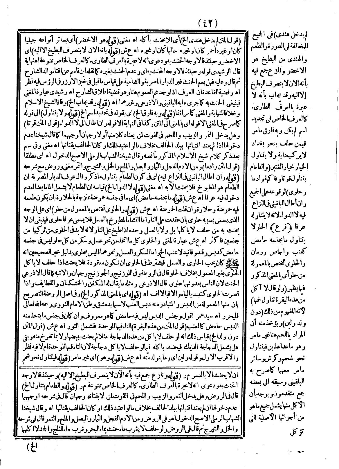 ـــــــــــــــــــــــــــــQقَوْلُ الْمَتْنِ لَمْ يَدْخُلْ هِنْدِيٌّ إلَخْ) أَيْ: فَلَا يَحْنَثُ بِأَكْلِهِ اهـ مُغْنِي. (قَوْلُهُ: هُوَ الْأَخْضَرُ) أَيْ: بِسَائِرِ أَنْوَاعِهِ جَبَلِيًّا كَانَ أَوْ غَيْرَهُ أَحْمَرَ كَانَ أَوْ غَيْرَهُ حَالِيًا كَانَ أَوْ غَيْرَهُ اهـ ع ش.