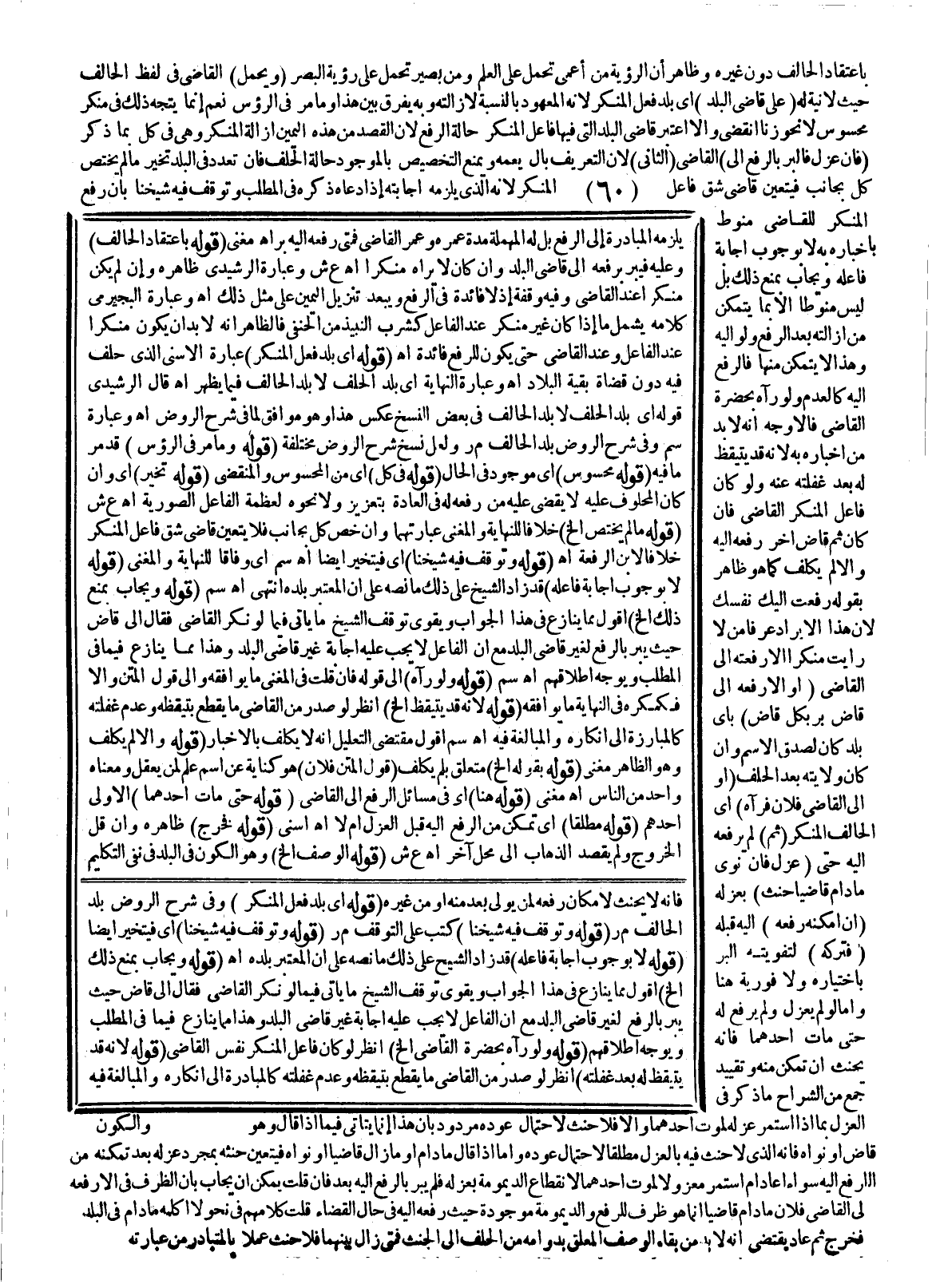 بِاعْتِقَادِ الْحَالِفِ دُونَ غَيْرِهِ وَظَاهِرٌ أَنَّ الرُّؤْيَةَ مِنْ أَعْمَى تُحْمَلُ عَلَى الْعِلْمِ، وَمِنْ بَصِيرٍ تُحْمَلُ عَلَى رُؤْيَةِ الْبَصَرِ (وَيُحْمَلُ) الْقَاضِي فِي لَفْظِ الْحَالِفِ حَيْثُ لَا نِيَّةَ لَهُ (عَلَى قَاضِي الْبَلَدِ) أَيْ بَلَدِ فِعْلِ الْمُنْكَرَ؛ لِأَنَّهُ الْمَعْهُودُ بِالنِّسْبَةِ لِإِزَالَتِهِ وَبِهِ يُفَرَّقُ بَيْنَ هَذَا وَمَا مَرَّ فِي الرُّءُوسِ نَعَمْ إنَّمَا يُتَّجَهُ ذَلِكَ فِي مُنْكَرٍ مَحْسُوسٍ لَا نَحْوِ زِنًا انْقَضَى وَإِلَّا اُعْتُبِرَ قَاضِي الْبَلَدِ الَّتِي فِيهَا فَاعِلُ الْمُنْكَرِ حَالَةَ الرَّفْعِ؛ لِأَنَّ الْقَصْدَ مِنْ هَذِهِ الْيَمِينِ إزَالَةُ الْمُنْكَرِ وَهِيَ فِي كُلٍّ بِمَا ذَكَرَ